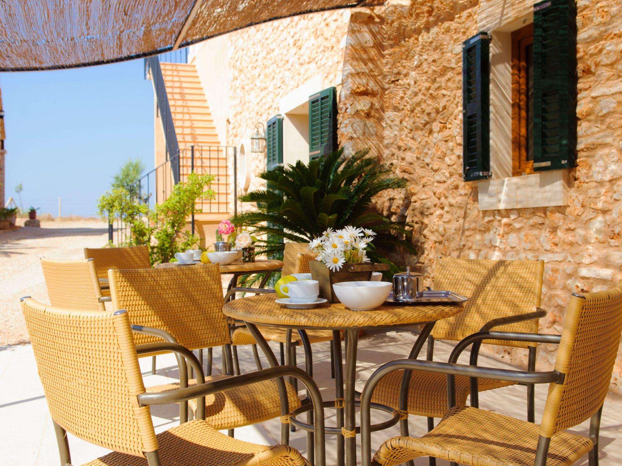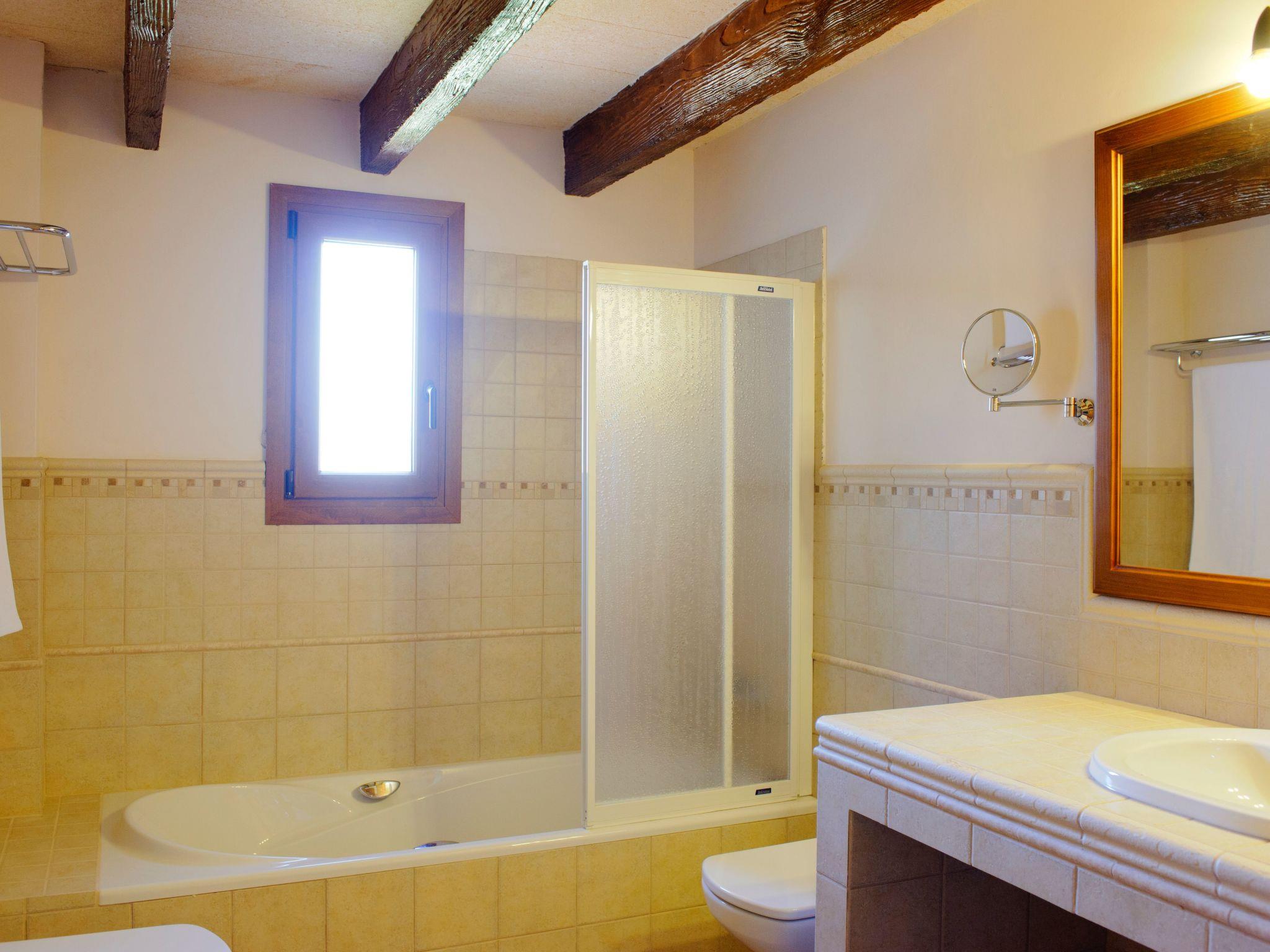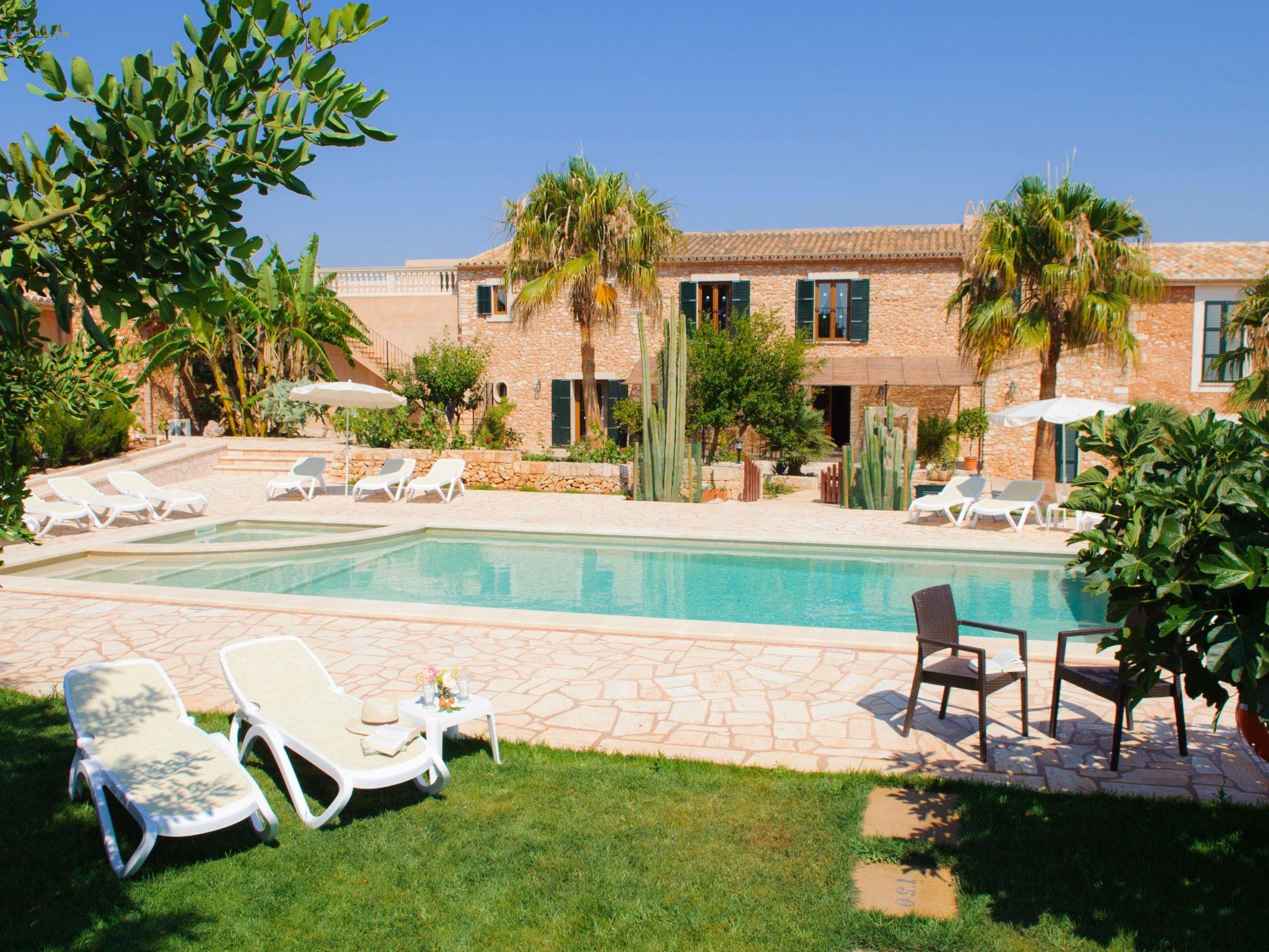 Mondragó Duri is a fabulous property of high standard, whose origins date back 300 years. The house has been completely renovated; the result is immaculate and sophisticated accommodation with heating throughout and air conditioning in the bedrooms. High rooms with wooden beamed ceilings and dry stone walls maintain the rustic ambience. In Mondragó Duri you are surrounded by a relaxing flair in all the rooms, each with its own style and some of which have been converted into exceptionally spacious suites. On the ground floor, you are greeted by a spacious entrance with antique furniture. The open-plan living room offers a fantastic sofa area from which you can enjoy a football match or a film on the large flat-screen TV. From the living room you have access to the rear terrace and the spacious kitchen, which also has terrace access. A pantry and a spectacular dining table make the kitchen a favourite meeting place in the property. Next to the kitchen is a simple guest shower room and from the living room there is access to a wheelchair-accessible guest toilet. On the ground floor you will also find a beautiful suite with double bed, en-suite bathroom with Jacuzzi bath and shower, as well as access to the outside area. The second bedroom, furnished with 2 single beds, is also spacious and has an en-suite shower room. On the upper floor there are two marvellous suites, both with double beds, en-suite feel-good bathrooms with Jacuzzi baths and separate showers. One of the two suites also offers a private terrace with beautiful views of the surrounding countryside and, last but not least, the shower has a hydromassage system. The 5th bedroom is equipped with 2 single beds and en-suite bathroom with bathtub. The 6th bedroom is located in an attractive annex close to the pool and has a single bed and en-suite shower room as well as a lovely covered terrace.