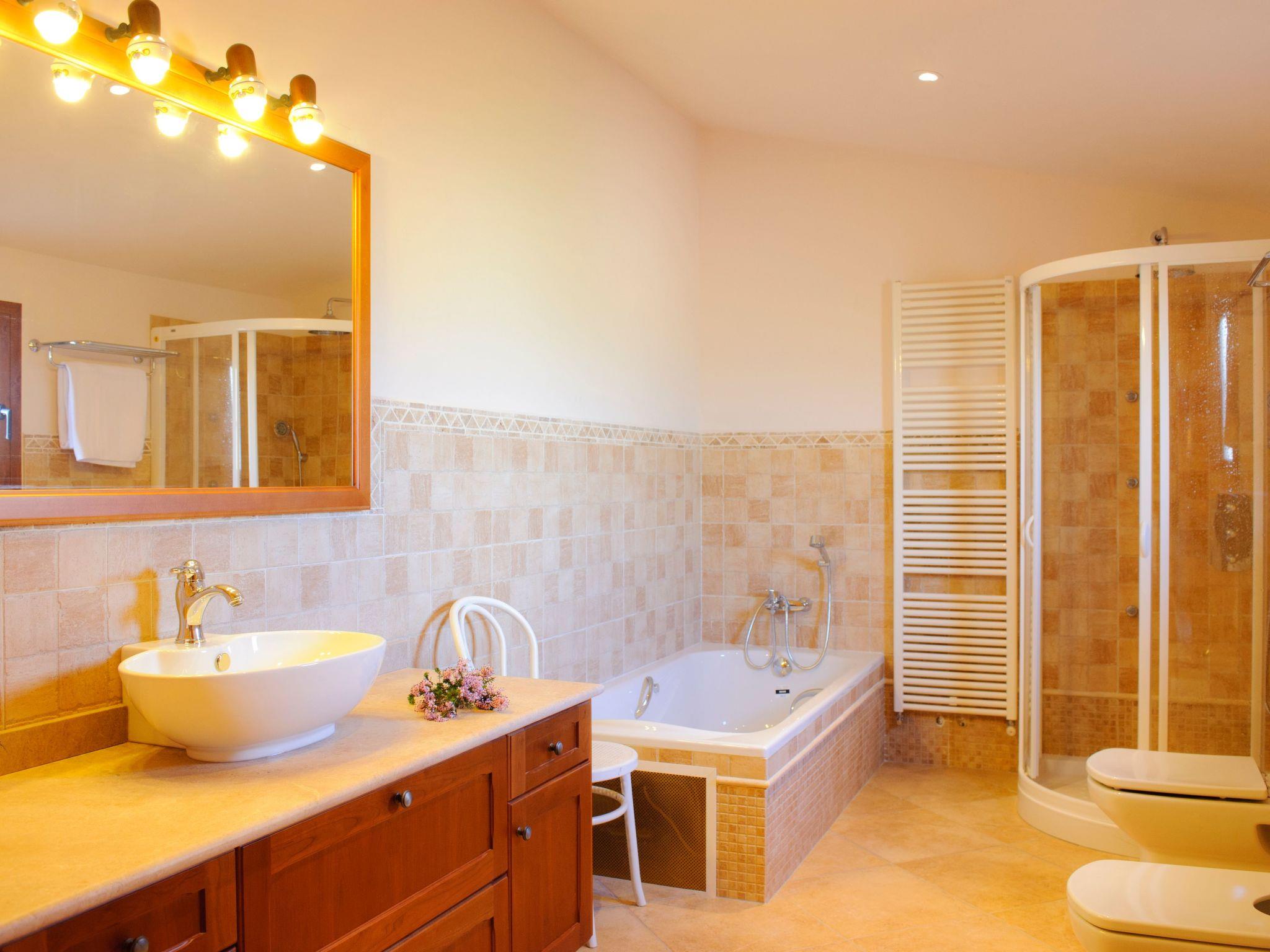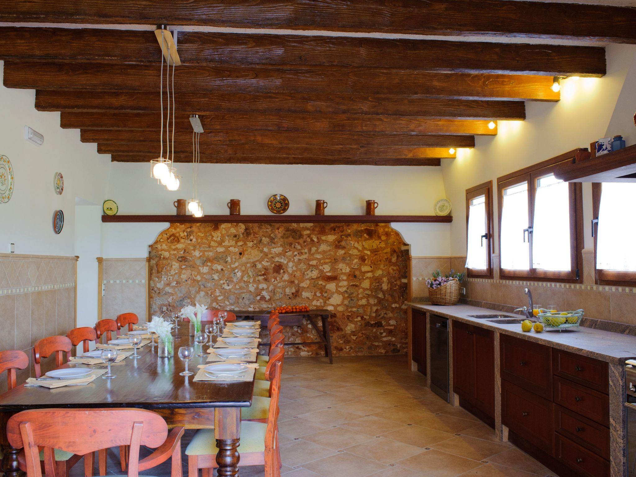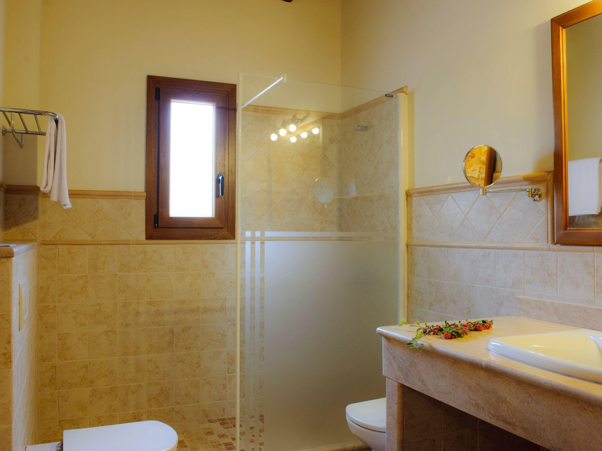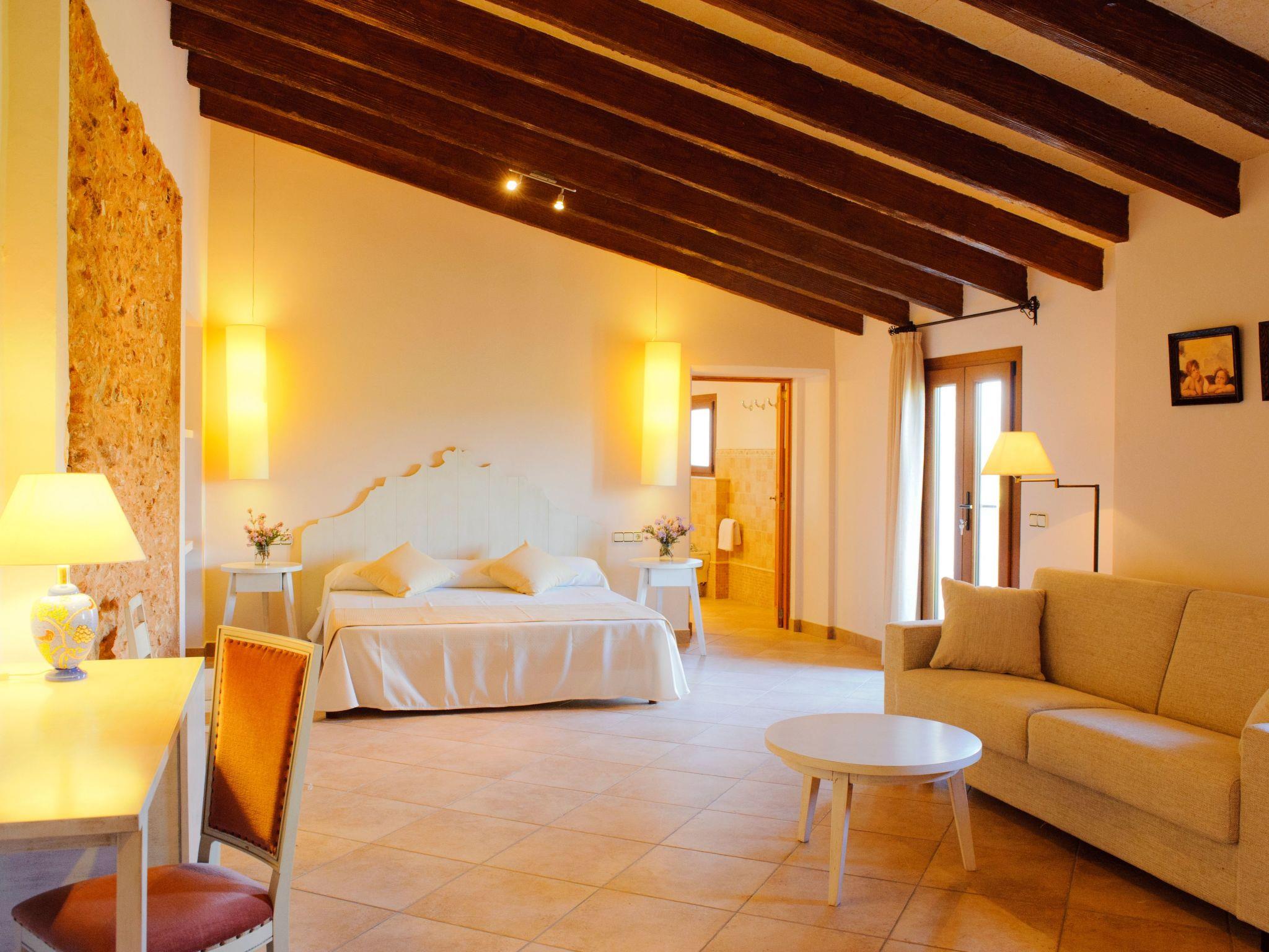 Mondragó Duri is a fabulous property of high standard, whose origins date back 300 years. The house has been completely renovated; the result is immaculate and sophisticated accommodation with heating throughout and air conditioning in the bedrooms. High rooms with wooden beamed ceilings and dry stone walls maintain the rustic ambience. In Mondragó Duri you are surrounded by a relaxing flair in all the rooms, each with its own style and some of which have been converted into exceptionally spacious suites. On the ground floor, you are greeted by a spacious entrance with antique furniture. The open-plan living room offers a fantastic sofa area from which you can enjoy a football match or a film on the large flat-screen TV. From the living room you have access to the rear terrace and the spacious kitchen, which also has terrace access. A pantry and a spectacular dining table make the kitchen a favourite meeting place in the property. Next to the kitchen is a simple guest shower room and from the living room there is access to a wheelchair-accessible guest toilet. On the ground floor you will also find a beautiful suite with double bed, en-suite bathroom with Jacuzzi bath and shower, as well as access to the outside area. The second bedroom, furnished with 2 single beds, is also spacious and has an en-suite shower room. On the upper floor there are two marvellous suites, both with double beds, en-suite feel-good bathrooms with Jacuzzi baths and separate showers. One of the two suites also offers a private terrace with beautiful views of the surrounding countryside and, last but not least, the shower has a hydromassage system. The 5th bedroom is equipped with 2 single beds and en-suite bathroom with bathtub. The 6th bedroom is located in an attractive annex close to the pool and has a single bed and en-suite shower room as well as a lovely covered terrace.
