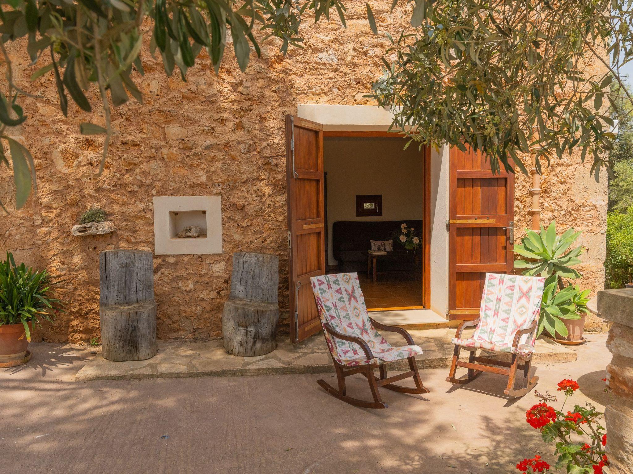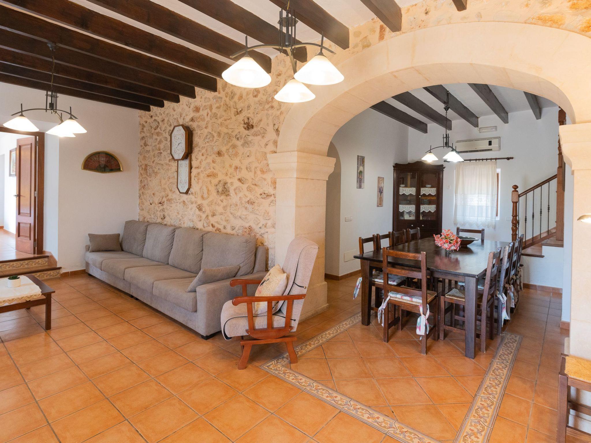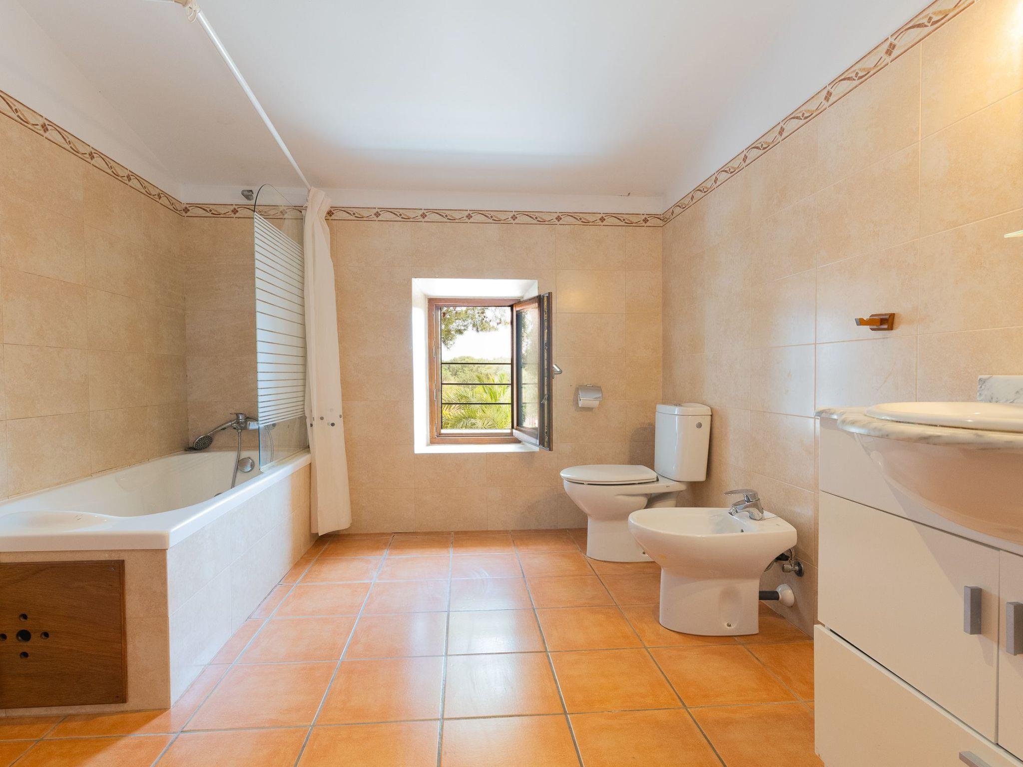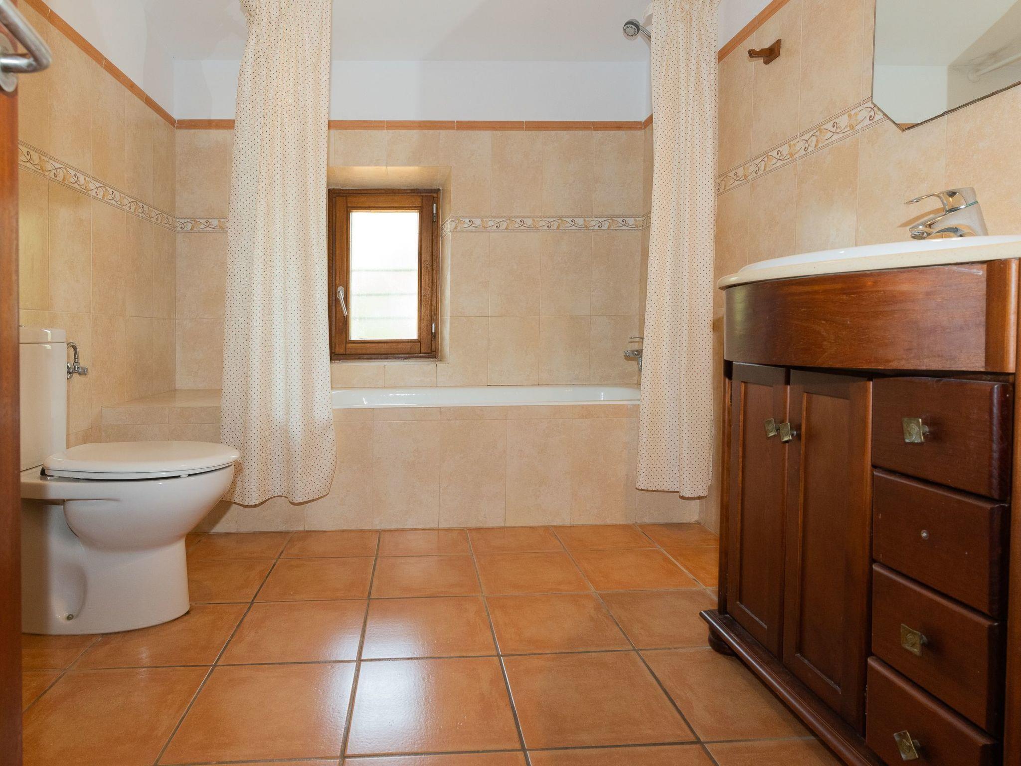 Traditional house in rustic Mallorcan style with main house and a small casita. In the main house. The entrance leads directly into the living and dining area. Kitchen and laundry room. Double bedroom with exit to the outside and bathroom en suite. Bedroom with single beds and bathroom en suite. On the first floor is the master bedroom with a double bed (two single beds pushed together), an en-suite bathroom and access to a terrace with wonderful views of the surrounding area. There are two further bedrooms, each with two single beds and en-suite bathrooms. One of these bedrooms also has access to the terrace. Near the pool there is a small cottage, the casita, with a living room with sofa bed, a kitchen area with fridge and a 2-burner cooker and dining area. On the upper floor there is a bedroom with a double bed and en-suite bathroom.