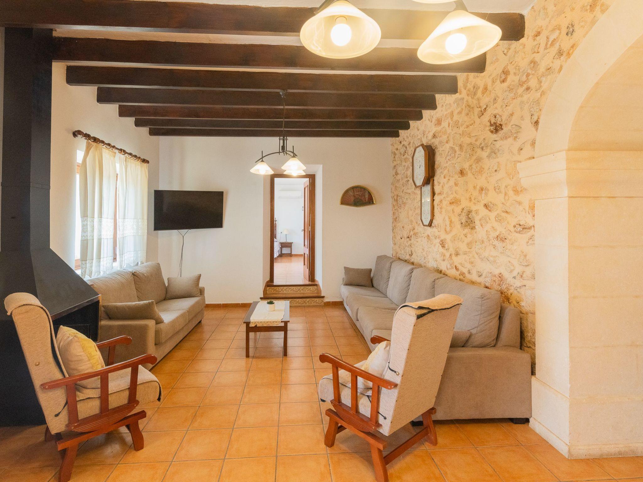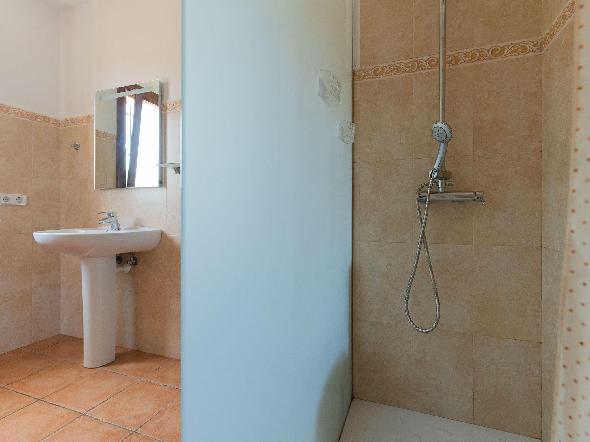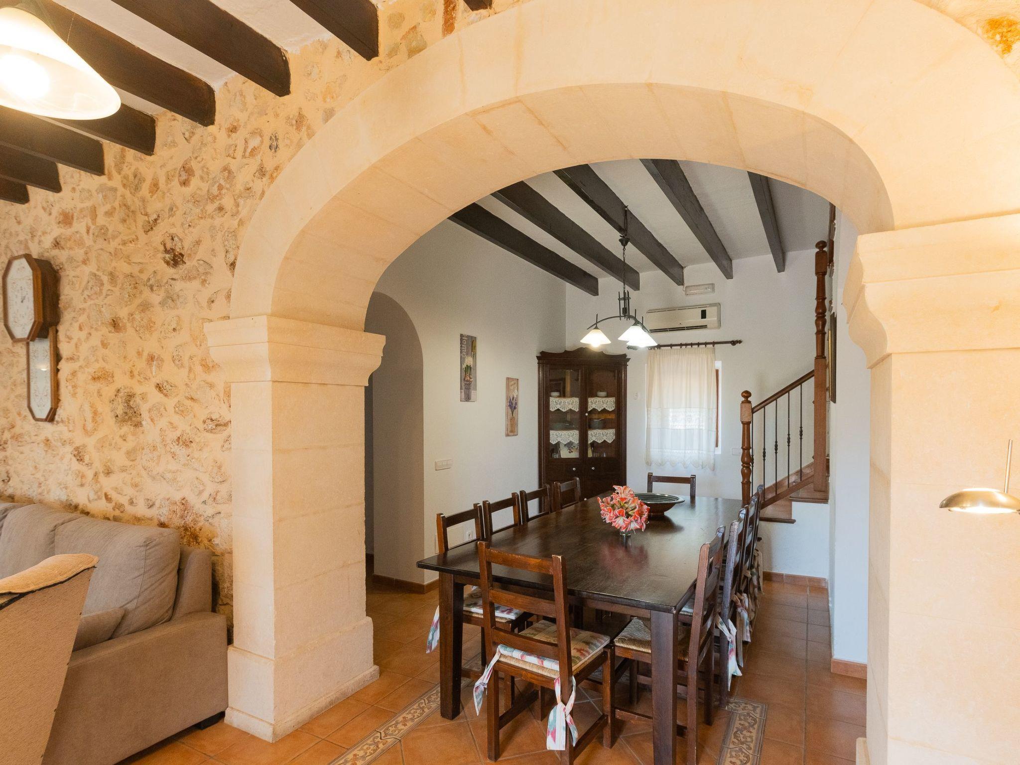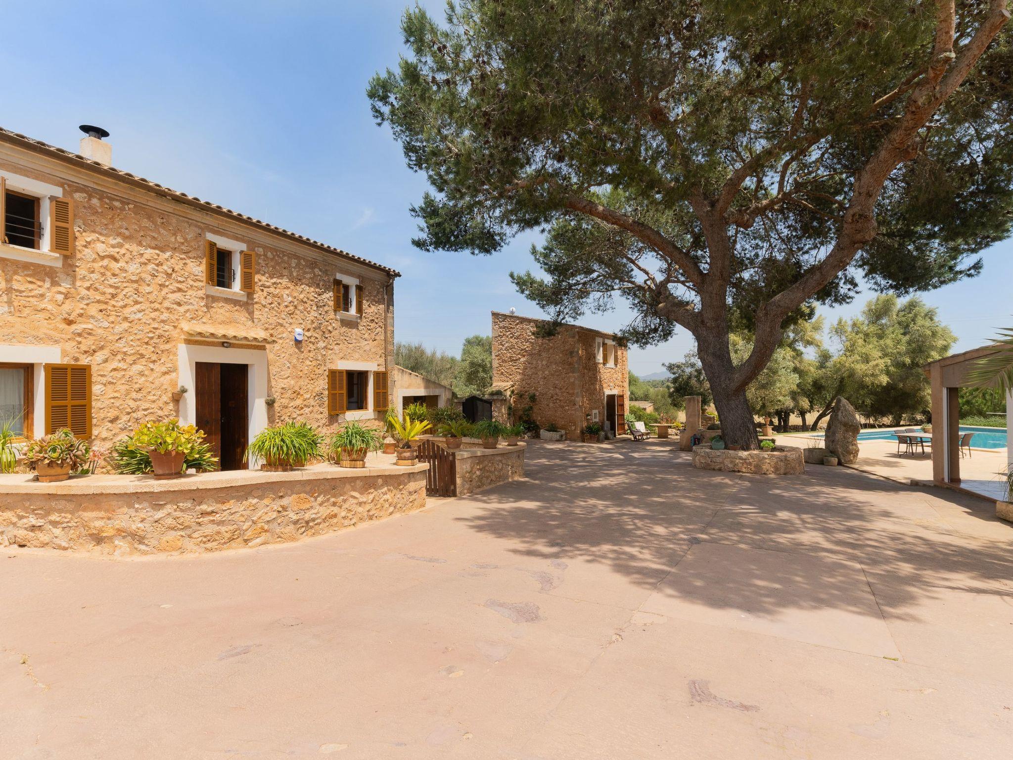 Traditional house in rustic Mallorcan style with main house and a small casita. In the main house. The entrance leads directly into the living and dining area. Kitchen and laundry room. Double bedroom with exit to the outside and bathroom en suite. Bedroom with single beds and bathroom en suite. On the first floor is the master bedroom with a double bed (two single beds pushed together), an en-suite bathroom and access to a terrace with wonderful views of the surrounding area. There are two further bedrooms, each with two single beds and en-suite bathrooms. One of these bedrooms also has access to the terrace. Near the pool there is a small cottage, the casita, with a living room with sofa bed, a kitchen area with fridge and a 2-burner cooker and dining area. On the upper floor there is a bedroom with a double bed and en-suite bathroom.