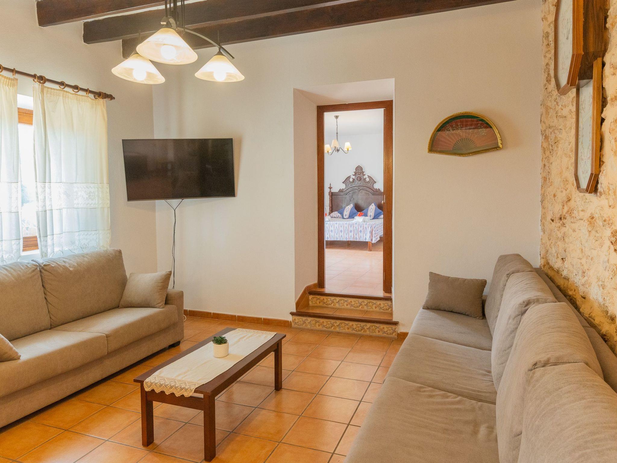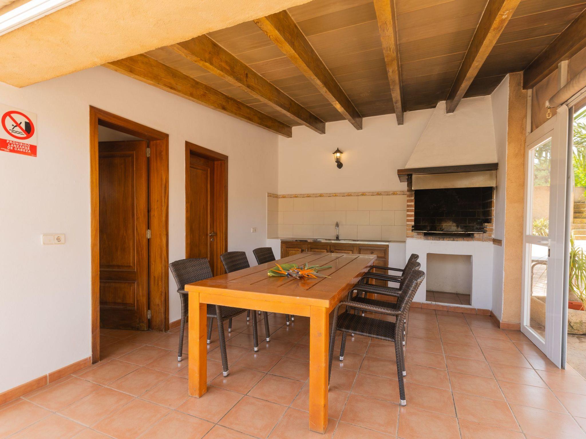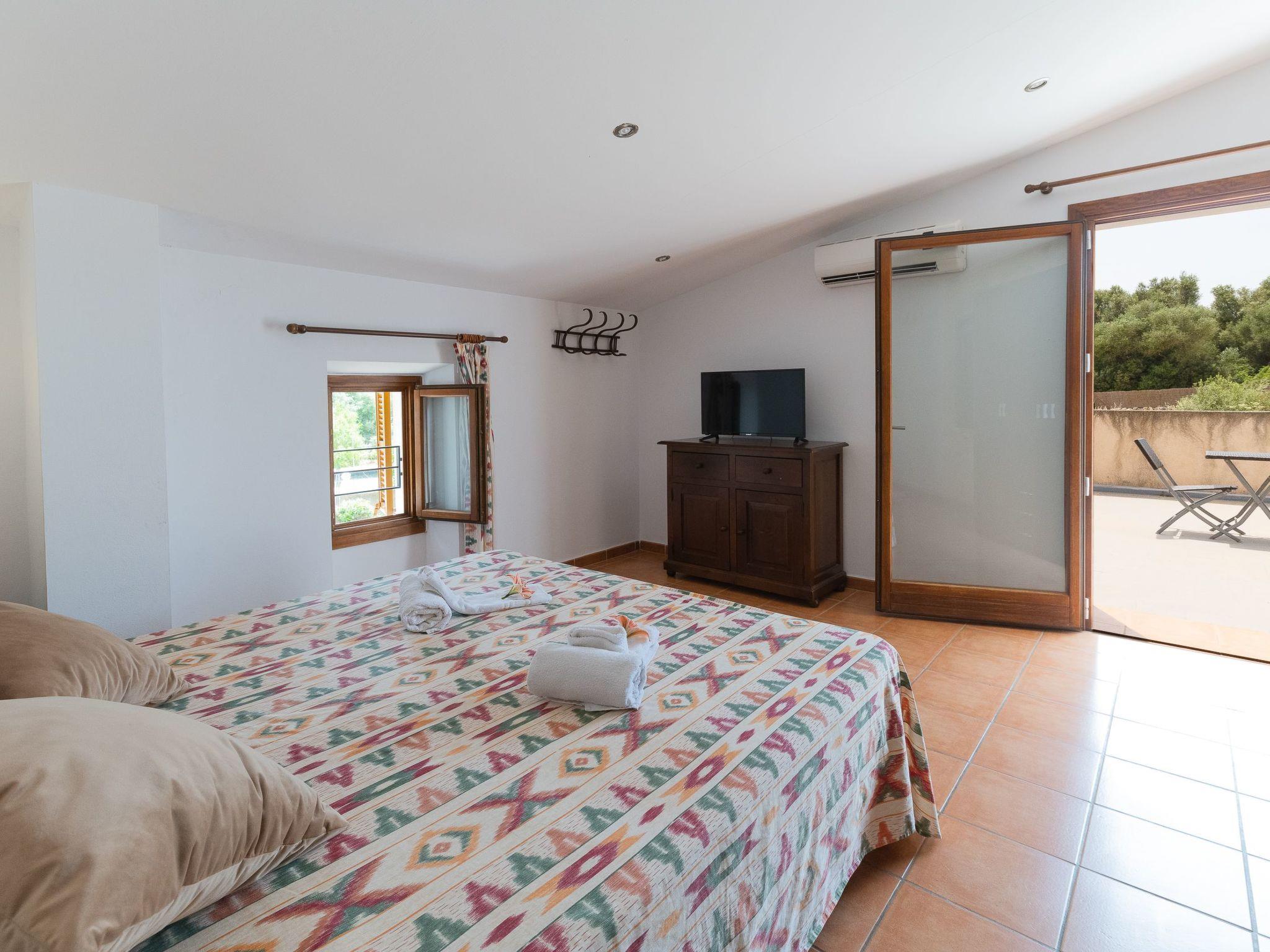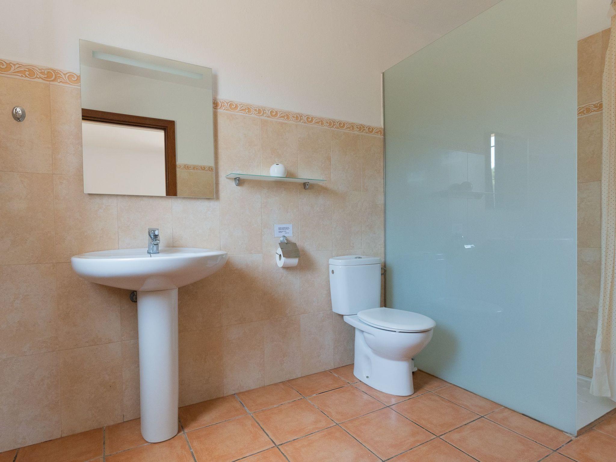 Traditional house in rustic Mallorcan style with main house and a small casita. In the main house. The entrance leads directly into the living and dining area. Kitchen and laundry room. Double bedroom with exit to the outside and bathroom en suite. Bedroom with single beds and bathroom en suite. On the first floor is the master bedroom with a double bed (two single beds pushed together), an en-suite bathroom and access to a terrace with wonderful views of the surrounding area. There are two further bedrooms, each with two single beds and en-suite bathrooms. One of these bedrooms also has access to the terrace. Near the pool there is a small cottage, the casita, with a living room with sofa bed, a kitchen area with fridge and a 2-burner cooker and dining area. On the upper floor there is a bedroom with a double bed and en-suite bathroom.