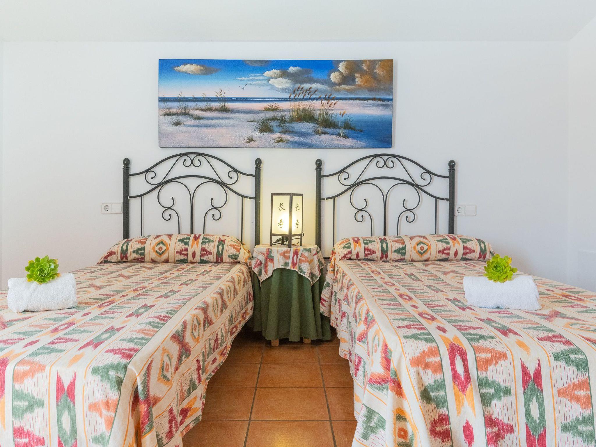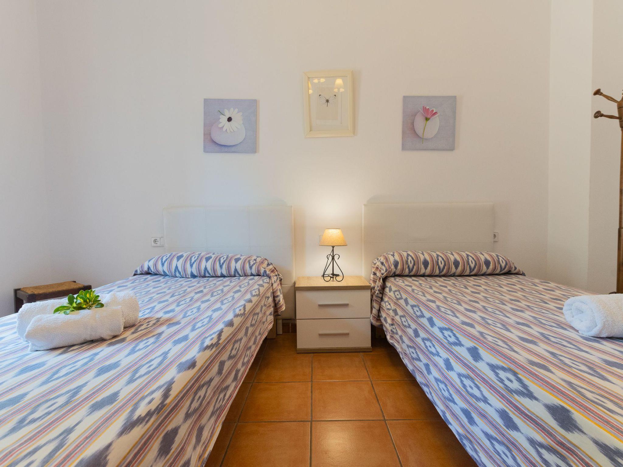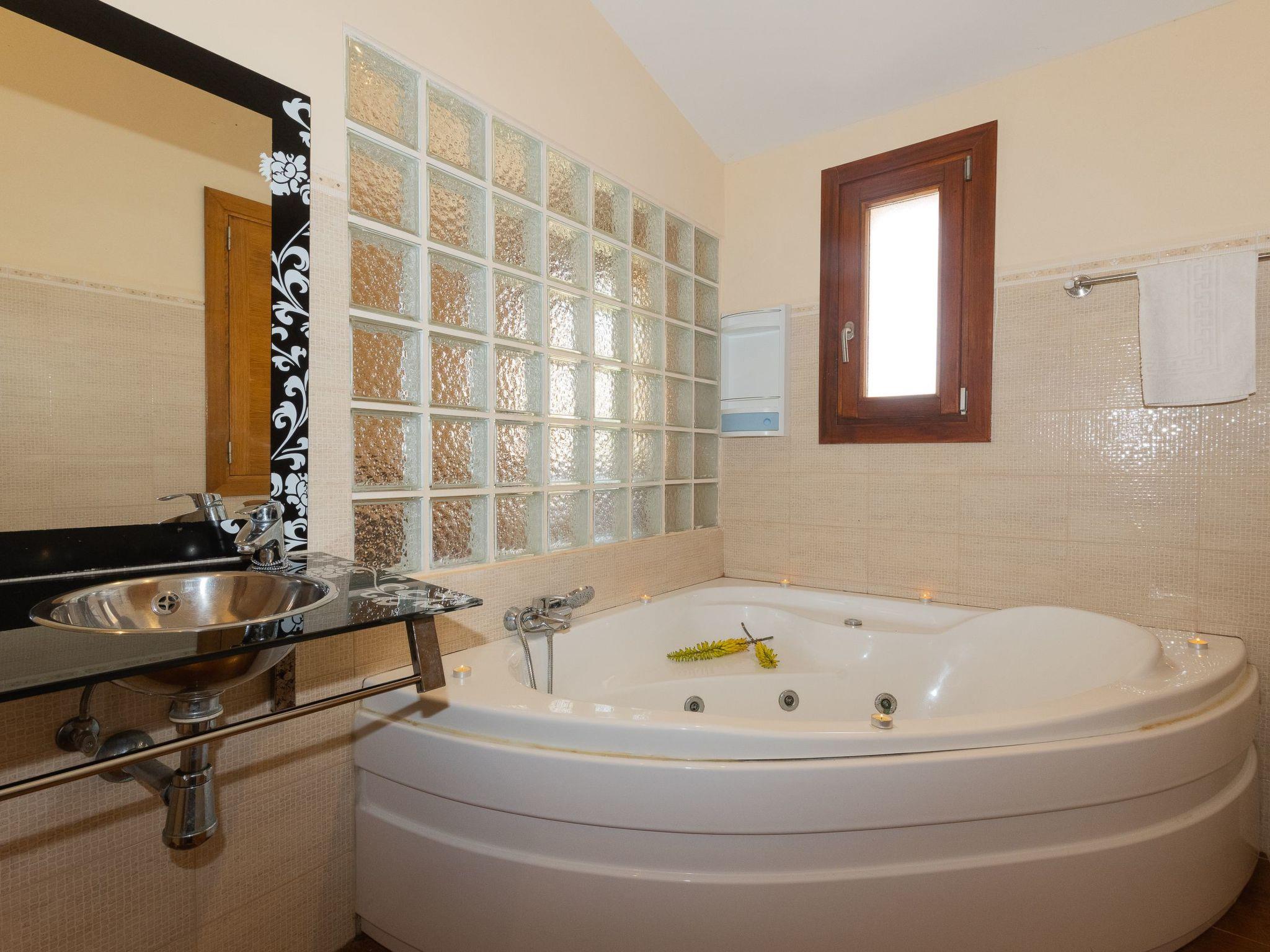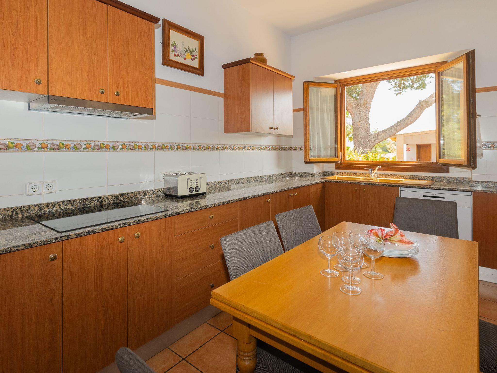 Traditional house in rustic Mallorcan style with main house and a small casita. In the main house. The entrance leads directly into the living and dining area. Kitchen and laundry room. Double bedroom with exit to the outside and bathroom en suite. Bedroom with single beds and bathroom en suite. On the first floor is the master bedroom with a double bed (two single beds pushed together), an en-suite bathroom and access to a terrace with wonderful views of the surrounding area. There are two further bedrooms, each with two single beds and en-suite bathrooms. One of these bedrooms also has access to the terrace. Near the pool there is a small cottage, the casita, with a living room with sofa bed, a kitchen area with fridge and a 2-burner cooker and dining area. On the upper floor there is a bedroom with a double bed and en-suite bathroom.