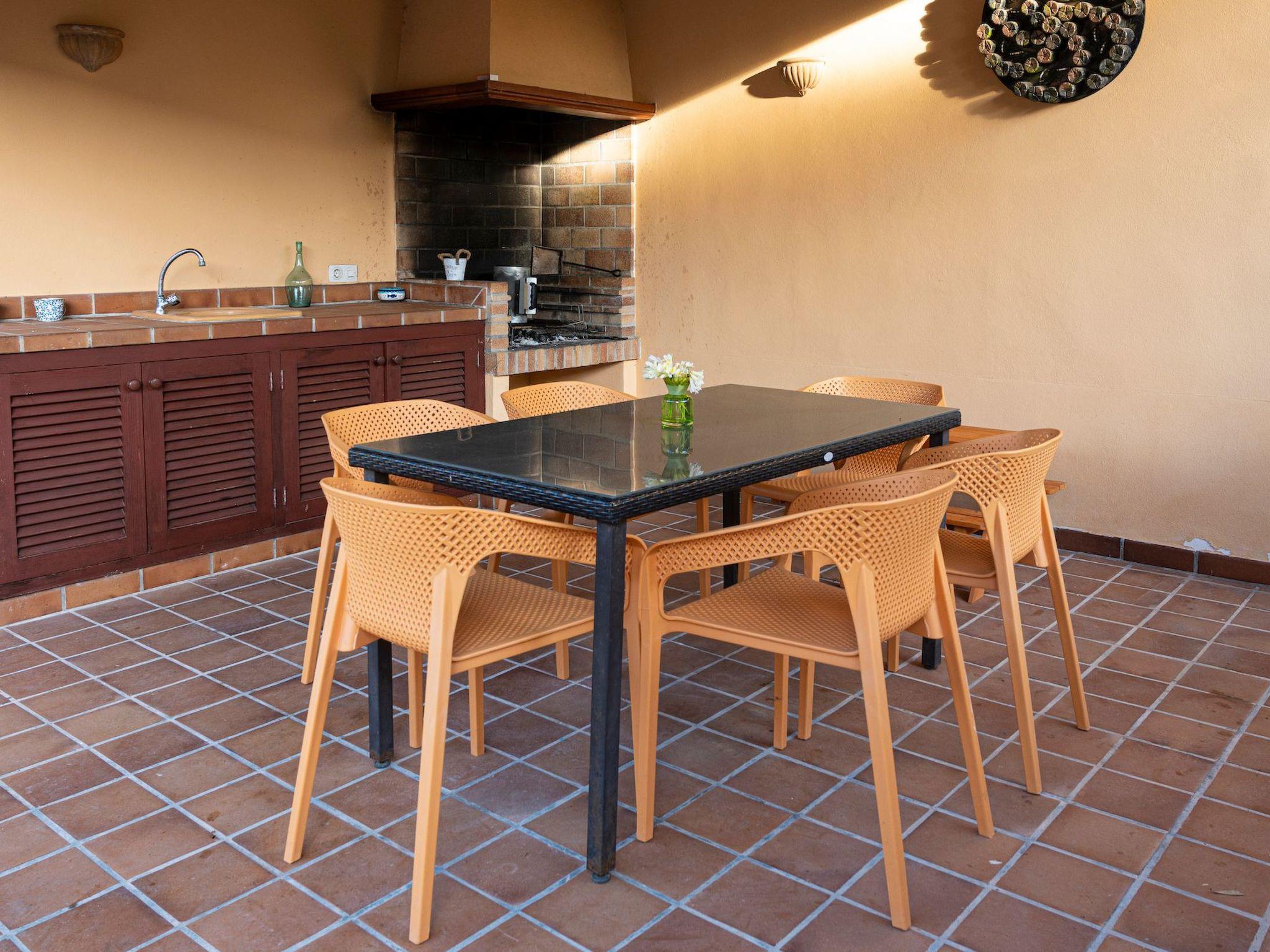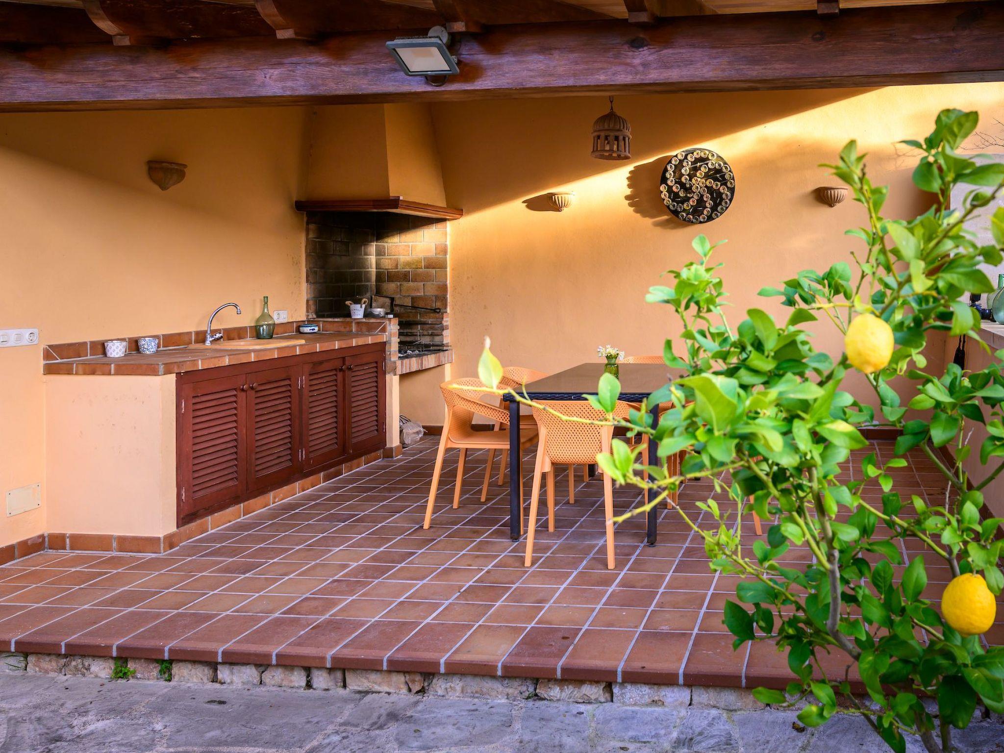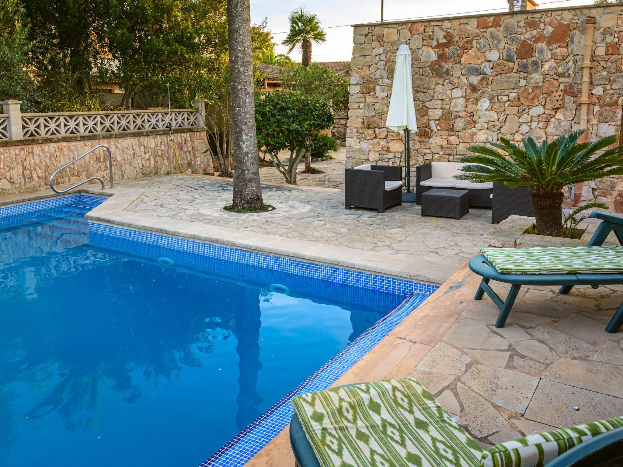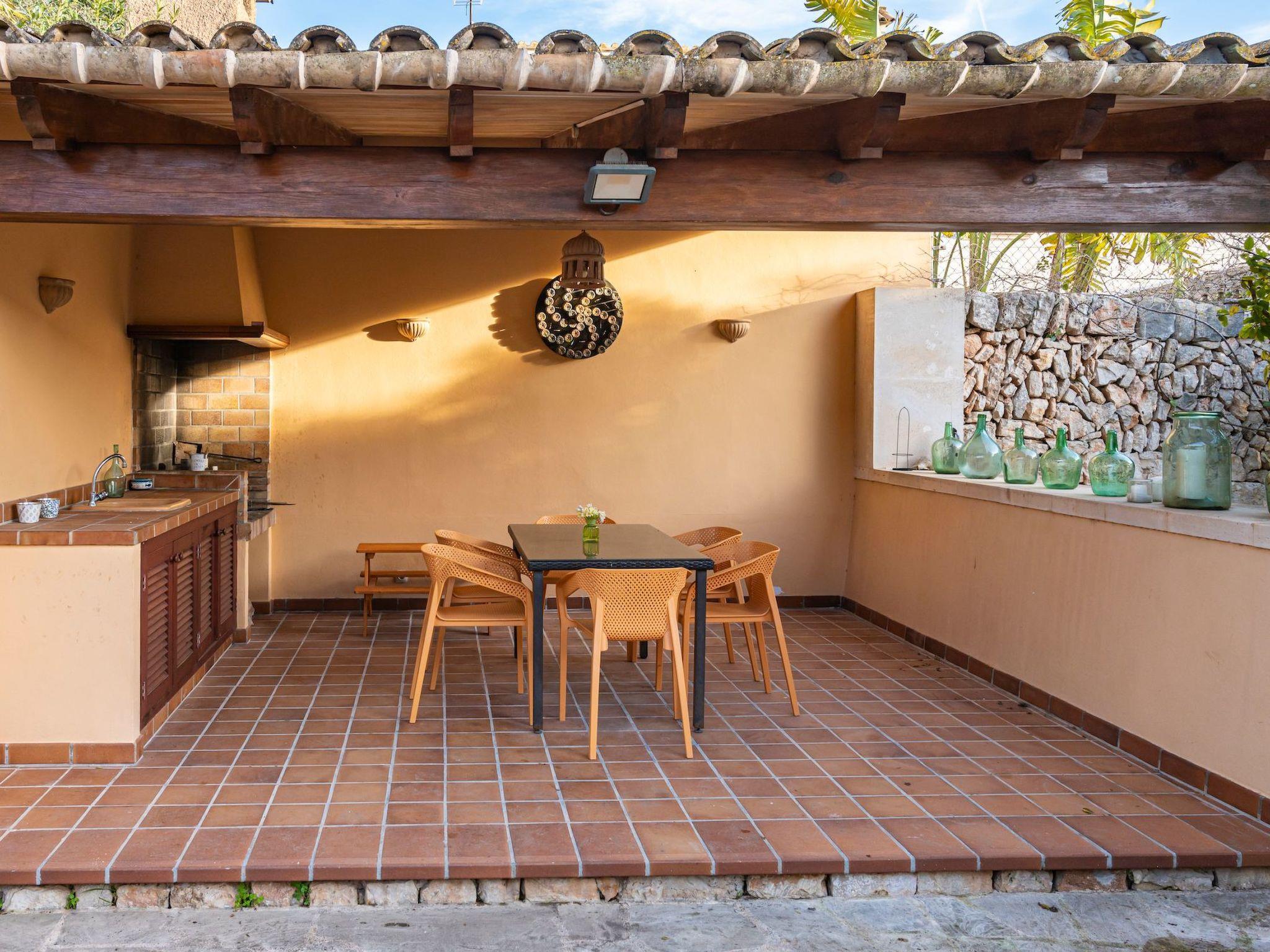 The exterior of the property is a true oasis of relaxation. Its private swimming pool adorned with blue mosaics and a natural stone waterfall is a highlight, offering a perfect retreat for sunny days. The outdoor kitchen with barbecue and outdoor dining area invites you to enjoy unforgettable evenings under the starry Majorcan sky. In addition, the patio overlooking the pool provides the perfect setting for quiet moments in the fresh air.