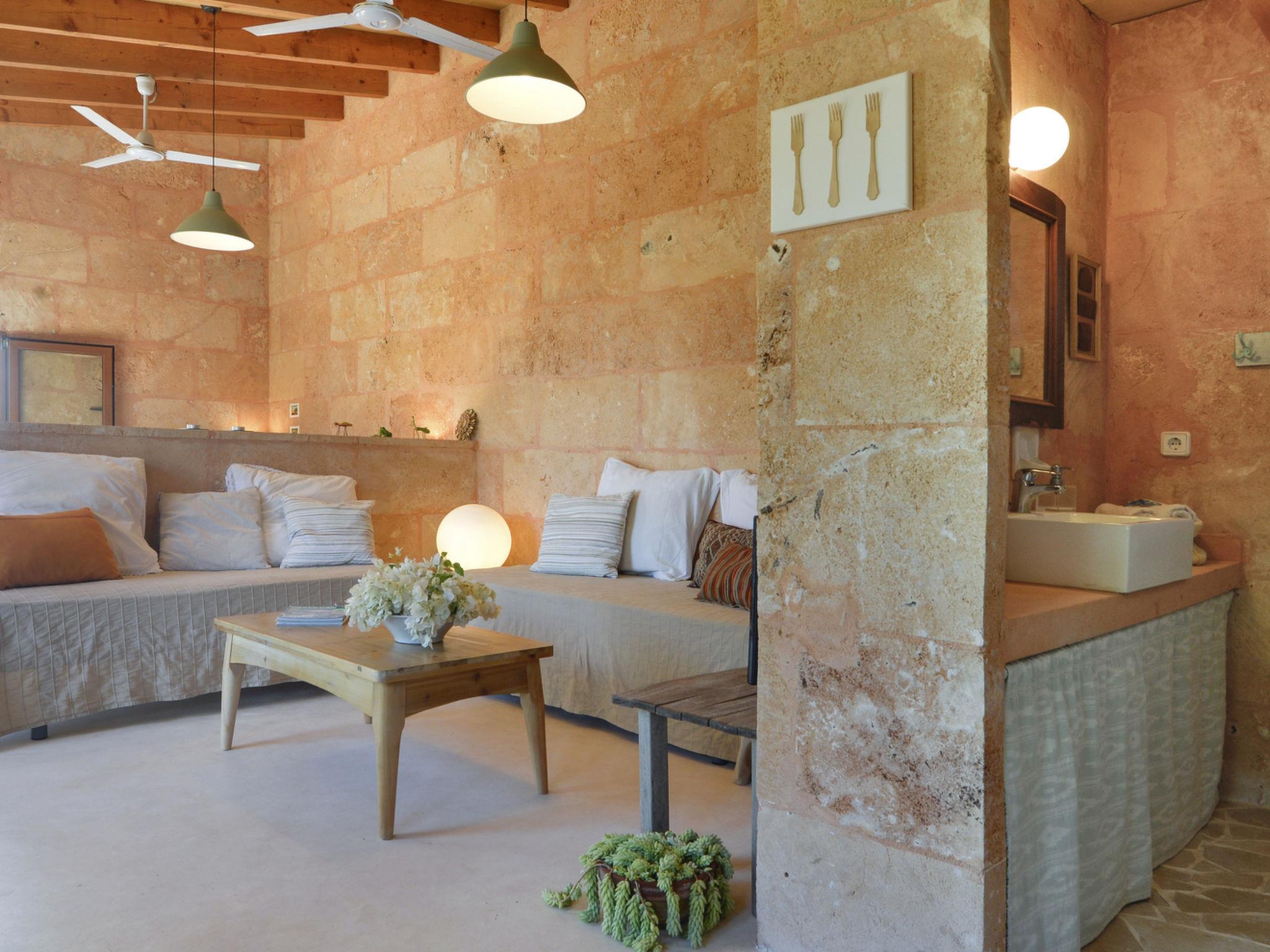 The rustic natural stone house Finca Can Patito - built at the beginning of the last century - has been converted into a cosy holiday home. Here you can spend carefree holidays in the middle of nature. The overall Mallorcan flair of the house invites you to enjoy a relaxing holiday. A barbecue grill is available in the Mediterranean-style garden and allows for an informal outdoor lifestyle. Santanyi - the popular town with its famous market, many shops offering far more than just the daily necessities and numerous restaurants, bodegas and cafés is also within easy reach. To the south is the Cap des Ses Salines, where beautiful sandy beaches with a real Caribbean atmosphere invite you to sunbathe, swim or take a long walk along the beach. The famous Calo des Moro and S'Almunia beaches are also not far away.