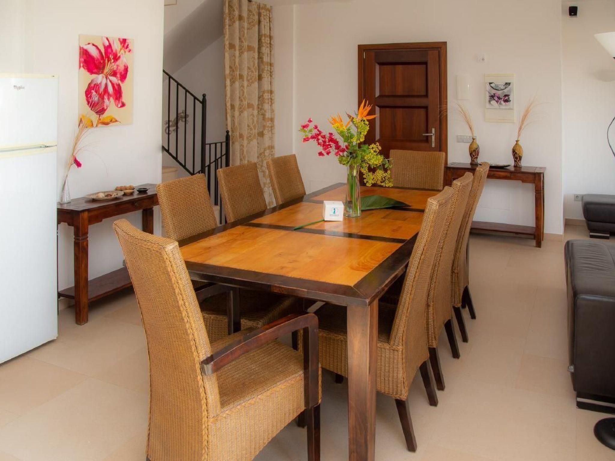 Inside the villa, you are greeted with a modern and spacious layout. The living room, dining room and kitchen flow together in an open, spacious room equipped with contemporary technology - including the fastest fibre optic internet - and high-quality kitchen equipment with induction hob, two fridges with freezer unit and much more. Each of the bedrooms has an adjoining en-suite bathroom with amenities ranging from a large shower to a bathtub, ensuring personal comfort and privacy.