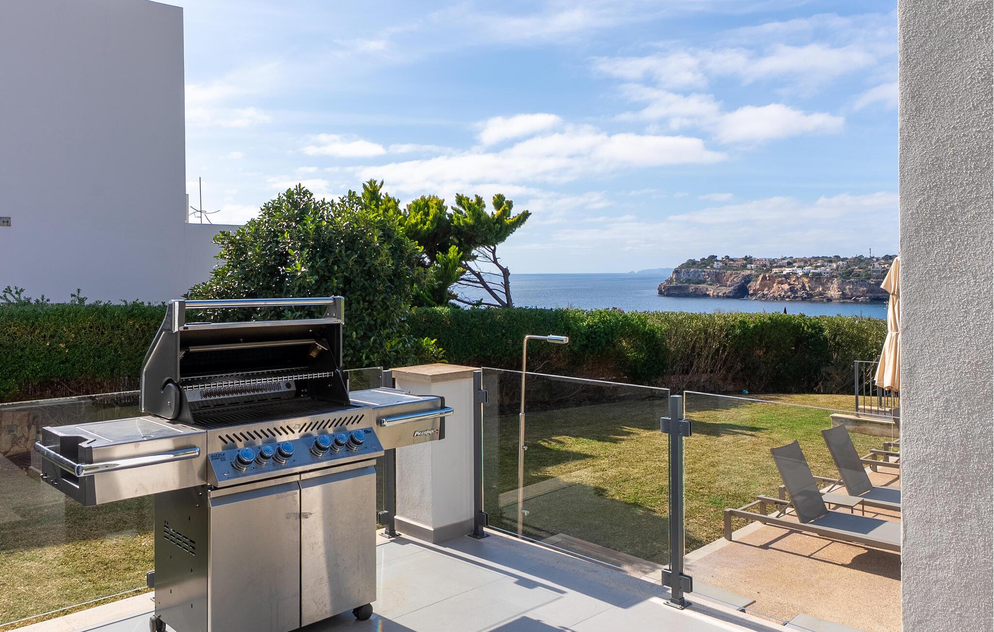 Det elegante udendørsområde er perfekt til timevis af solbadning og lange udendørs spisning. snup en frisk dukkert i den smukke pool og genoplad jeres batterier på liggestolen. Nyd den smukke havudsigt på jeres yndlingssted - det være sig på den ugenerte terrasse i haven, på balkonen eller på den behageligt oplyste veranda. Tænd grillen og glæd jer til stemningsfulde sommernætter med vin og levende lys.