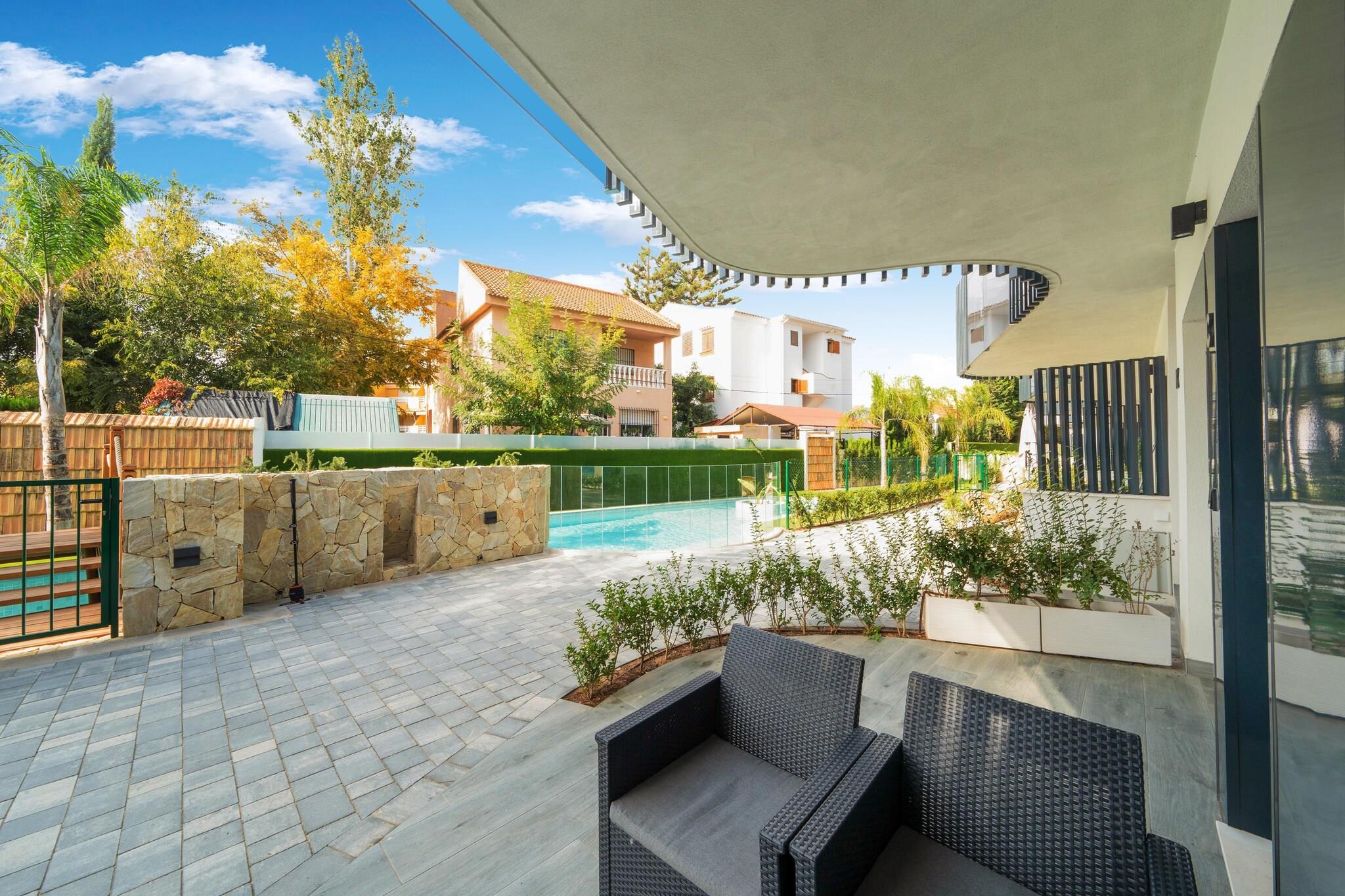 Stueetage: (Køkken(kogeplade, emhætte, kaffemaskine, ovn, mikrobølgeovn, opvaskemaskine , køleskab, klimaanlæg), Stue/soveværelse(dobbeltsovesofa, Fjernsyn, sofahjørne, klimaanlæg), soveværelse(dobbeltseng), soveværelse(enkeltseng, enkeltseng), badeværelse(bruser, håndvask, toilet, vaskemaskine), badeværelse(bruser, håndvask, toilet)) garage, Netflix, Bubble bath, patio, varme, terrasse(overdækket), terrasse, havemøbler, grill, parkering, parkering, liggestole, Parasol, swimmingpool(deles med andre gæster), petanquebane, barneseng