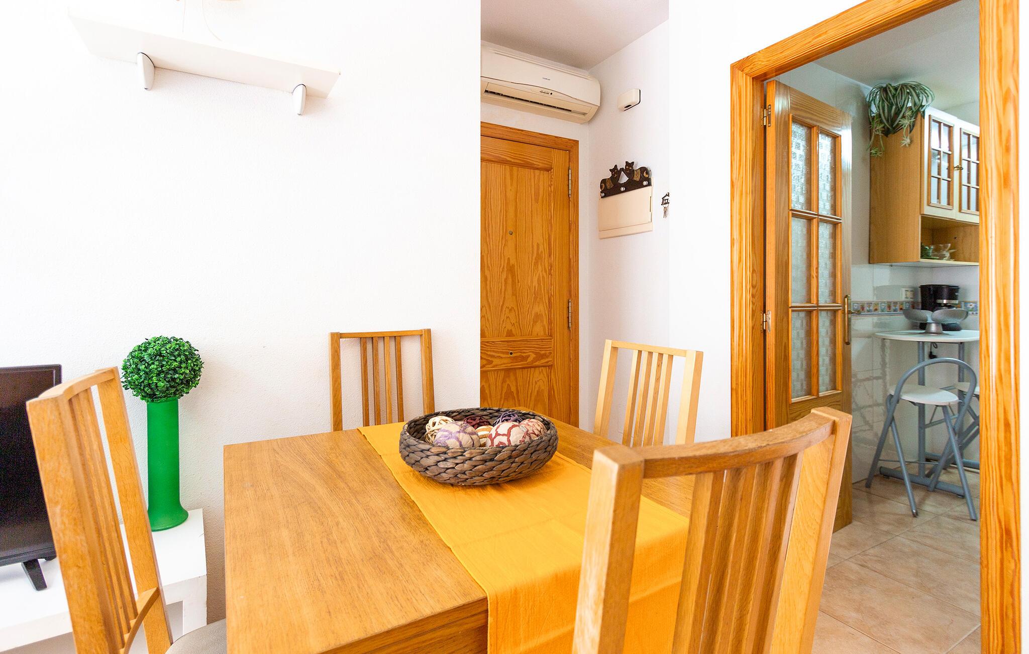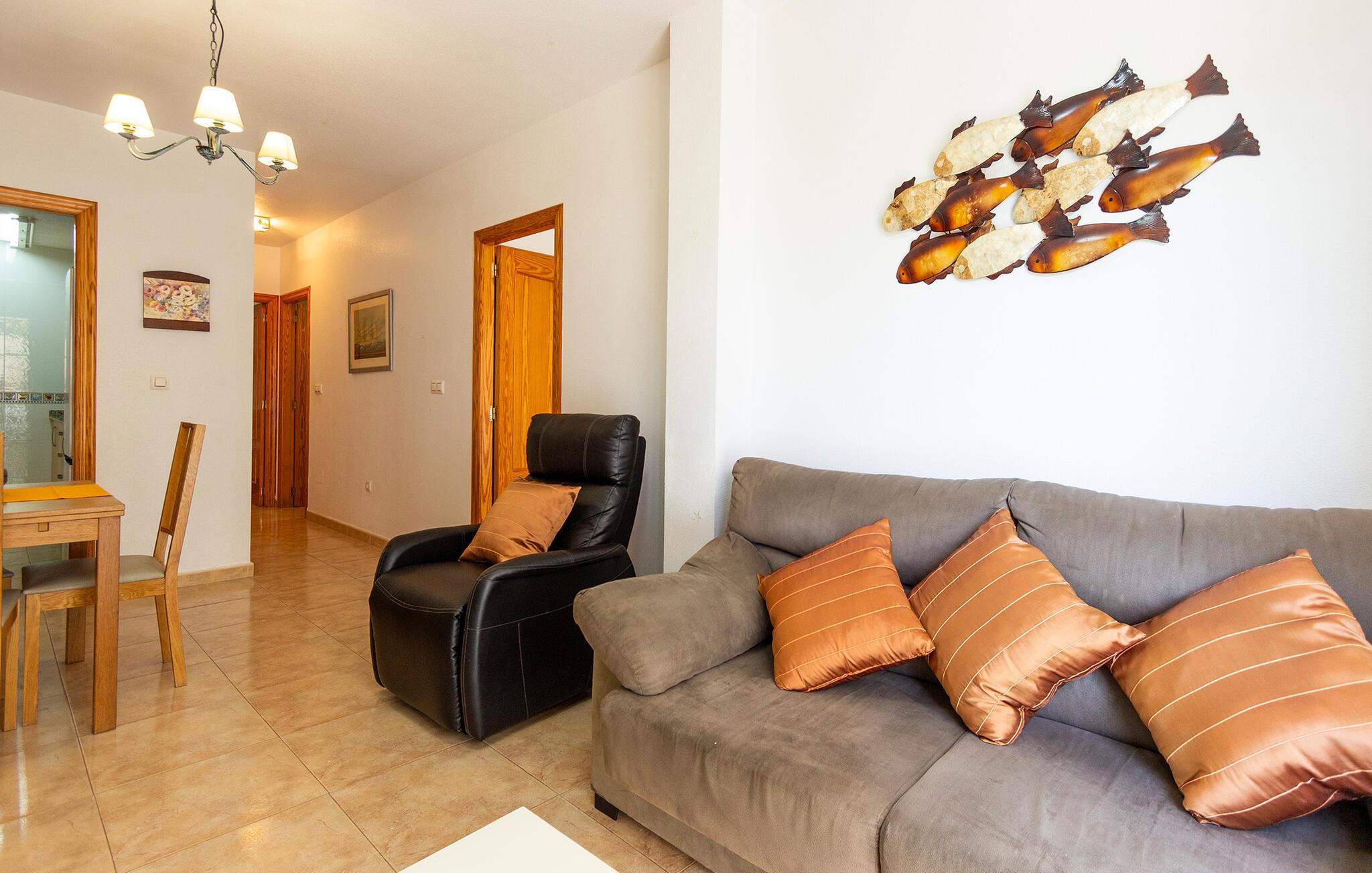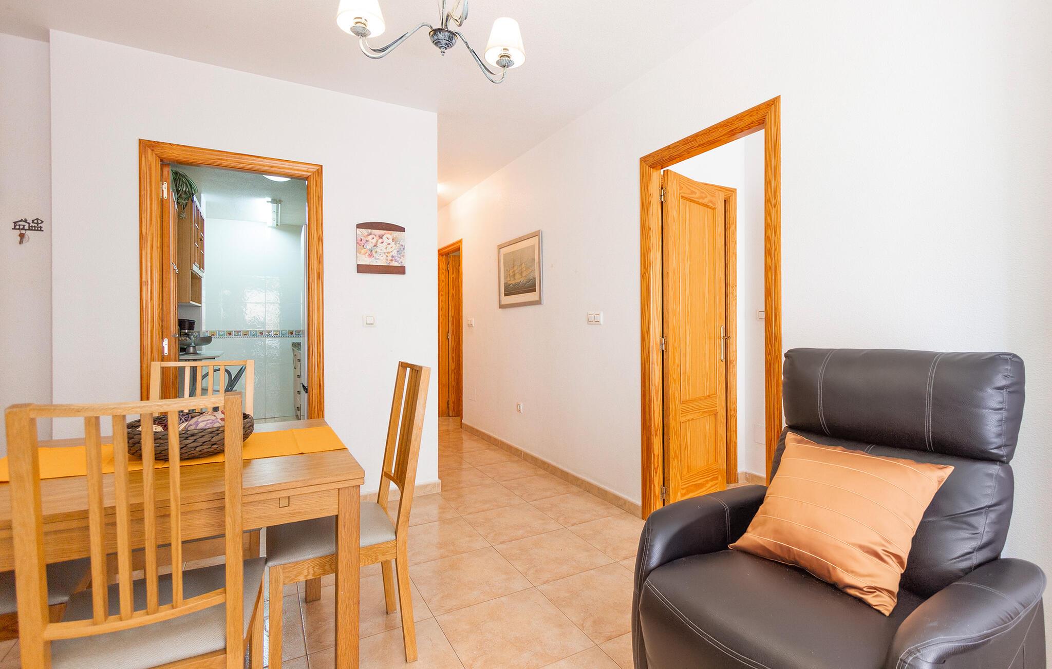 Her bor i kun et stenkast fra stranden i et kompleks med flere ferielejligheder, så den står på vaskeægte badeferie med det samme, I ankommer. Boligen er indrettet med sans for detaljen, et komfortabelt møblement og gode faciliteter, der gør det nemt at slappe af og sænke skuldrene efter en dag med masser af sol og vand. Tilbered noget god mad i køkkenet hen under aftenen og servér måltiderne ved spisebordet, inden I runder aftenen af i sofaen med snacks og en god film på tv'et og lægger planer for de kommende dage.