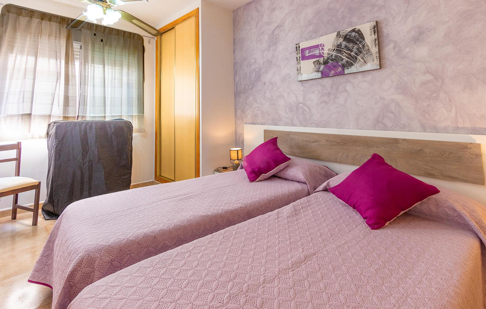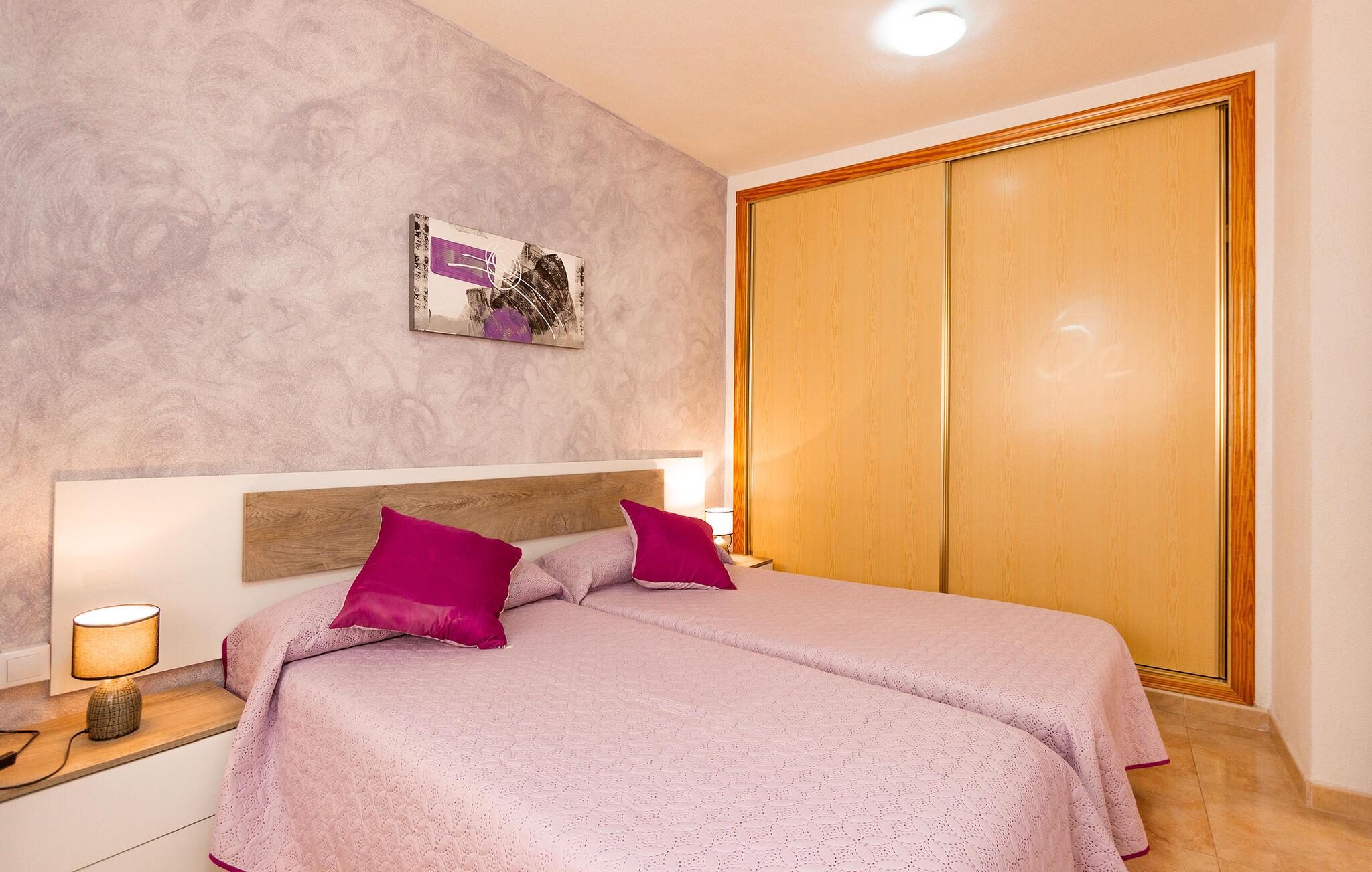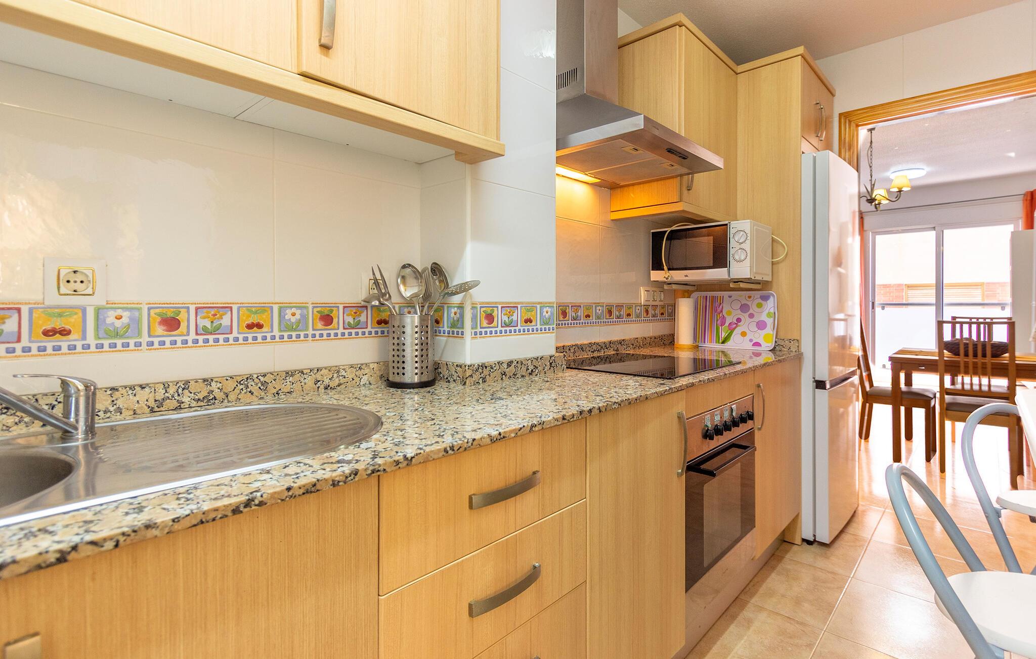 Her bor i kun et stenkast fra stranden i et kompleks med flere ferielejligheder, så den står på vaskeægte badeferie med det samme, I ankommer. Boligen er indrettet med sans for detaljen, et komfortabelt møblement og gode faciliteter, der gør det nemt at slappe af og sænke skuldrene efter en dag med masser af sol og vand. Tilbered noget god mad i køkkenet hen under aftenen og servér måltiderne ved spisebordet, inden I runder aftenen af i sofaen med snacks og en god film på tv'et og lægger planer for de kommende dage.