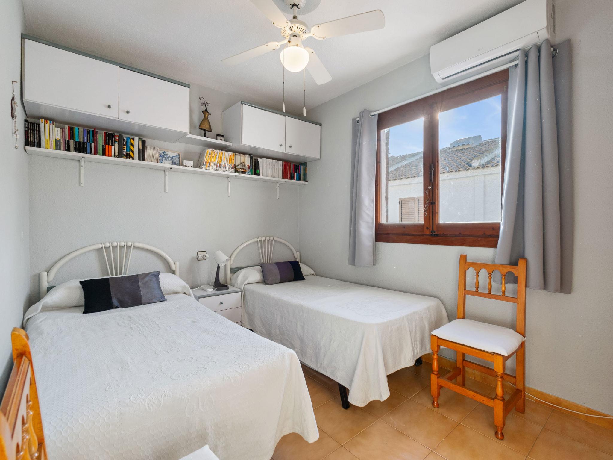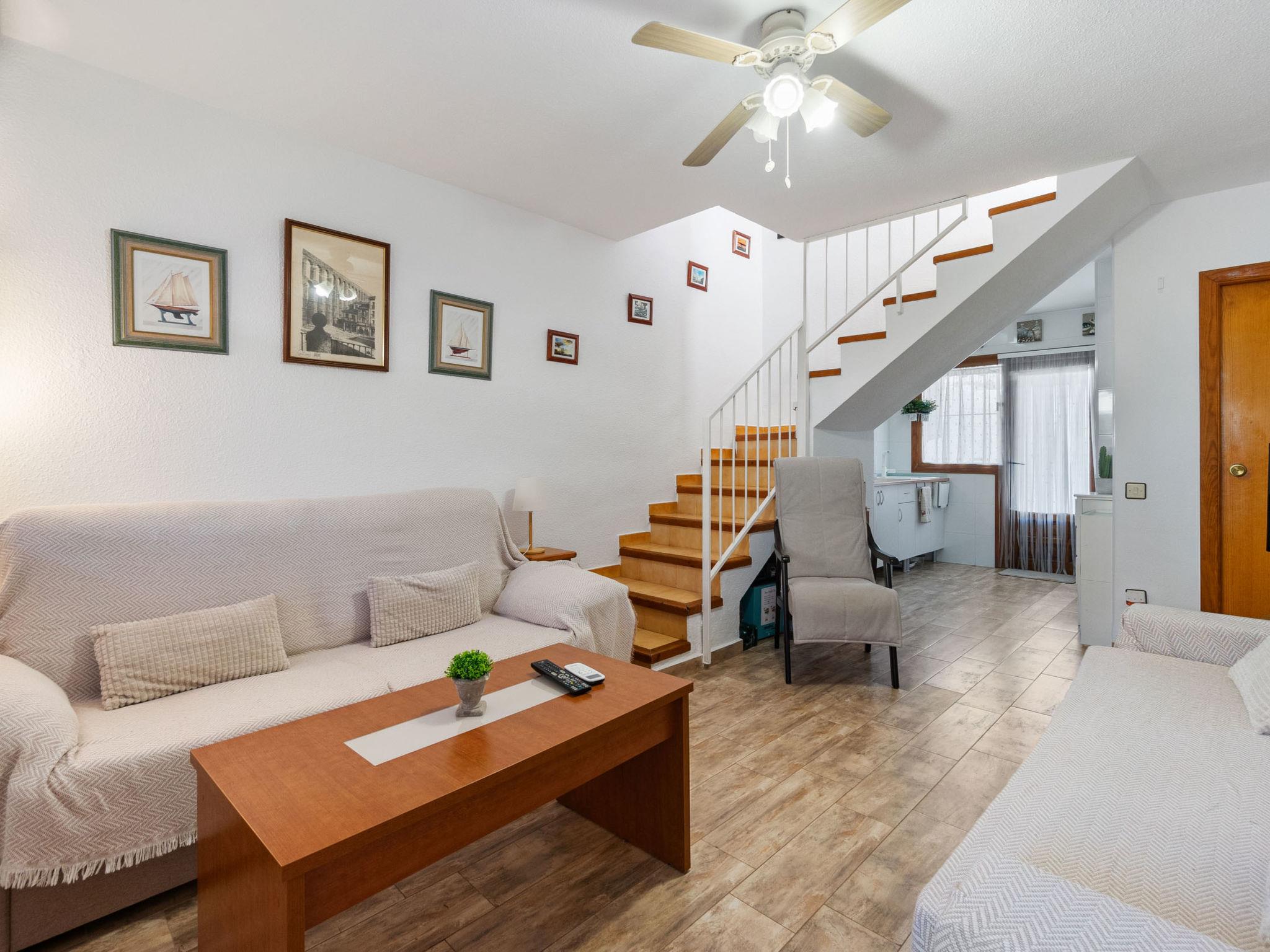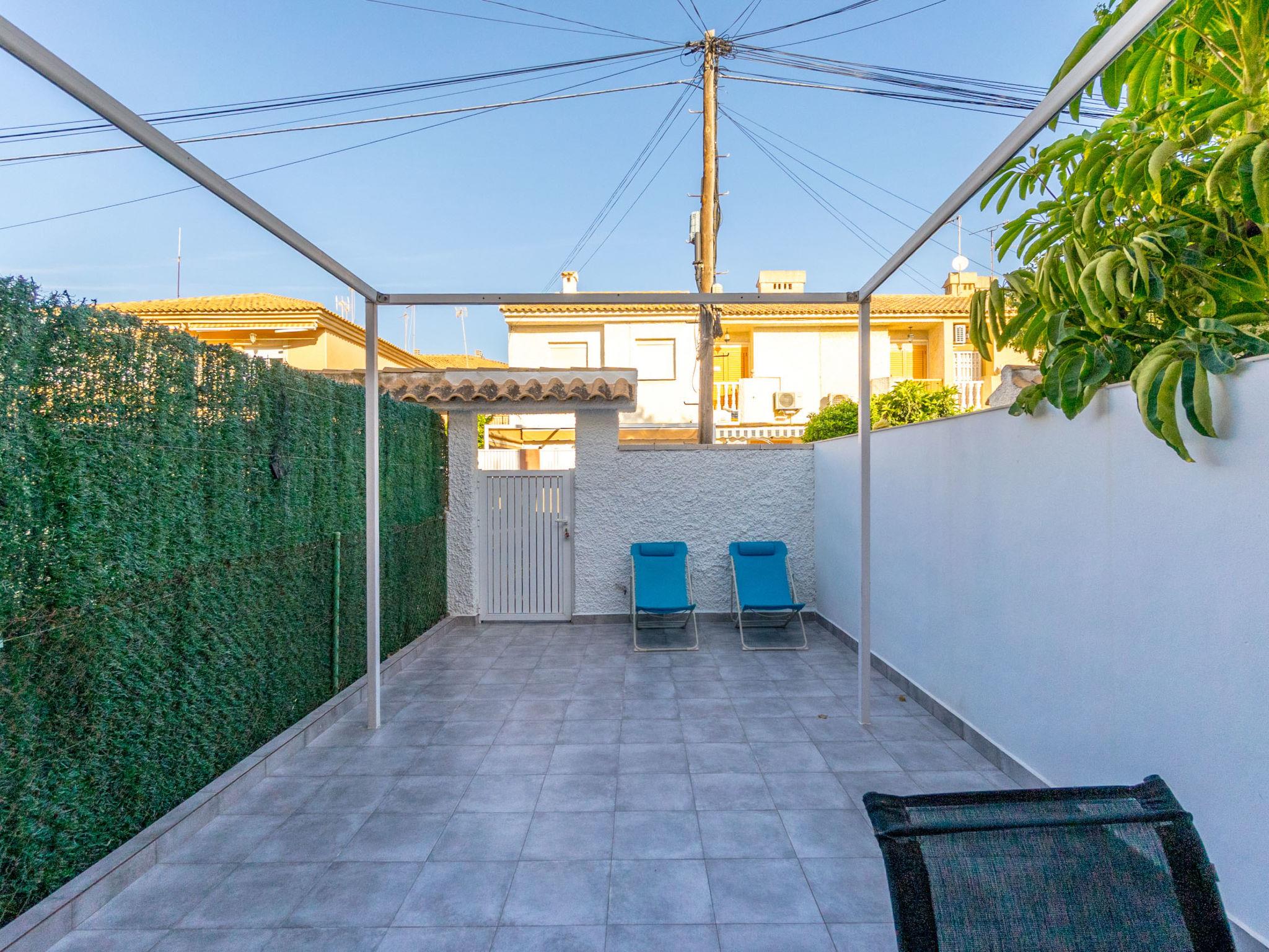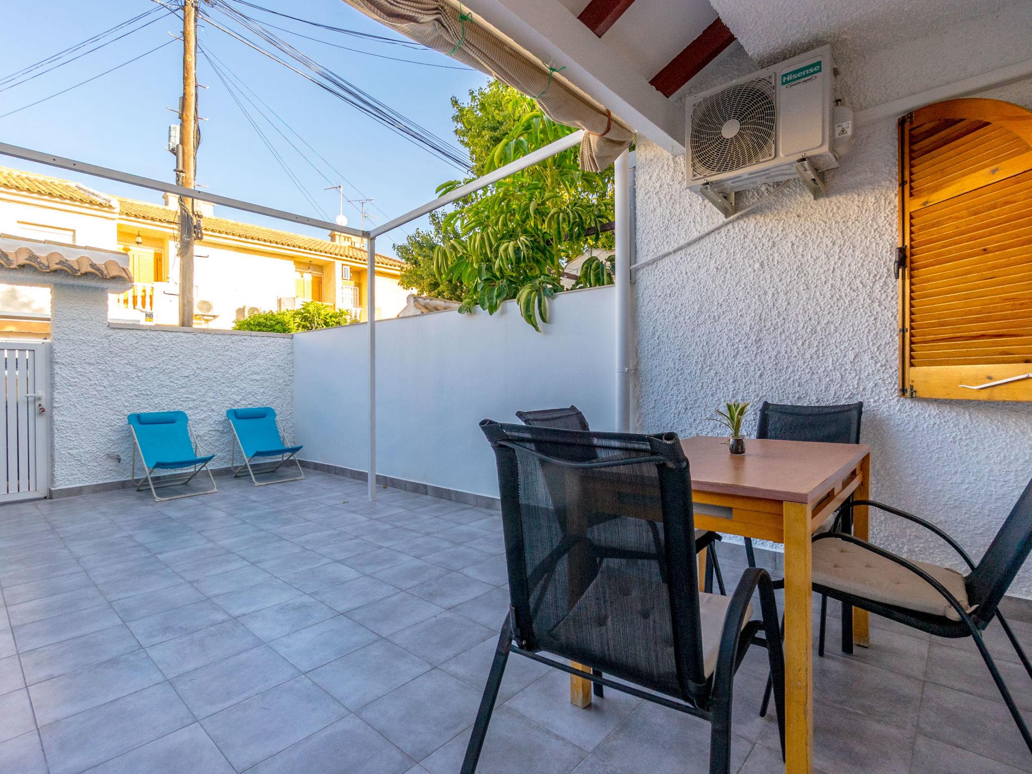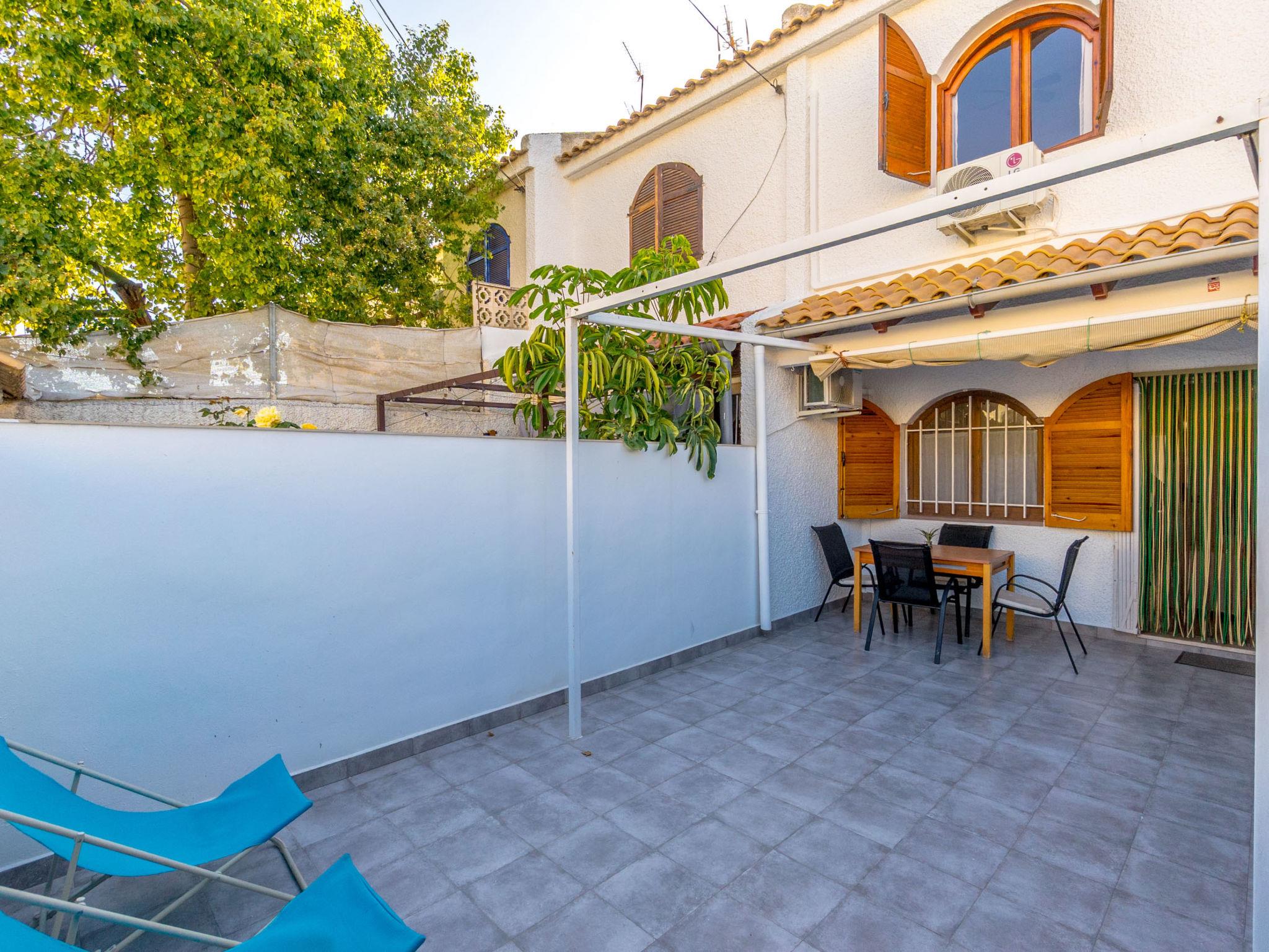 "Carpa", 3-room terraced house 60 m2 on 2 levels. Practical and comfortable furnishings: living/dining room with dining table, digital TV, flat screen, air conditioning, fan and forced-air heating. Exit to the garden, to the patio. Open kitchen (oven, 2 ceramic glass hob hotplates, toaster, microwave, freezer, electric coffee machine). Shower/WC. Upper floor: 1 room with 1 french bed (135 cm, length 190 cm), air conditioning, fan and forced-air heating. 1 room with 2 beds (90 cm, length 190 cm), air conditioning, fan and forced-air heating. Bath/bidet/WC. Heating not available in all rooms. Large terrace 27 m2. Terrace furniture. Facilities: washing machine, iron, children's high chair, baby cot for up to 2 year olds, hair dryer. Internet (WiFi, free). Please note: suitable for families. Non-smokers only. VV.MU.8077-1 // Reg. Nr.: ESFCTU0000300320002564090000000000000000VV/MU/8077-12