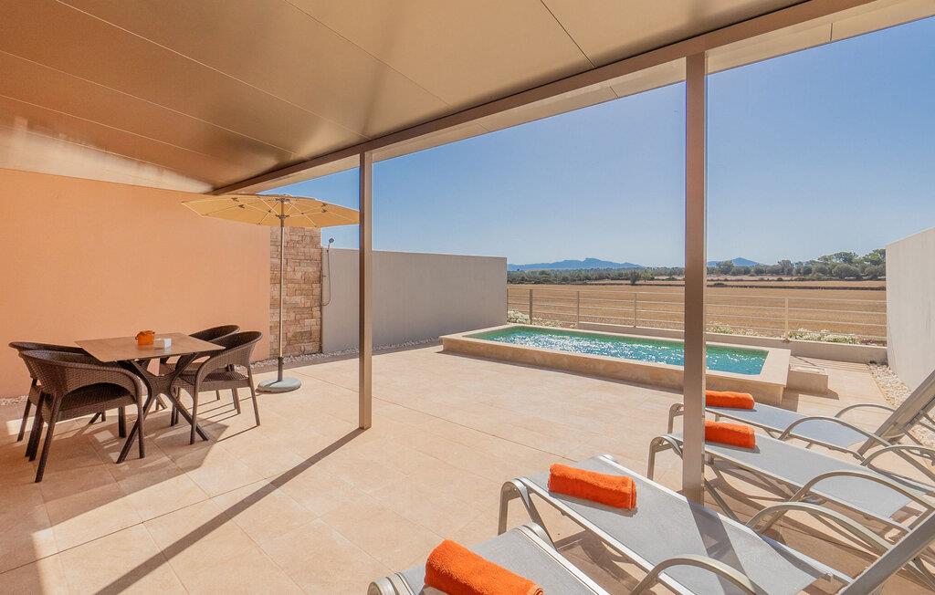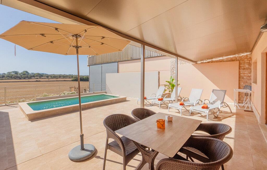 Den lyse, moderne lejlighed "Saraix Melo" er en del af Agroturismo Saraix i Santa Margalida kommune. Landhotellet tilbyder en døgnåben reception med engelsktalende personale. Der er gratis parkering til rådighed, en fælles have osv. En fælles terrasse på denne venlige bolig til fire personer inkluderer en privat terrasse med pool, som byder på smuk udsigt over landskabet. Lejligheden har separat indgang og har aircondition i stuen og begge soveværelser med dobbeltsenge. Den kan opvarmes i de køligere årstider. Det moderne, åbne køkken med spiseplads er integreret i stuen. Der er to moderne badeværelser med bruser. Takket være det hurtige fiberoptiske netværk og fremragende mobilmodtagelse er denne ejendom også ideel til fjernarbejde. Adskillige smukke strande, Albufera Naturpark og den historiske by Alcúdia er inden for rækkevidde. Lejligheden er beliggende i et landligt område nær Alcúdia-bugten på Mallorcas østkyst. Det er 8 minutters kørsel til Can Picafort, som byder på en sandstrand, restauranter og gode indkøbsmuligheder. Den lange strand i Playa de Muro ligger 12 minutters kørsel derfra.