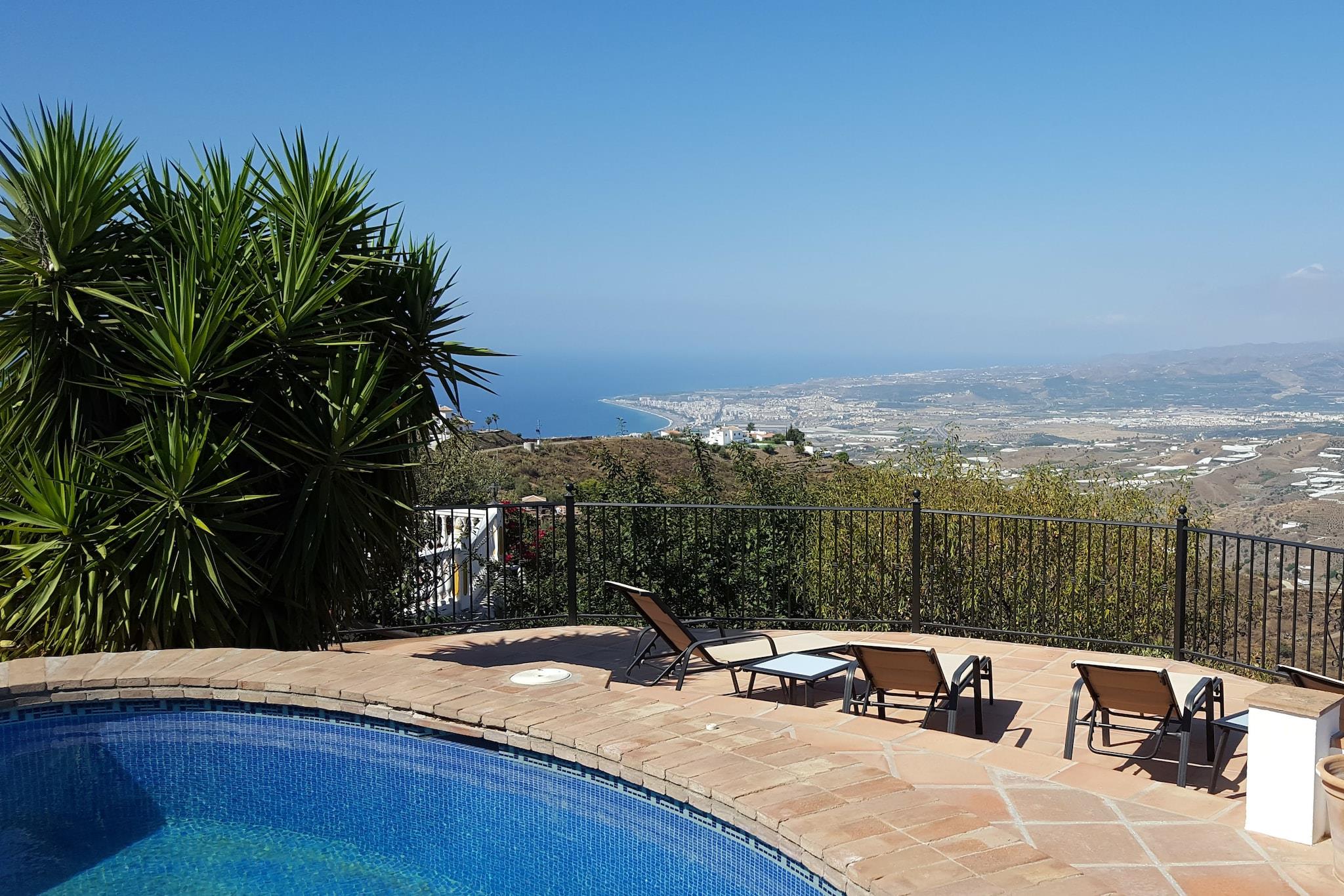 Gemt i bakkerne i Sayalonga kombinerer denne indbydende villa varme og komfort med masser af plads til at slappe af. Det er designet til familieophold og har lyse opholdsområder, en hyggelig pejs og et veludstyret køkken til hjemmelavede måltider. Soveværelserne er omhyggeligt arrangeret på tværs af to etager, inklusive en hovedsuite med balkonudsigt. Udenfor skaber den private pool med liggestole og den skyggefulde terrasse en afslappende ramme for solrige eftermiddage eller rolige aftener. Fra villaen er Middelhavskysten kun en kort køretur væk, og Algarrobo Costa tilbyder sandstrande, butikker og caféer ved havet. Golfspillere kan tilbringe dagen på Baviera Golf, mens vandrere og opdagelsesrejsende vil nyde charmen fra nærliggende bjerglandsbyer som Cómpeta og Frigiliana. For dagsture, besøg Nerja-hulerne, vandre gennem det historiske Alhambra-palads eller nyd familietid i Aquavelis Water Park. Aeropuerto de Málaga er bekvemt inden for rækkevidde, hvilket gør ankomster og afgange nemme. Sayalongas landsbycenter, kun tre kilometer væk, byder på autentisk spansk spisning, hvor du kan prøve andalusiske tapas, frisk fisk og skaldyr og lokale vine. Traditionelle restauranter serverer solide gryderetter og regionale retter, mens kystspisesteder byder på middelhavsretter med havudsigt. Blandingen af ??bjergcharme og kystnære variation sikrer masser af muligheder for både rolige middage og livlige aftener ude. Efter en dag med udforskning, vend tilbage til din villa til grillmiddage under stjernerne.