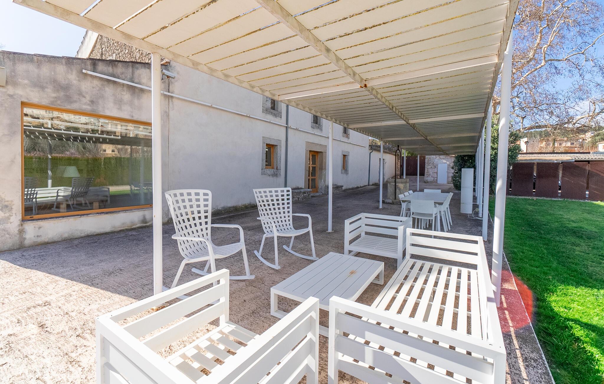 Nyd den store overdækkede terrasse med udsigt over den store have eller forfrisk jer i den indbydende pool. Her kan I opleve middelhavsro i en ekstraordinær atmosfære.