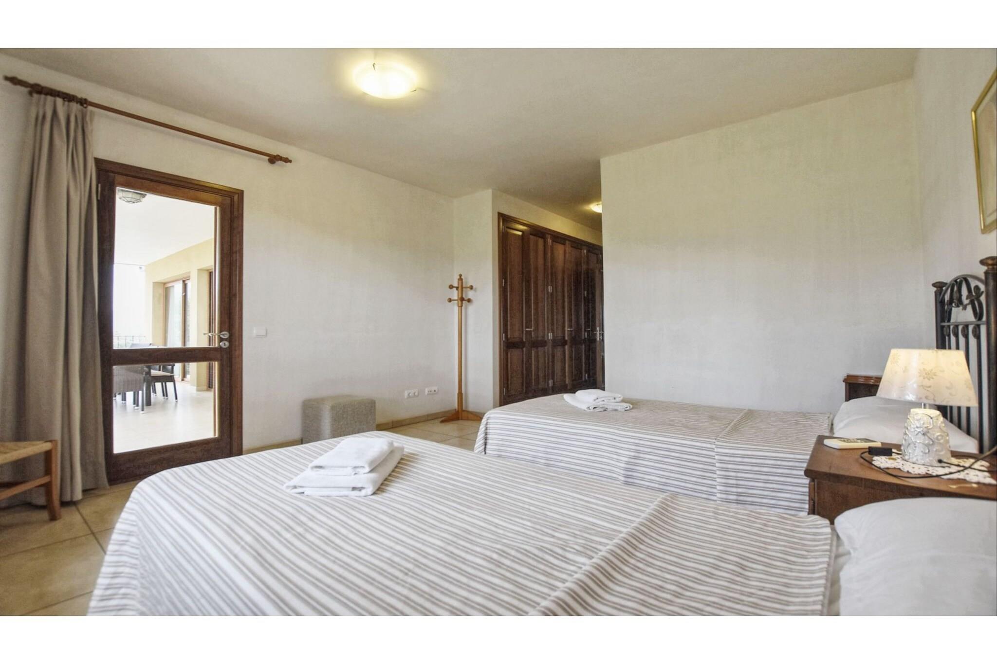 Stueetage: (Køkken(komfur(glaskeramisk), ovn, mikrobølgeovn, opvaskemaskine , køle-fryseskab, barnestol), stue / spisestue(Fjernsyn(parabol), spisebord, sofahjørne), soveværelse(2x enkeltseng), Soveværelse med badeværelse(2x enkeltseng, badekar, håndvask, toilet, bidet), badeværelse(bruser, håndvask, toilet), varme(central), klimaanlæg) På 1. etage: (soveværelse(dobbeltseng), Soveværelse med badeværelse(2x enkeltseng, badekar, håndvask, toilet), Soveværelse med badeværelse(2x enkeltseng, bruser, håndvask, toilet, bidet), badeværelse(bruser, håndvask, toilet, bidet)) vaskerum , havestue/veranda, bruser(udendørs), have, havemøbler, grill, parkering, swimmingpool(privat, 10 x 5 m., opened from Mar upto and including Sep), bordtennisbord