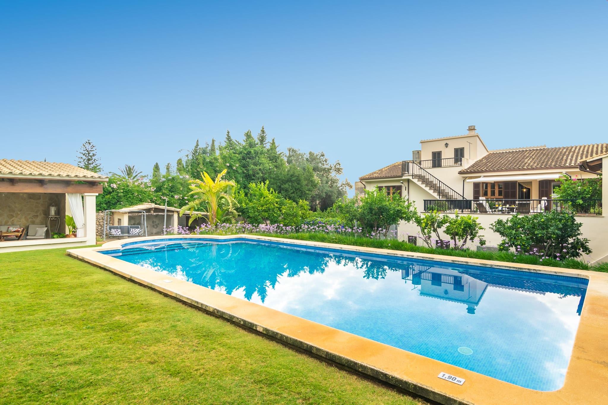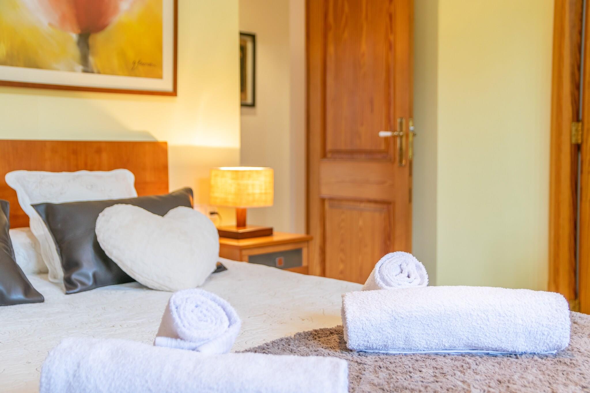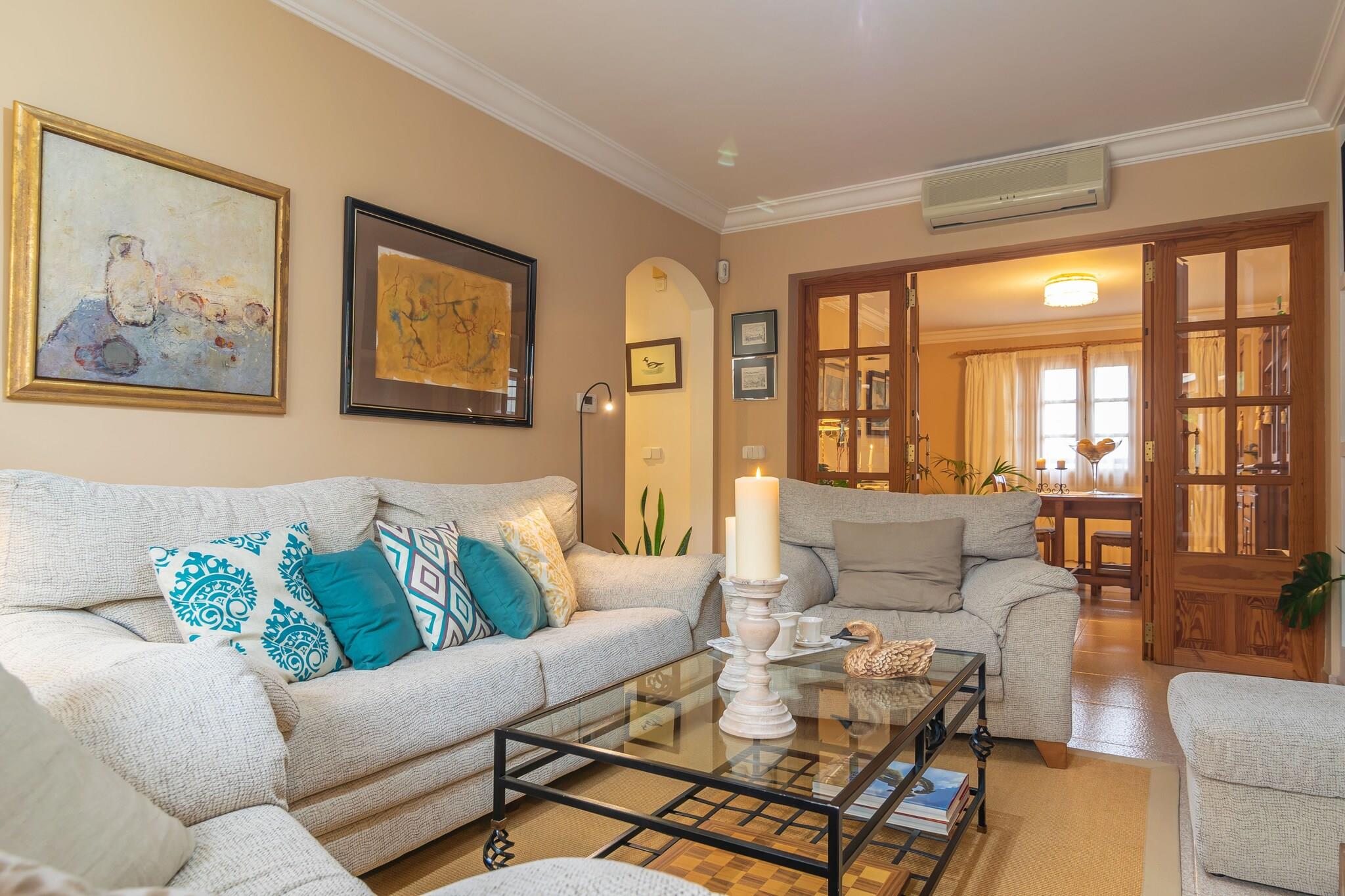 Dette lyse Selva-hjem kombinerer komforten fra moderne bekvemmeligheder med roen i en bjerglandsby. Saltvandspoolen, omgivet af liggestole og en skyggefuld veranda, skaber et indbydende sted at slappe af under den baleariske sol. En møbleret terrasse har udsigt over både poolen og Tramuntana-området, hvilket gør det til et indbydende sted for langsom morgenmad eller aftenmiddage. Indenfor byder huset på tre soveværelser med aircondition, to badeværelser og en hyggelig opholdsstue med satellit-tv. Et fuldt udstyret køkken, vaskerum og centralvarme sikrer, at alle detaljer understøtter et nemt, selvstændigt ophold. Ejendommen ligger kun 800 meter fra Selvas centrum og gør det nemt at udforske Mallorca. Gå en tur gennem brostensbelagte gader, hent friske råvarer på det ugentlige marked, eller tag en kort køretur til Port d'Alcúdias gyldne sand, kun 23 km væk. Golfelskere vil sætte pris på Pollença Golf i nærheden, mens naturentusiaster kan følge naturskønne bjergstier i det UNESCO-listede Tramuntana. Viceværterne bor i stueetagen, hvilket sikrer et velholdt miljø, mens gæsterne nyder privatlivets fred på første sal. Selvas landsbycharme strækker sig til dens restauranter, med caféer og traditionelle restauranter kun en kort gåtur væk. Uanset om du er i humør til tapas, friskbagte kager eller et sidde-måltid med udsigt over bjergene, er der masser af autentiske valg. For mere variation tilbyder Inca - Mallorcas tredjestørste by - en bredere blanding af spisesteder, butikker og tjenester kun 8 km væk.