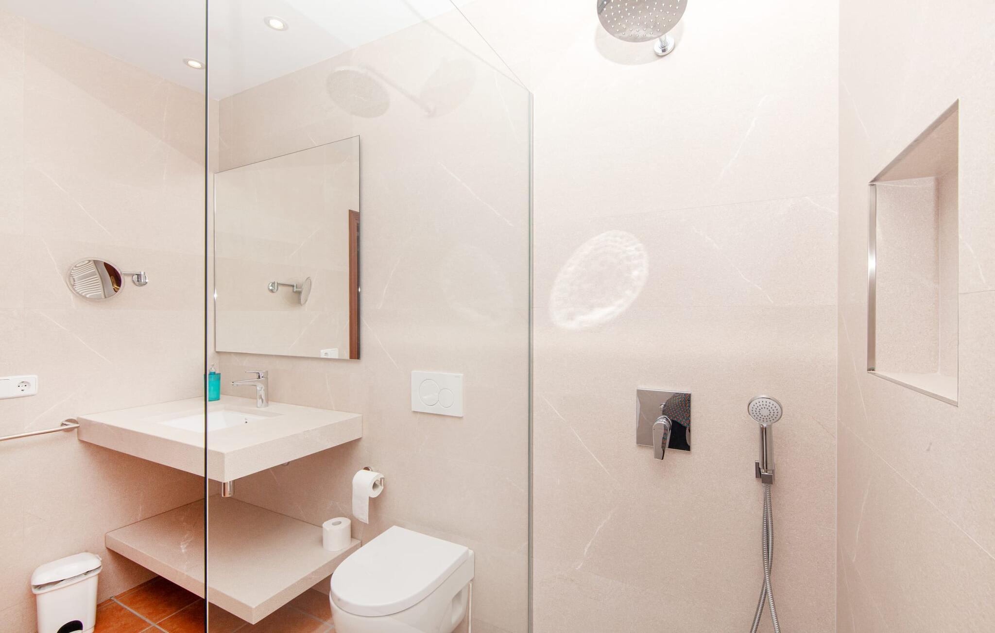 Badeværelse (nr. 1) - WC. Varmt og koldt vand. Bruser