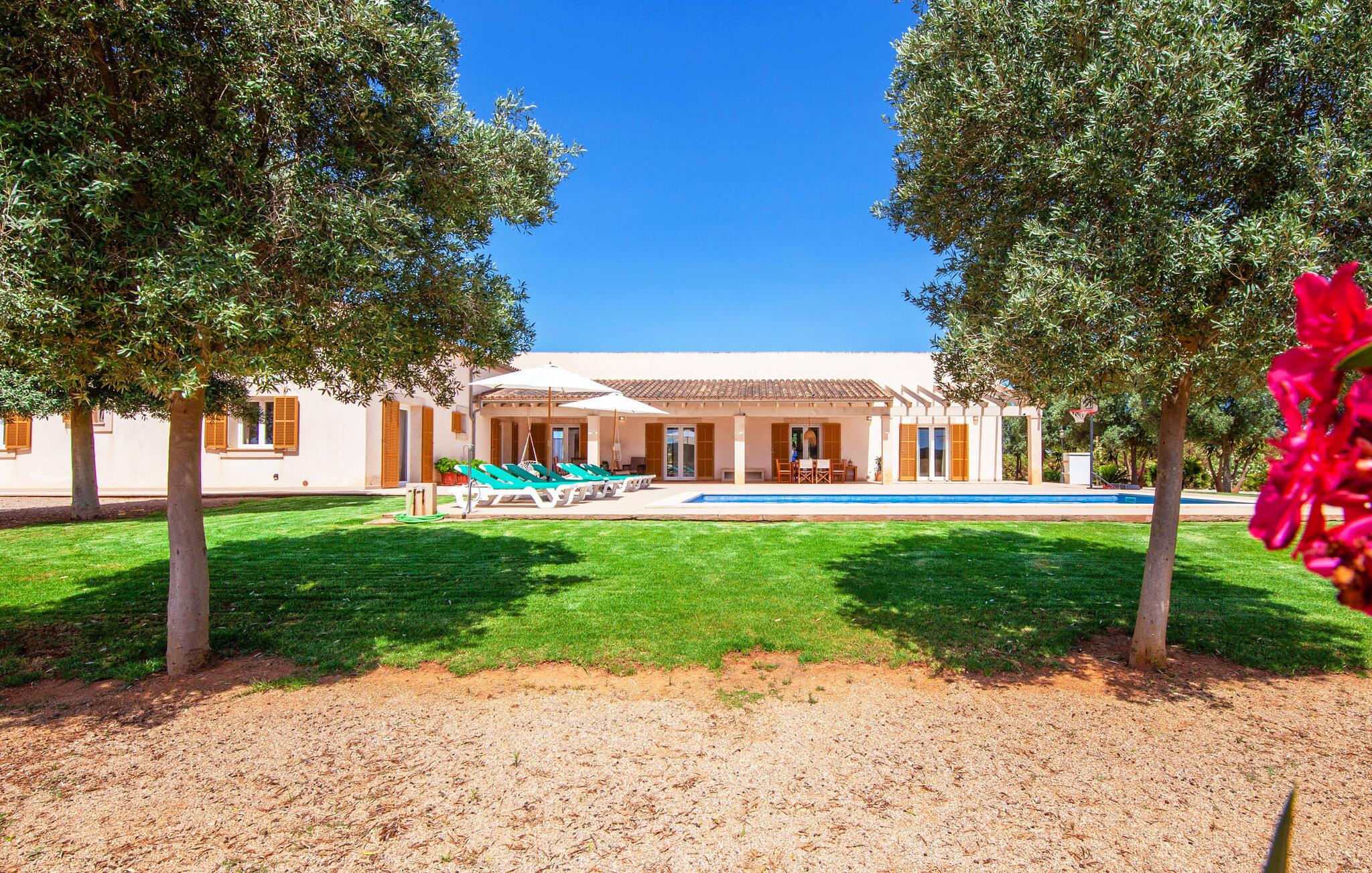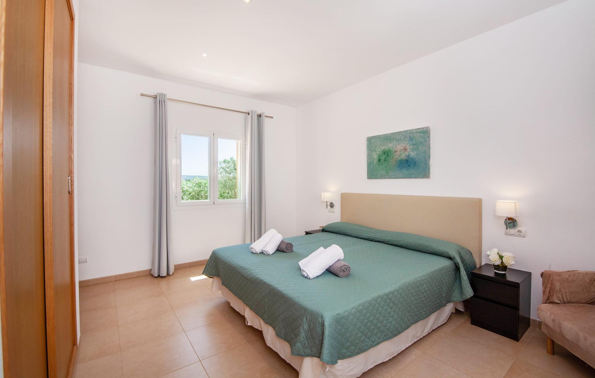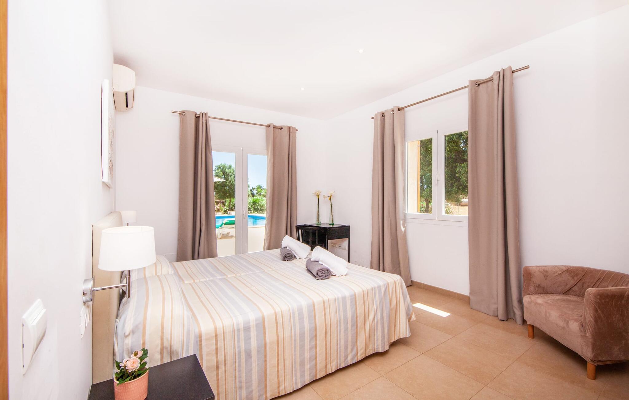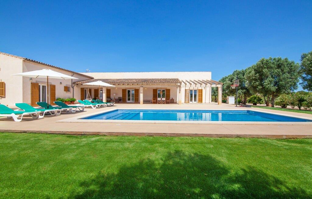 den nybyggede villa "Ses Portes" er den lyse blå himmel klar og byder på perfekte temperaturer og en blid havbrise, der er fyldt med ferieånd. Det lyder måske idyllisk, men det er virkeligheden ved at flygte til dette fredelige tilflugtssted. Den L-formede villa er omgivet af en frodig have, hvor unge træer vokser mod en lys fremtid. Ejendommen er beliggende i et fredeligt landskab, der er typisk for den sydlige del af øen, og tilbyder en vidstrakt udsigt at nyde. Dette er et sted for dem, der sætter pris på de rene linjer i minimalistisk design. Den klassiske rektangulære pool inviterer jer til at svømme når som helst, omgivet af komfortable liggestole til at slappe af efter svømning. Når vejret kalder på det, kan I fyre op i grillen til en aftenfest. Den overdækkede terrasse har to spiseborde, ideel til større grupper. Indenfor er der fire soveværelser med dobbeltsenge, hver med lyse, moderne møbler og komfortable senge. To værelser har eget badeværelse, mens de to andre deler badeværelse med et ekstra gæstetoilet. Den rummelige stue med hvid sofa og tv inviterer jer til at slappe af, mens det fuldt udstyrede køkken gør madlavning til en fornøjelse. Ejerne står klar for at sikre, at deres gæster får et mindeværdigt ophold. "Ses Portes" bringer jer tæt på de smukkeste strande i den sydlige del af øen. Det er landligt beliggende mellem Campos, hvor et livligt ugentligt marked finder sted torsdage og lørdage, og den tidligere fiskerby Colonia de Sant Jordi, som byder på alle fordelene ved det nærliggende hav. Strande som Es Trenc (11 km) eller Cala Pi (26 km) nås bedst med bil. Vi anbefaler et besøg i Ses Salines, et naturreservat med saltbassiner, 6 km væk.