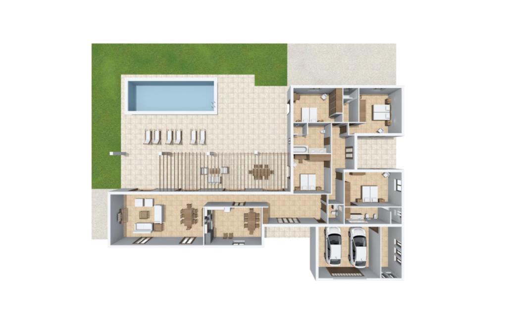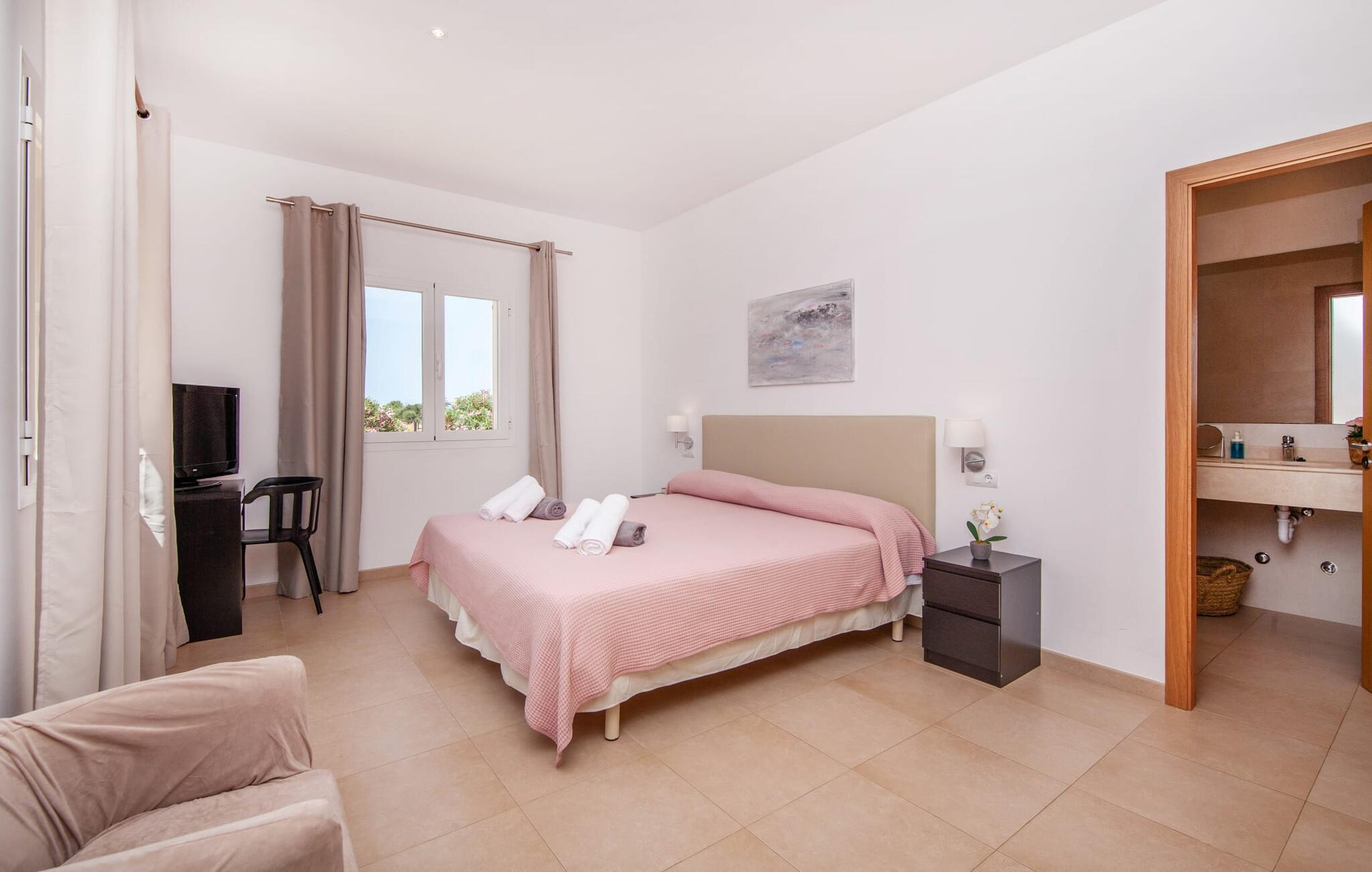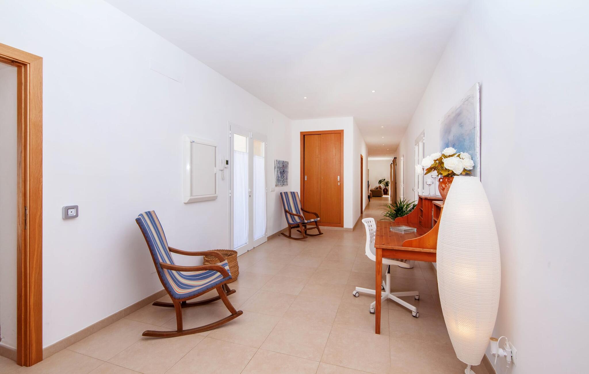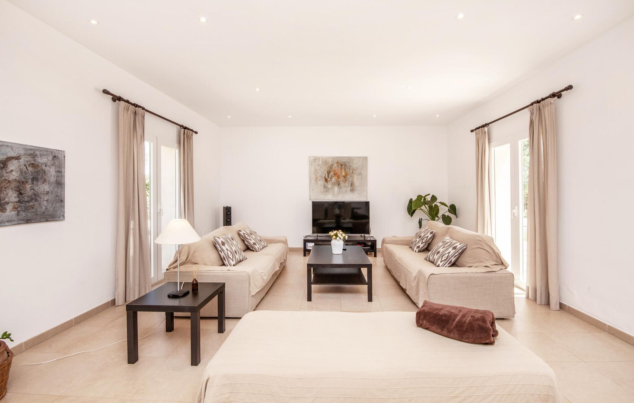 den nybyggede villa "Ses Portes" er den lyse blå himmel klar og byder på perfekte temperaturer og en blid havbrise, der er fyldt med ferieånd. Det lyder måske idyllisk, men det er virkeligheden ved at flygte til dette fredelige tilflugtssted. Den L-formede villa er omgivet af en frodig have, hvor unge træer vokser mod en lys fremtid. Ejendommen er beliggende i et fredeligt landskab, der er typisk for den sydlige del af øen, og tilbyder en vidstrakt udsigt at nyde. Dette er et sted for dem, der sætter pris på de rene linjer i minimalistisk design. Den klassiske rektangulære pool inviterer jer til at svømme når som helst, omgivet af komfortable liggestole til at slappe af efter svømning. Når vejret kalder på det, kan I fyre op i grillen til en aftenfest. Den overdækkede terrasse har to spiseborde, ideel til større grupper. Indenfor er der fire soveværelser med dobbeltsenge, hver med lyse, moderne møbler og komfortable senge. To værelser har eget badeværelse, mens de to andre deler badeværelse med et ekstra gæstetoilet. Den rummelige stue med hvid sofa og tv inviterer jer til at slappe af, mens det fuldt udstyrede køkken gør madlavning til en fornøjelse. Ejerne står klar for at sikre, at deres gæster får et mindeværdigt ophold. "Ses Portes" bringer jer tæt på de smukkeste strande i den sydlige del af øen. Det er landligt beliggende mellem Campos, hvor et livligt ugentligt marked finder sted torsdage og lørdage, og den tidligere fiskerby Colonia de Sant Jordi, som byder på alle fordelene ved det nærliggende hav. Strande som Es Trenc (11 km) eller Cala Pi (26 km) nås bedst med bil. Vi anbefaler et besøg i Ses Salines, et naturreservat med saltbassiner, 6 km væk.