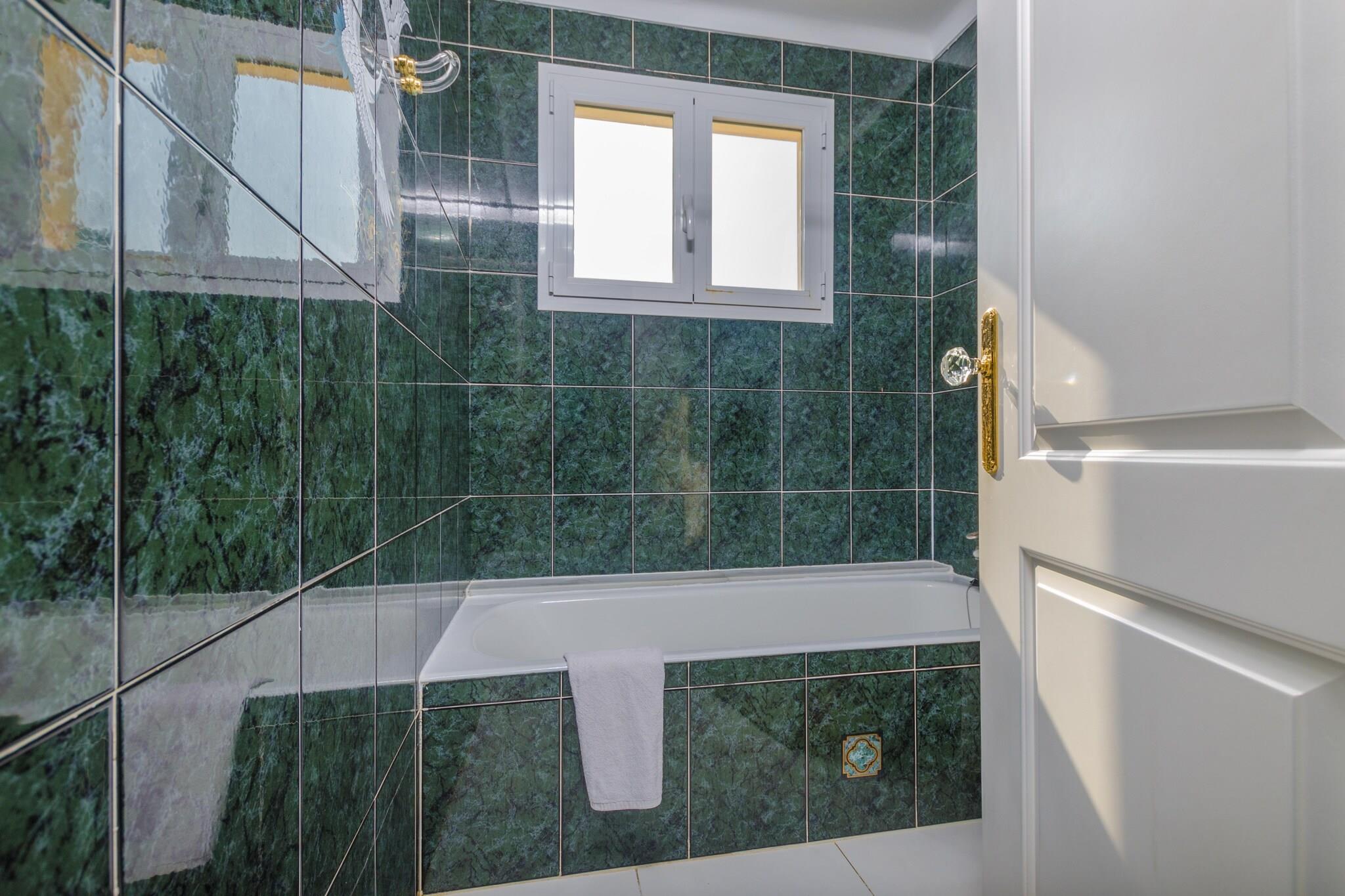 De buitenruimtes zijn prachtig. U kunt genieten van de rust die het platteland biedt en heerlijk zwemmen in het zwembad, tennissen en tafeltennissen of een heerlijke barbecue bereiden. De veranda, ingericht met een grote tafel met stoelen en enkele banken, leent zich uitstekend voor deze aangename zomerse diners. Het zwembad is op chloorbasis en heeft afmetingen van 11 x 5 m en een diepte variërend van 0,9 tot 1,8 m. Eromheen staan ??8 ligstoelen om te zonnebaden en meer dan 200 m2 gras, versierd met planten en bomen, wat vooral voor kinderen de perfecte plek is om non-stop rond te rennen. Er is een kippenhok met kippen waar ze de volledige vrijheid hebben om eieren te verzamelen, evenals fruitbomen om hun heerlijke fruit te proeven. Van het veld naar de tafel! Het perceel is omheind en biedt absolute privacy. Dit grote huis met drie verdiepingen heeft een grote woon-eetkamer met een frisse sfeer dankzij de witte tint en de details in blauwe kleuren die doen denken aan de zee. Hier wilt u even de tijd nemen om te ontspannen en tot rust te komen terwijl u naar satelliettelevisie kijkt. De keuken volgt dezelfde stijl en is volledig uitgerust met alles wat je nodig hebt om probleemloos te koken, waaronder onder meer een keramische kookplaat, oven, magnetron, vaatwasser en koffiezetapparaat. In de wasruimte vindt u een wasmachine, droger, strijkijzer en strijkplank. Er zijn in totaal vijf kamers. Op dezelfde verdieping vinden we er een met een tweepersoonsbed, airconditioning, kledingkast en en-suite badkamer met apart bad en douchecabine, beide met hydromassage. Daarnaast maakt een toilet met fonteintje deze begane grond compleet. Als we de trap opgaan, komen we bij de vier overige kamers, die elk twee eenpersoonsbedden hebben. Drie ervan hebben een kast, drie hebben airconditioning en twee bieden directe toegang tot een prachtig terras. Bovendien is er voor elke twee kamers een gedeelde badkamer met ligbad. De uitrusting wordt gecompleteerd met een wieg en een kinderstoel voor een baby, evenals centrale verwarming op olie door het hele huis voor winterverblijven. De woning is gelegen tussen Las Salinas en Colonia de Sant Jordi, waar u een prachtig zandstrand vindt. Een paar kilometer verder bereikt u het beroemde en paradijselijke strand van Es Trenc, ideaal om de hele dag door te brengen. Als u er nog een dag zin in heeft, kunt u onder meer een boottocht maken naar het eiland Cabrera, de zoutmijn bezoeken waar het zout wordt gescheiden van het zeewater en eten in een goed restaurant. Dit gebied stelt u alle noodzakelijke diensten ter beschikking, zoals supermarkten, apotheken, banken, cafés en meer. En voordat u vertrekt, is het verplicht om de stad Palma te leren kennen, met zijn centrale geplaveide straten vol leven en winkels, en zijn legendarische kathedraal. Uw huisdieren mogen blijven zolang ze de woning niet betreden, dit is namelijk verboden. Buiten is er ruimte voor huisdieren. Voor eventuele extra kosten kunt u contact opnemen met de adverteerder. Wij accepteren geen huisdieren. Het vieren van evenementen is niet toegestaan. Er is buiten parkeergelegenheid voor 8 auto's. Afstanden Strand: 2,4 km - Es Port, Colonia de Sant Jordi Luchthaven: 46,8 km - Son Sant Joan Golfbaan: 25 km - Vall D'Or, Colonia de Sant Jordi Stad: 2,3 km - Colonia de Sant Jordi Treinstation: 39,3 km - Manacor Bushalte: 2,6 km - Colonia de Sant Jordi Veerboot: 54 km - Palma de Mallorca Ziekenhuis: 40,6 km - Manacor Toeristenvergunning: ETV/841Bij de ingang moet u de Ecotasa (toeristenbelasting van de Balearen) contant betalen. Het bedrag varieert tussen EURO 0,55 / per nacht per persoon in het laagseizoen en EURO 2,2 / per nacht per persoon in het hoogseizoen. Vanaf de negende dag wordt het met de helft verminderd. Personen onder de 16 jaar uitgesloten. Bij de ingang dient u de borg rechtstreeks aan de eigenaar te betalen.