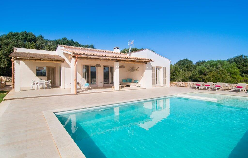 Villaen "Ses Uzines" ligger på en lille bakke og byder sine gæster velkommen som en blid brise og imponerer dem ved første øjekast. Når man stiger ud af bilen og går en tur rundt i bygningen, der dels er beklædt med natursten og dels med glat puds, glemmes den lidt ujævne tur hurtigt, når man bliver opmærksom på den opsigtsvækkende udsigt. Det store og maleriske naturlandskab vil simpelthen tage pusten fra jer! Den glatte fliseterrasse, som begynder på forsiden af huset, strækker sig til den rektangulære, 11m lange infinity-pool og tilbyder næsten sømløs udsigt over det blidt bølgende landskab bagved. Bag huset danner en stenegelund en behagelig kontrast til den maleriske udsigt og giver ejendommen en hyggelig atmosfære. Til højre for den lettilgængelige pool med integreret spabad indbyder en lille græsplæne til at slappe af eller lege i solen. De resterende ejendomme omkring huset ligger tæt på naturen. I kan føle jer godt tilpas på "verandaen" (stor overdækket terrasse) uden for stuen: en udendørs sofa og et bord lavet af træpaller er til rådighed for jeres komfort. Hvorfor ikke ligge her eller på en af liggestolene ved poolen og slappe af? Udenfor køkkenet er det dog det rigtige sted at spise. Sæt jer ved bordet og nyd typiske ø-retter - måske endda den grillede version - mens I beundrer den betagende udsigt! Ved første øjekast virker huset ret beskedent, men det afslører hurtigt sin sande karakter: en charmerende allrounder, især designmæssigt. Op til seks personer kan komfortabelt sidde ned på i alt 142 m², da det kreative design og de mange forskellige siddepladser byder på adskillige muligheder. Original indretning harmonerer med overvejende lyse farver i en omhyggelig og harmonisk kombination. Træelementer og kontrasterende turkise accenter fremmaner en karakteristisk atmosfære, der inviterer jer til at blive hængende. Værelserne er alle indrettet i ét plan, startende med et indgangsparti og en rummelig stue/spisestue med udgang til den overdækkede udendørs terrasse og poolområdet. At sidde ved pejsen er det perfekte sted at se en spændende tv-film eller blot nyde det hyggelige bål – eller begge dele sammen, hvis I har lyst. Til højre for indgangen er køkkenet - lyst, rummeligt, moderne og veludstyret med alt hvad I behøver til selvforplejning, herunder en kedel og Dolce Gusto maskine, så jeres morgenvarme drik er garanteret på terrassen! På venstre side er der tre romantisk indrettede soveværelser, hvor senge på 1,8 mx 2 m, 1,5 mx 2 m og enkeltsenge på hver 0,9 mx 2 m inviterer til en fuldstændig afslappende og behagelig nattesøvn. Af de to badeværelser er det ene udstyret med badekar og det andet med bruser; begge er bekvemt placeret ved siden af soveværelserne. Kunne I tænke jer at surfe på internettet eller holde venner eller bekendte opdateret med et par snapshots? Intet problem med WiFi-forbindelsen i boligen. Det autentiske Mallorca venter på jer, mindre end 4 km væk, i Artá. Tag en aftentur gennem de oplyste gader i denne lille by, eller besøg det farverige marked på en tirsdag. Hvis I går til San Salvador Sanctuary, vil I blive belønnet med enestående udsigt over 25 km uberørt kystlinje. En gåtur gennem "Cuevas de Artá", den største og mest imponerende drypstensgrotte på Mallorca, er også det værd. Cala Ratjada, et af øens mest populære feriesteder, byder også på en masse variation, fra en strandpromenade til caféer og natklubber til vidunderlige strande. Og for alle, der kan lide at cykle, er den 30 km lange "Via Verde", en overvejende flad cykelrute mellem Manacor og Artà, i nærheden. Denne tidligere jernbanelinje byder på en malerisk udsigt over det omkringliggende landskab med dets fåregræsgange, geder, æsler og heste samt talrige mandel-, oliven-, appelsin- og johannesbrødtræer. Vidunderligt stille og alligevel ikke "uden for alfarvej", villaen "Ses Uzines" byder på en attraktiv atmosfære. Det er beliggende i et charmerende bakket landskab, typisk for Artà-regionen, med andre landejendomme i nærheden, i et luftigt område. Den maleriske by, kun 4 km væk, byder på alt hvad I behøver til en ferie. Hvis I foretrækker noget mere livligt, ligger Cala Ratjada med sit pulserende natteliv og gode fiskerestauranter kun 20 minutters kørsel væk.