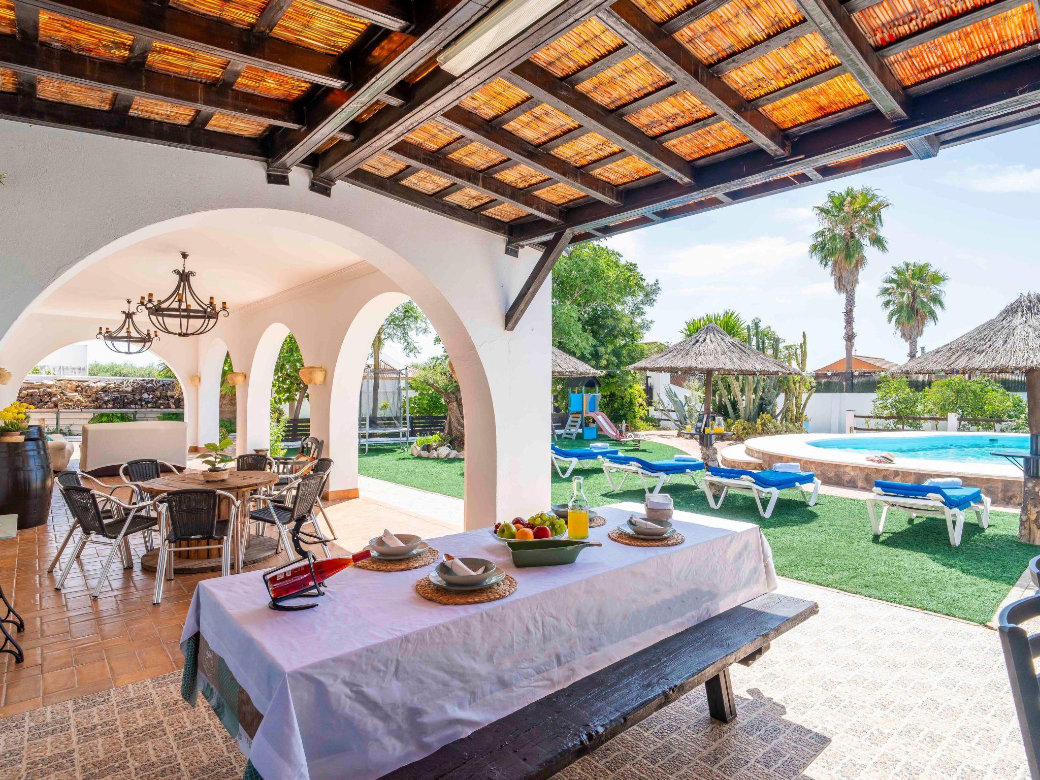 Picnic area next to the house with barbecue, dishwasher, washing machine and bar.