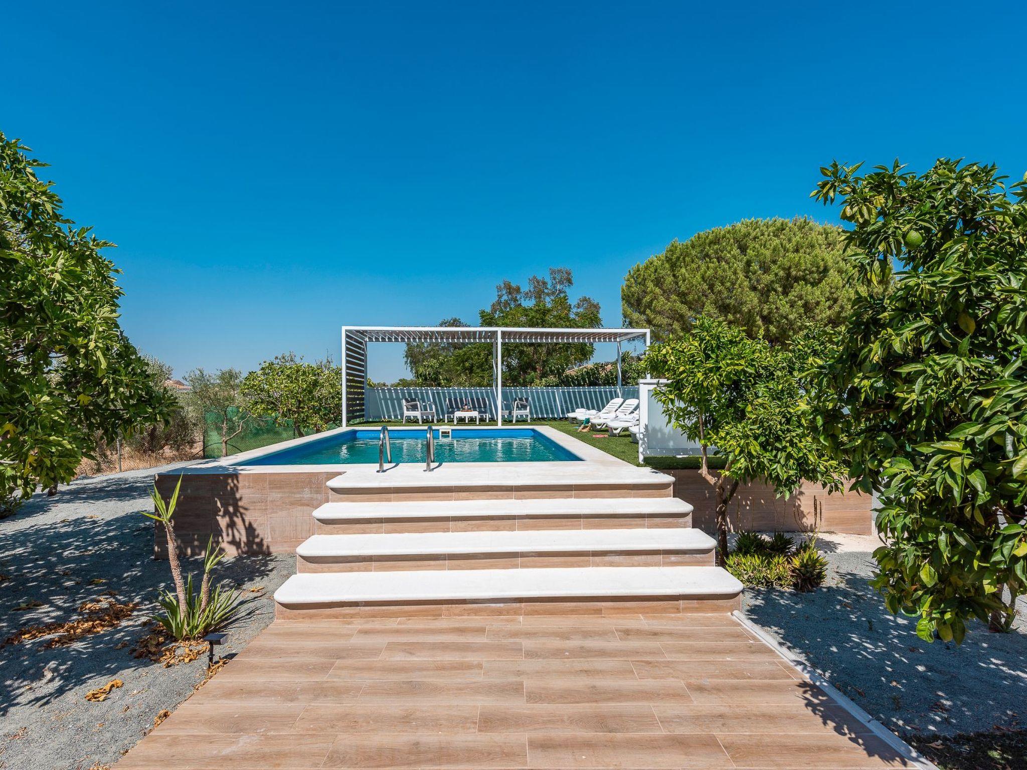 Elevated swimming pool of 6,20 x 4,30 m. and depth 1,10 to 1,45 m. with solarium area.