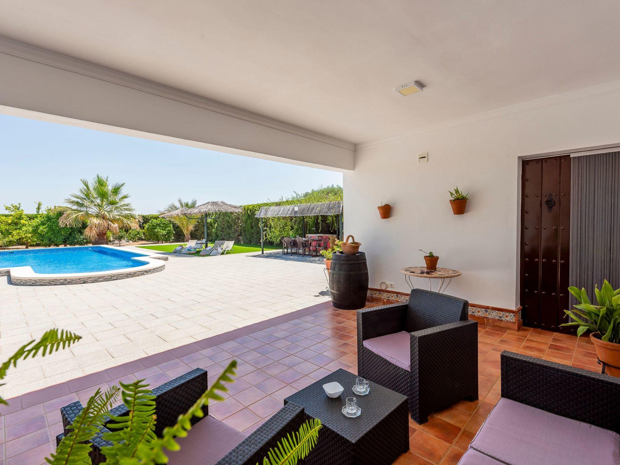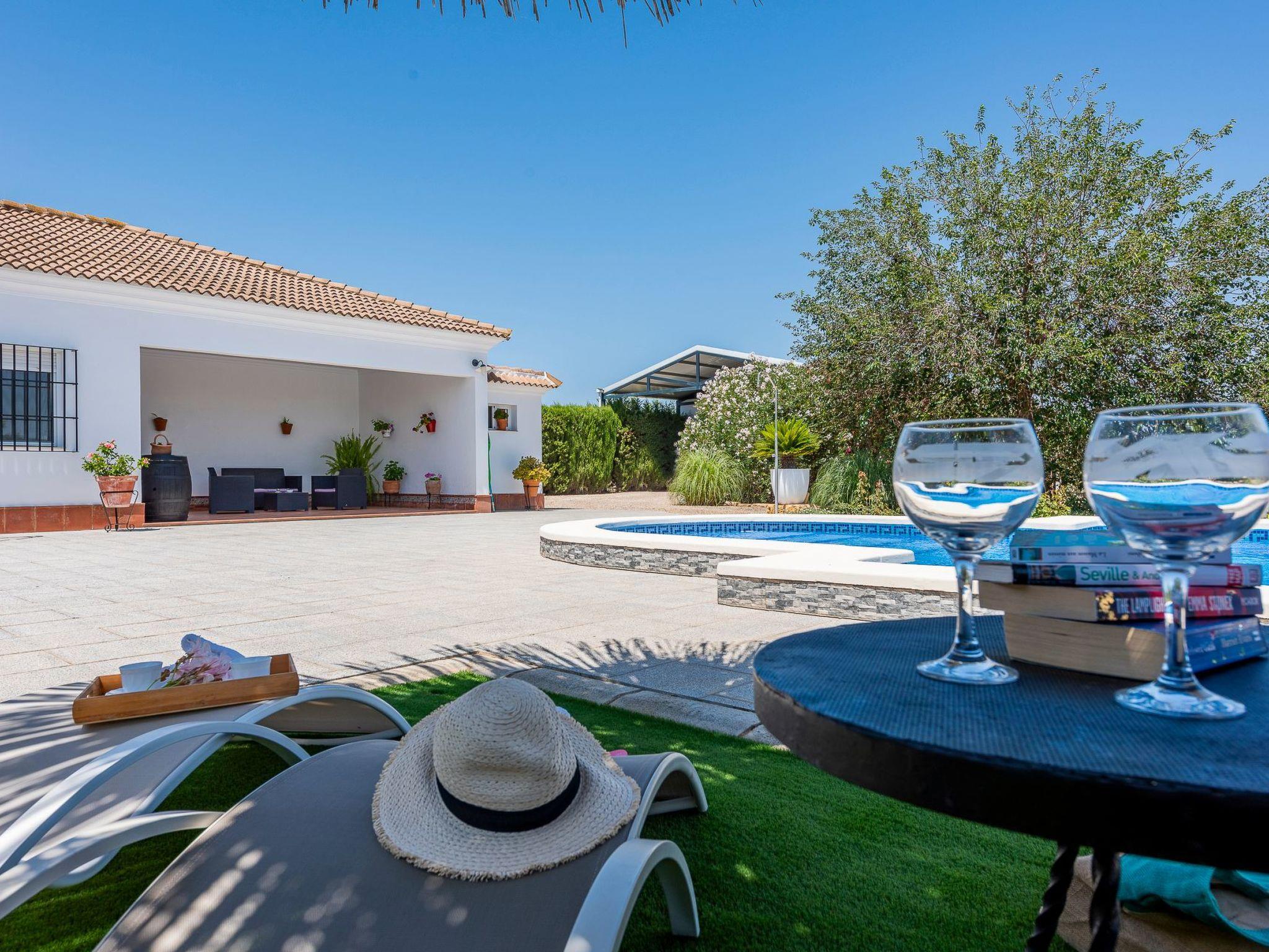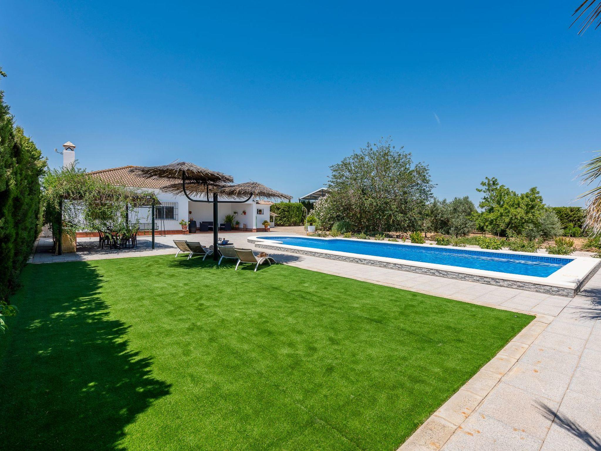 On a large plot of 2500 m, with garden area, covered parking... Ideal for visiting the region, close to the A-92 Seville-Granada motorway.