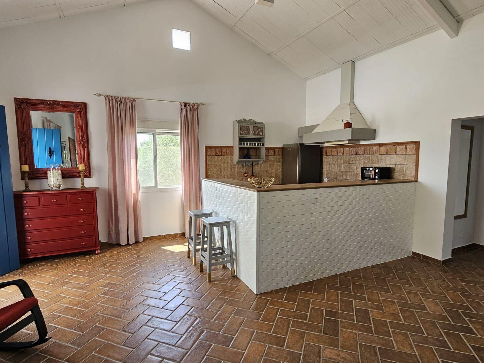 Open plan kitchen with bar. Fridge, oven, microwave, dishwasher,... and complete kitchenware.