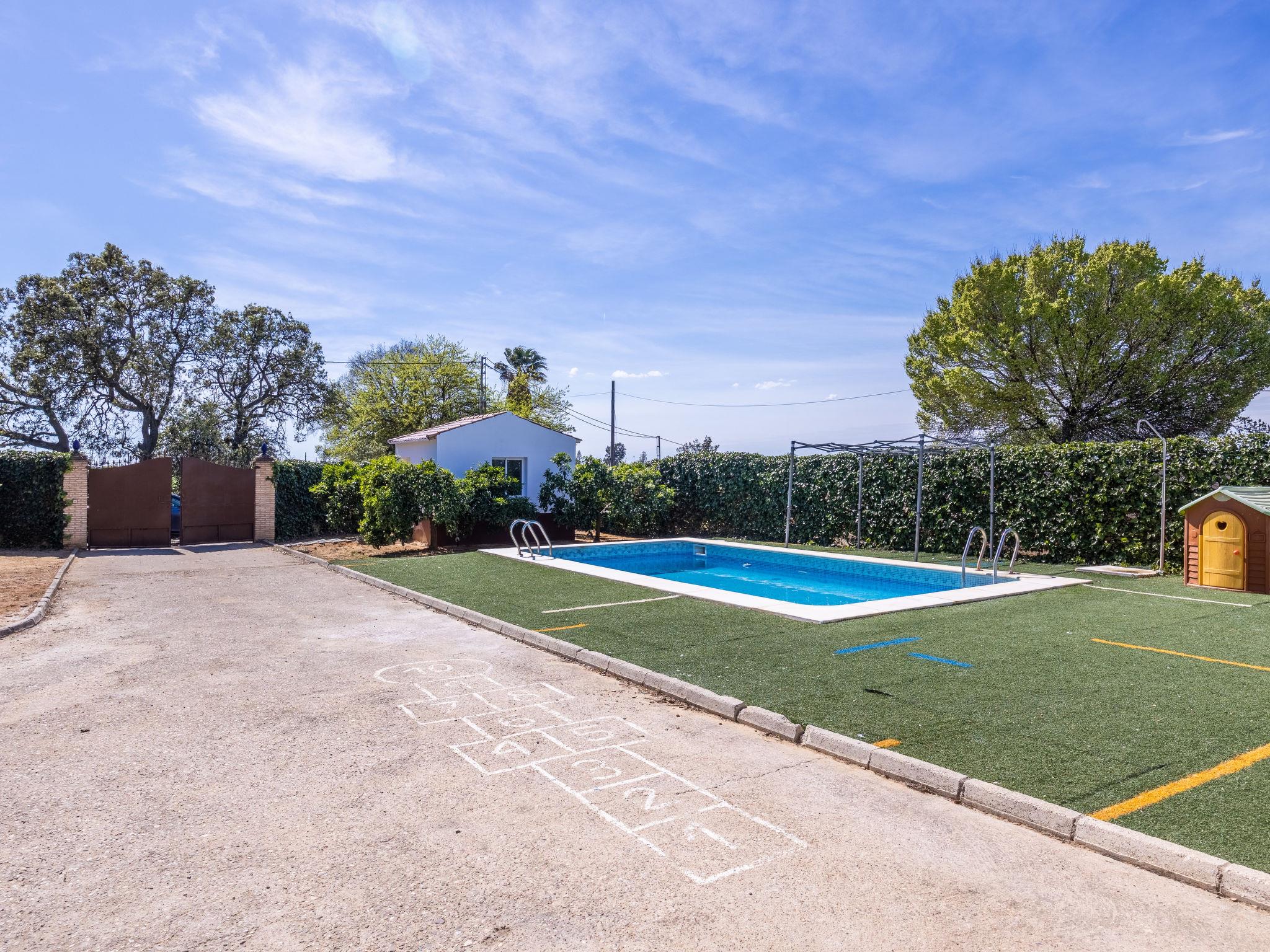 Single-family house "Rocio", 2 storeys. In a secluded, quiet, sunny position. Private: property 2'775 m2, swimming pool (8 x 4 m, depth 120 - 180 cm, seasonal availability: 01.May. - 30.Sep.). Parking at the house. Supermarket 3.5 km, restaurant 2.5 km, café 3 km, bus stop "Av Virgen Del Rocio, Olivares" 1.5 km. Nearby attractions: Sevilla 27 km. The tap water has no drinking water quality.