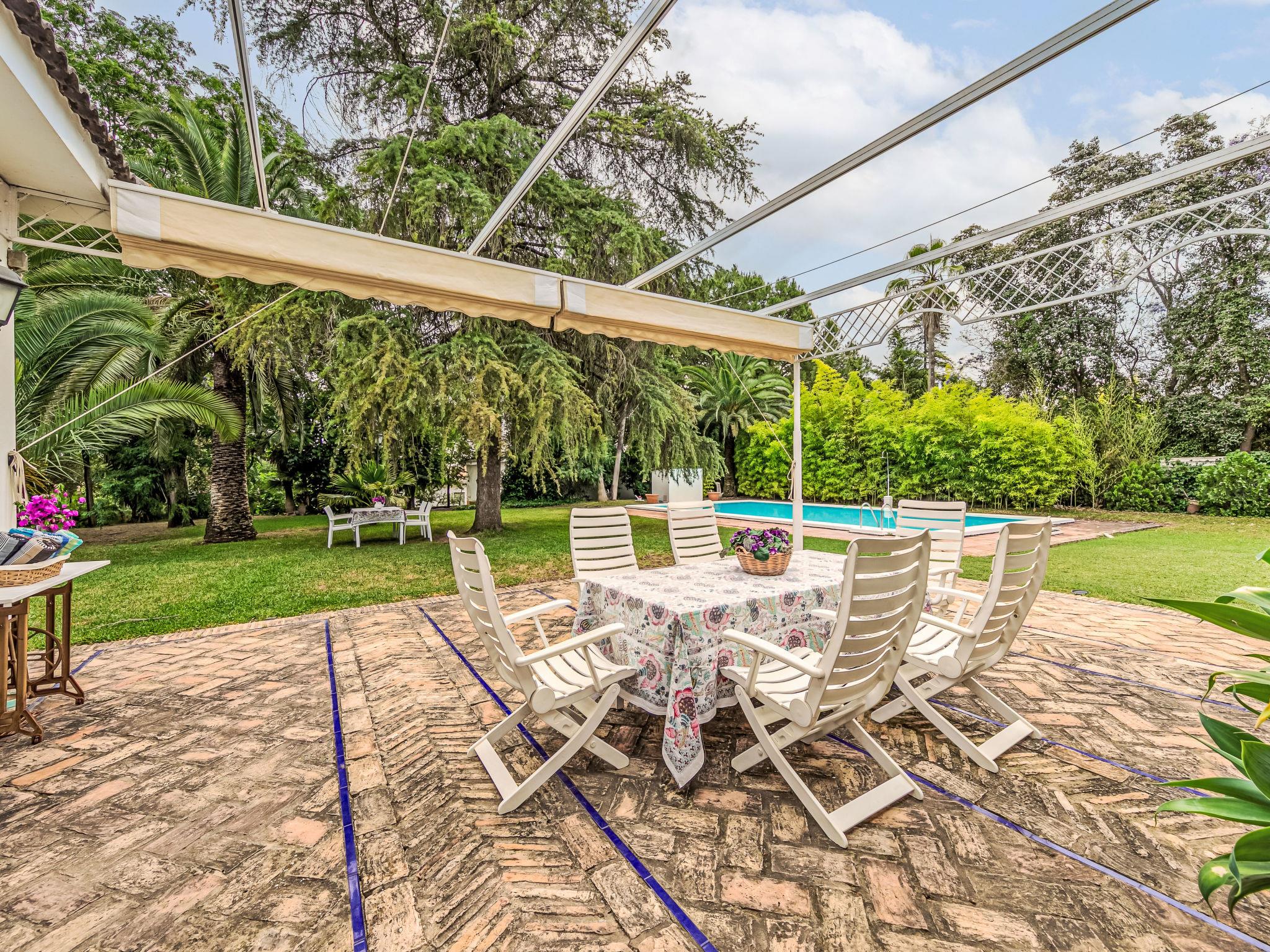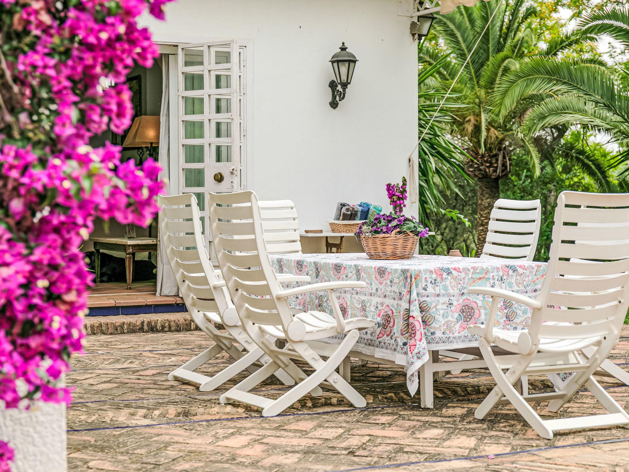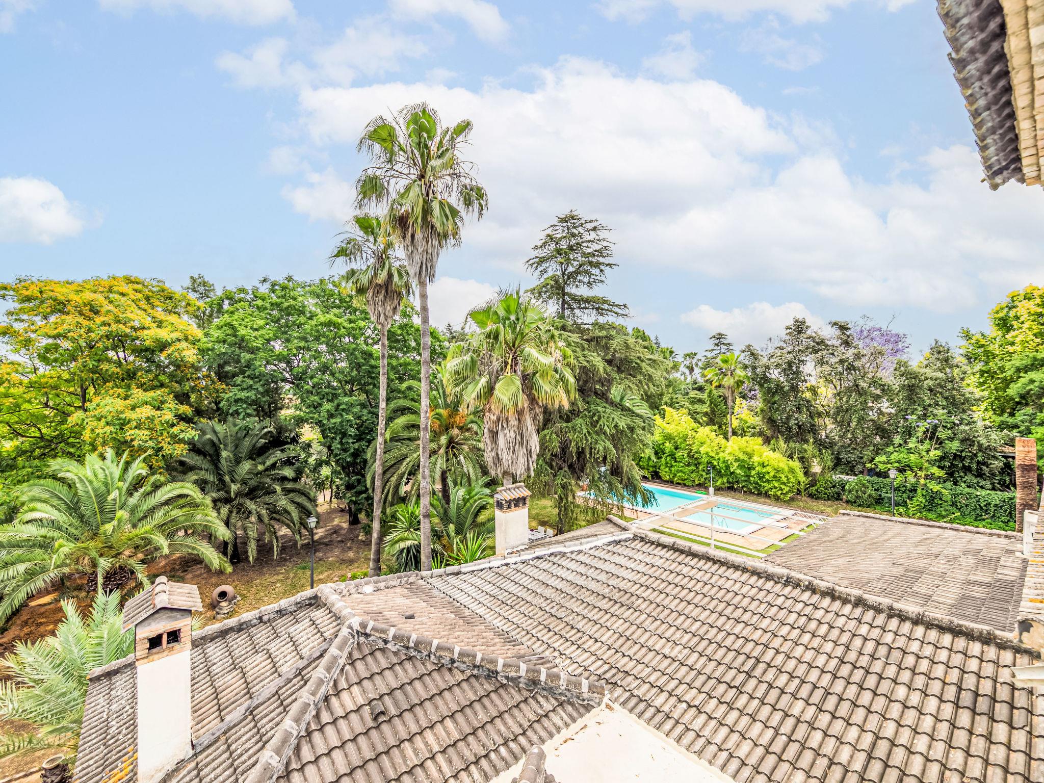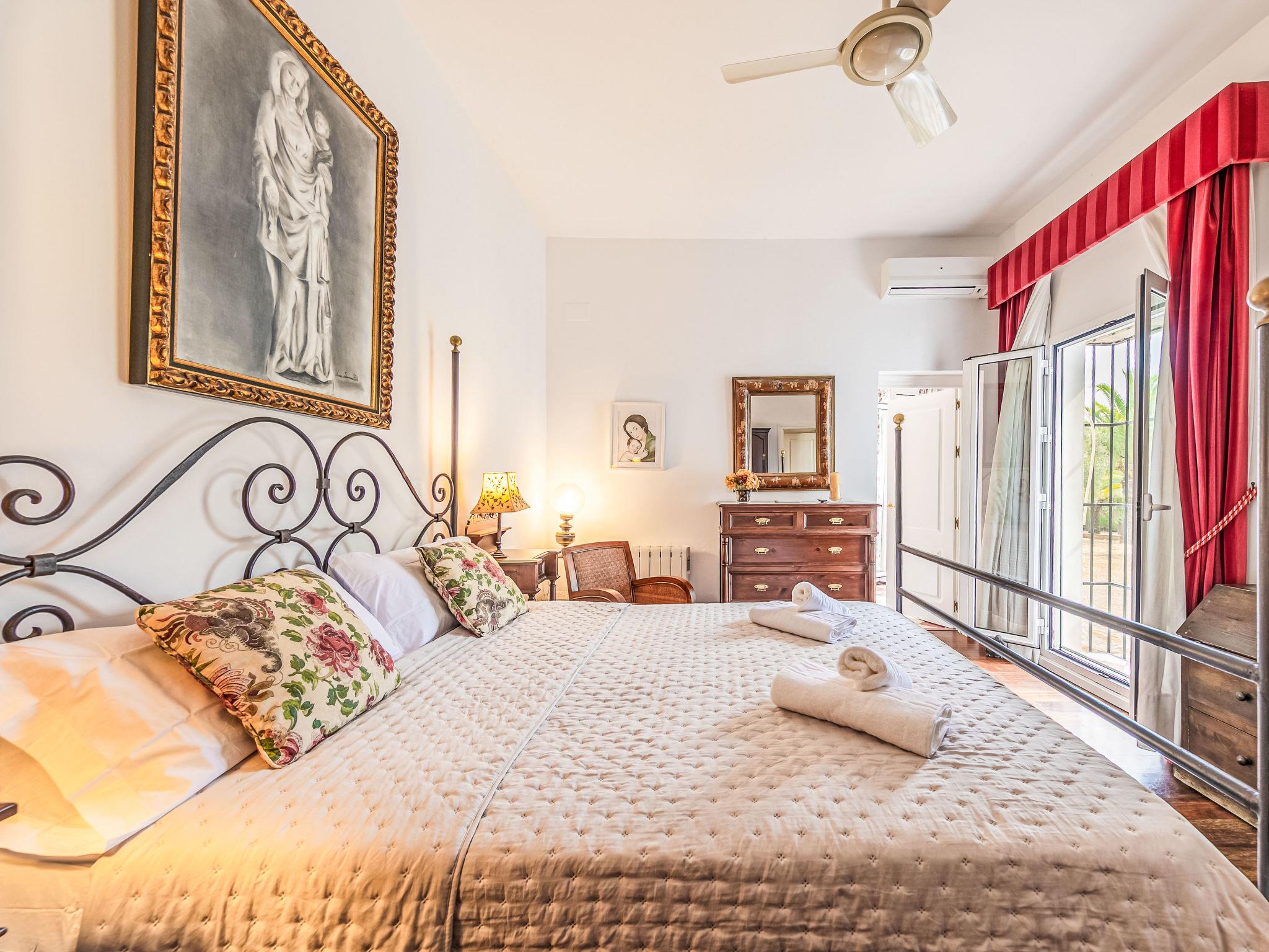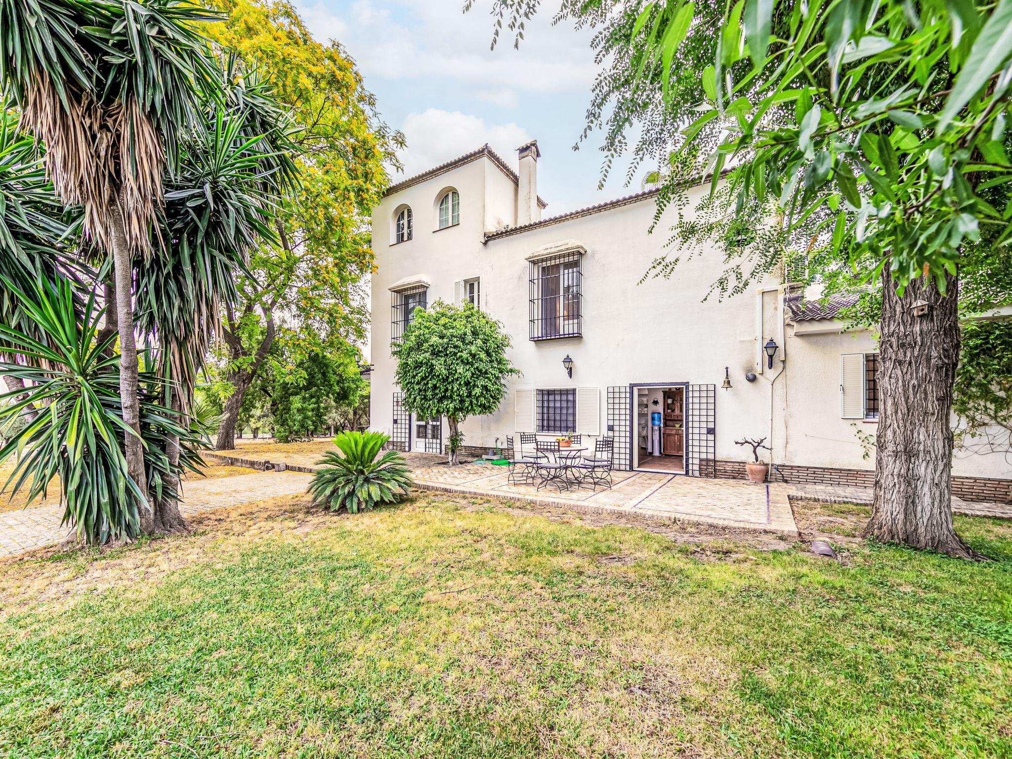 Comfortable villa "Las Codornices". On the outskirts Sanlúcar la Mayor, in a secluded, quiet, sunny position. Private: garden 9'000 m2 with lawn and trees, swimming pool (12 x 6 m, depth 170 - 185 cm, seasonal availability: 01.Jan. - 31.Dec.). Outdoor shower, pool house, parking (for 10 cars) at the house. Grocery 2 km, supermarket 2 km, restaurant 2 km, bakery 2 km, bus stop 2 km, railway station 2 km, sandy beach 60 km. Sports harbour 80 km, golf course (18 hole) 10 km, tennis 2 km. Nearby attractions: Sevilla 19 km, Aldea del Rocío 50 km. Hiking paths: Parque de Doñana 50 km, Corredor Verde del Río Guadiamar 2 km. The owner does not accept any youth groups.