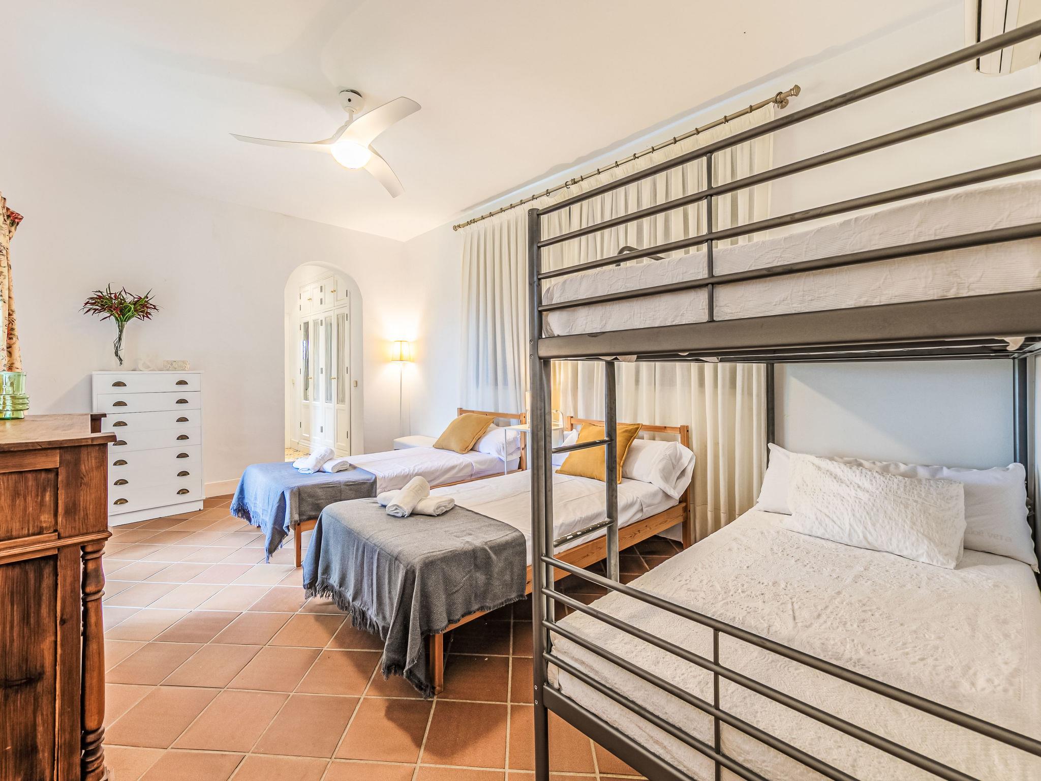 "Las Codornices", 7-room villa 325 m2 on 3 levels. Practical and comfortable furnishings: large living/dining room with open-hearth fireplace, digital TV, flat screen, radio, CD-player and DVD. 2 rooms, each room with 1 french bed (150 cm, length 190 cm), bath/WC. 2 rooms, each room with 2 beds (90 cm, length 190 cm). 1 room with 1 bed (90 cm, length 190 cm). Large kitchen (oven, dishwasher, 4 ceramic glass hob hotplates, toaster, kettle, microwave, freezer, electric coffee machine). Shower/WC. Upper floor: 1 room with 1 french bed (150 cm, length 190 cm). 1 room with 2 beds (90 cm, length 190 cm), 1 x 2 bunk beds (90 cm, length 190 cm). Bath/WC. 2nd upper floor: Bay window. Garden. Barbecue, deck chairs. Facilities: washing machine, iron, children's high chair, baby cot for up to 2 year olds, hair dryer. Internet (WiFi, free). Please note: suitable for families. Non-smoking house. Maximum 1 pet/ dog allowed. VTAR/SE/00682