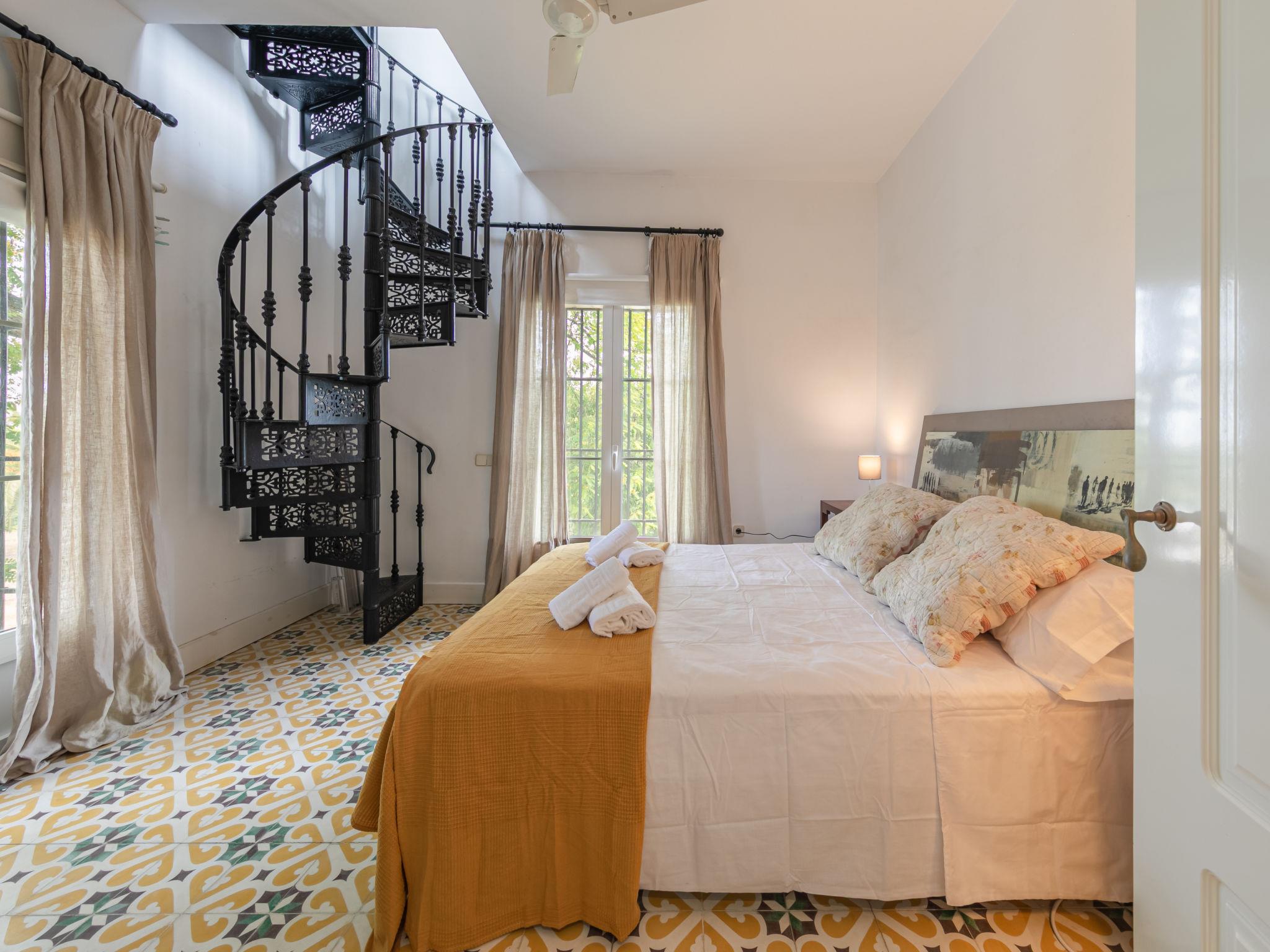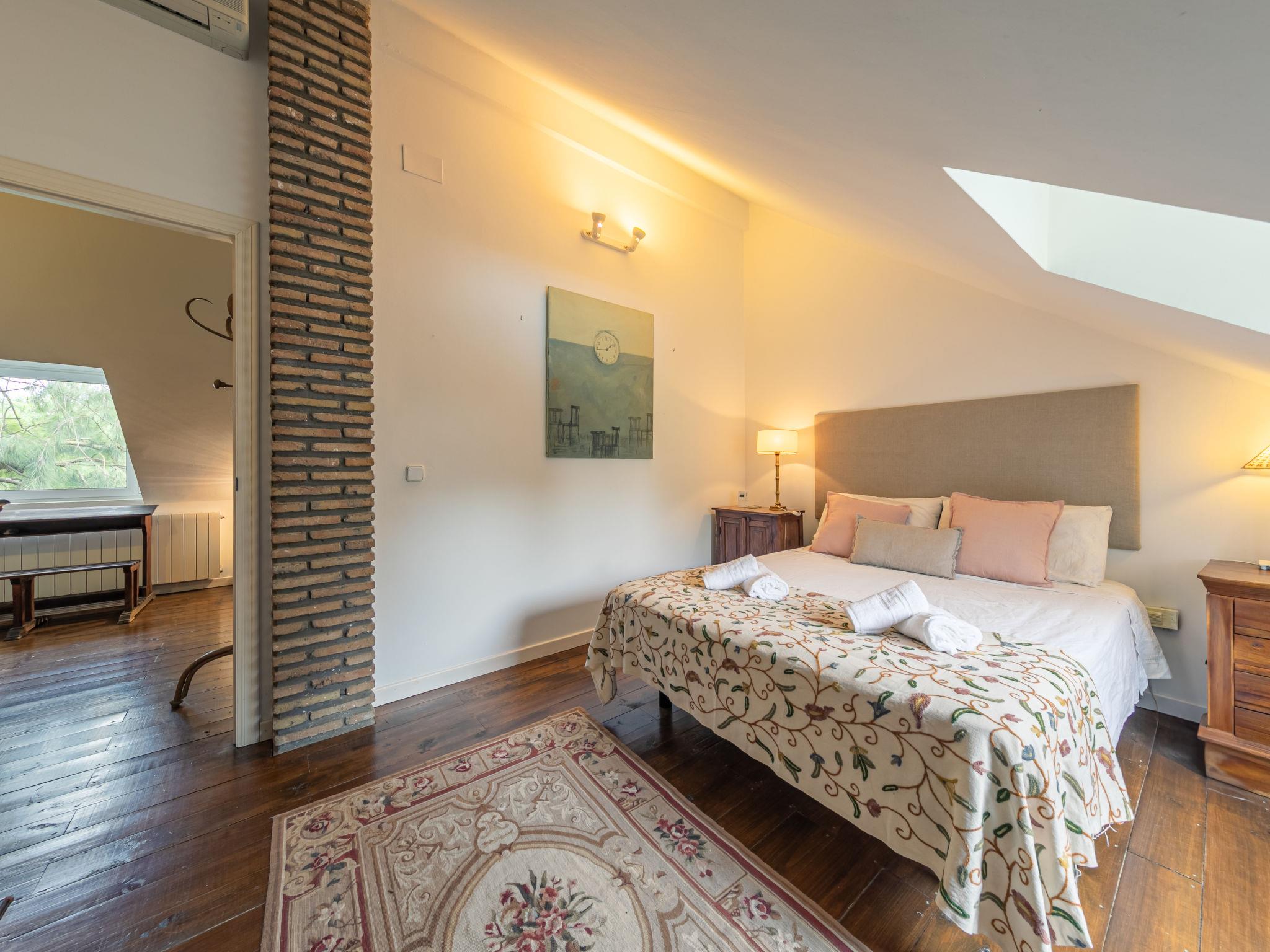 "Las Codornices", 11-room villa 500 m2 on 3 levels. Practical and comfortable furnishings: large living/dining room with open-hearth fireplace, digital TV, flat screen, radio, CD-player and DVD. 2 rooms, each room with 1 french bed (150 cm, length 190 cm), bath/WC. 2 rooms, each room with 2 beds (90 cm, length 190 cm). 1 room with 1 bed (90 cm, length 190 cm). Large kitchen (oven, dishwasher, 4 ceramic glass hob hotplates, toaster, kettle, microwave, freezer, electric coffee machine). Shower/WC. Upper floor: 1 room with 1 french bed (150 cm, length 190 cm). 1 room with 2 beds (90 cm, length 190 cm), 1 x 2 bunk beds (90 cm, length 190 cm). Bath/WC. 2nd upper floor: Bay window. 3nd upper floor: large living room with library, digital TV and flat screen. Kitchen (oven, dishwasher, 4 ceramic glass hob hotplates, kettle, microwave, freezer, electric coffee machine). Bath/bidet/WC. Underfloor heating. Top floor: 1 room with 1 french bed (150 cm, length 190 cm). 1 room with 2 beds (90 cm, length 200 cm), 1 double sofabed. Bath/bidet/WC. Air-conditioning, forced-air heating. Garden. Barbecue, deck chairs. Facilities: washing machine, iron, children's high chair, baby cot for up to 2 year olds, hair dryer. Internet (WiFi, free). Please note: suitable for families. Non-smoking house. Maximum 1 pet/ dog allowed. No internal connecting door between the separated properties. VTAR/SE/00682