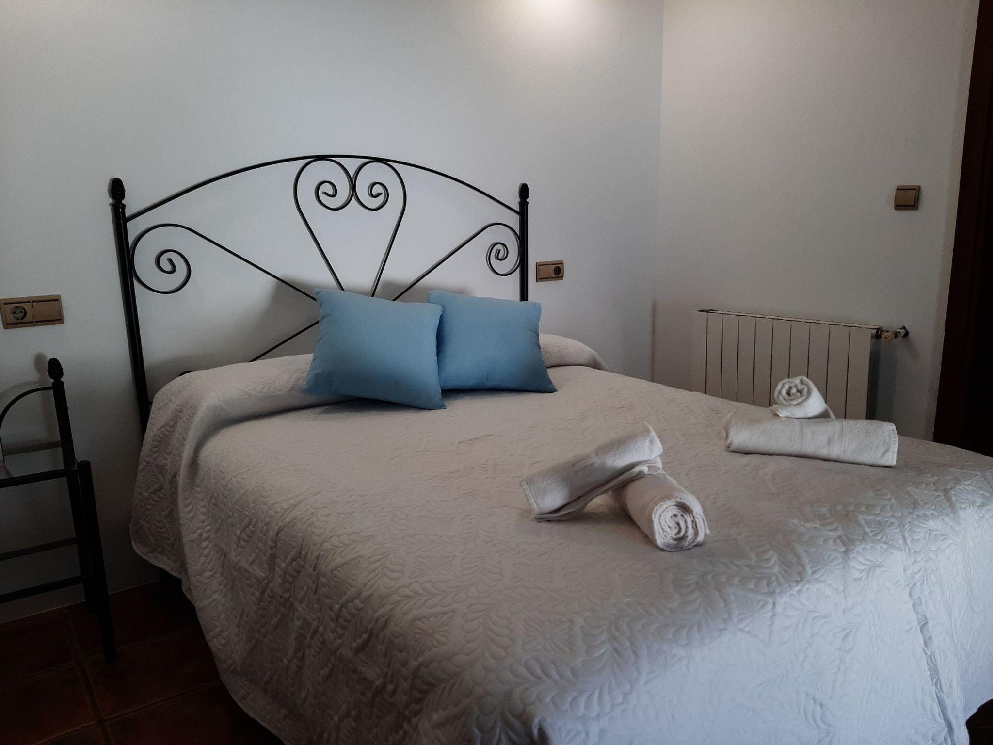 Inside, El Acebuchal is spread over two cosy floors. The ground floor houses a spacious living and dining room adorned with a warm fireplace and comfortable sofas, ideal for relaxing after a day's sightseeing. The kitchen, a spectacle of modernity and functionality, is equipped with a 4-ring ceramic hob, oven, microwave, dishwasher and all the necessary utensils to make you feel at home. Going upstairs, you will find 4 cosy bedrooms, two of them with double beds, the master bedroom with a double bed, an extra 90 cm bed and a bathroom with shower, and another bedroom with two 90 cm beds, all of them close to a complete bathroom with shower and bathtub. In addition, to guarantee comfort in any season, the house has central heating powered by hot water heated by pellets and air conditioning in the upper rooms and in the living room, without forgetting Wifi access for guests.