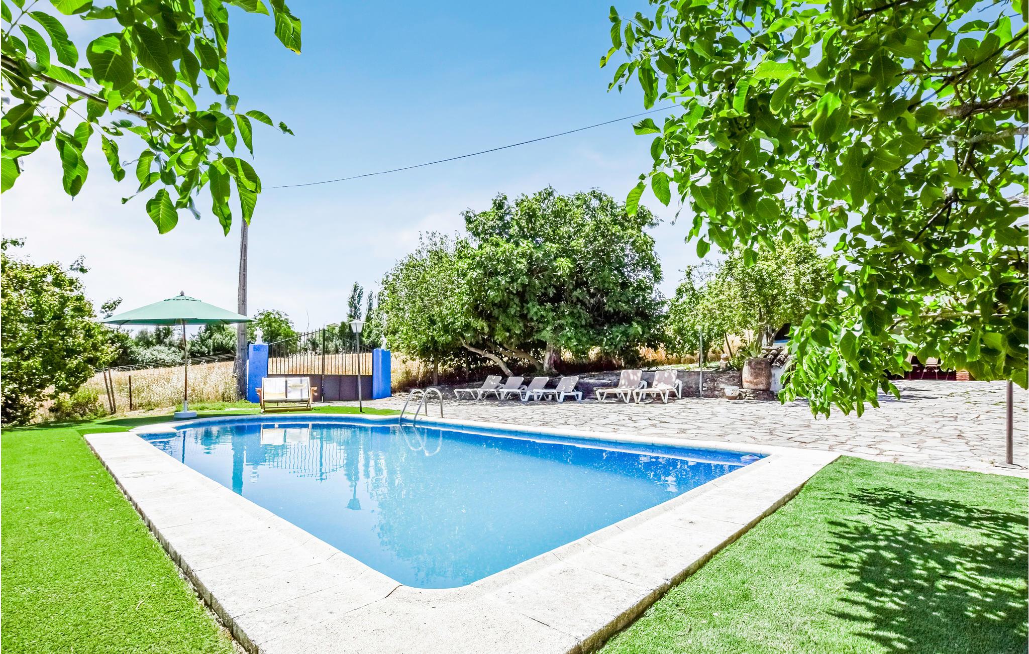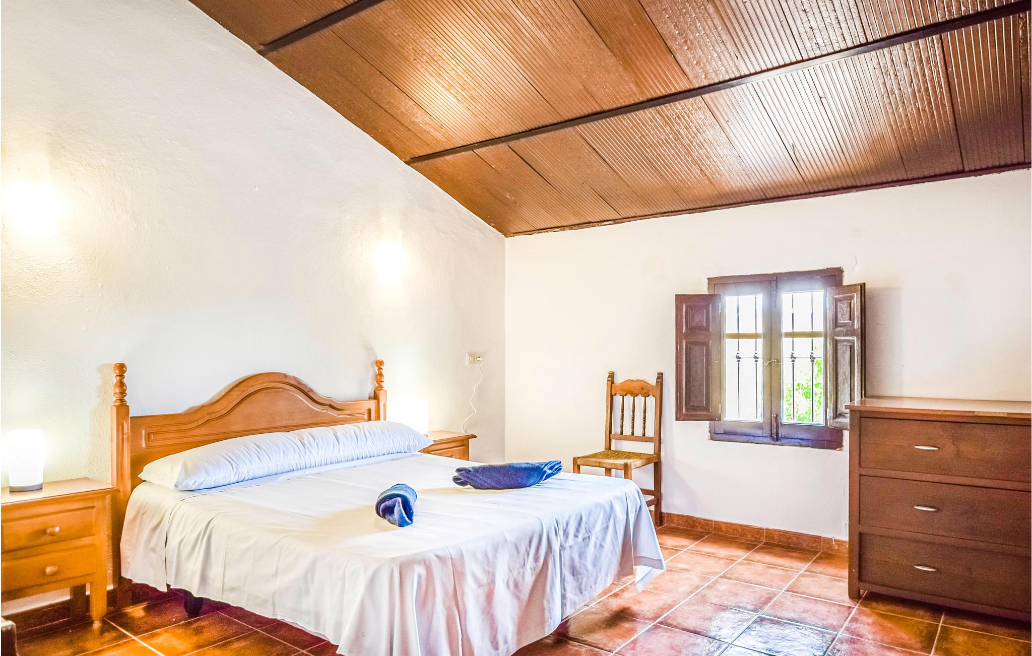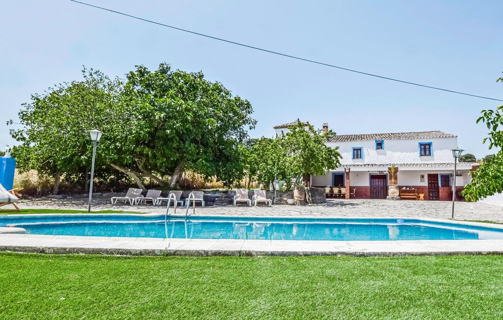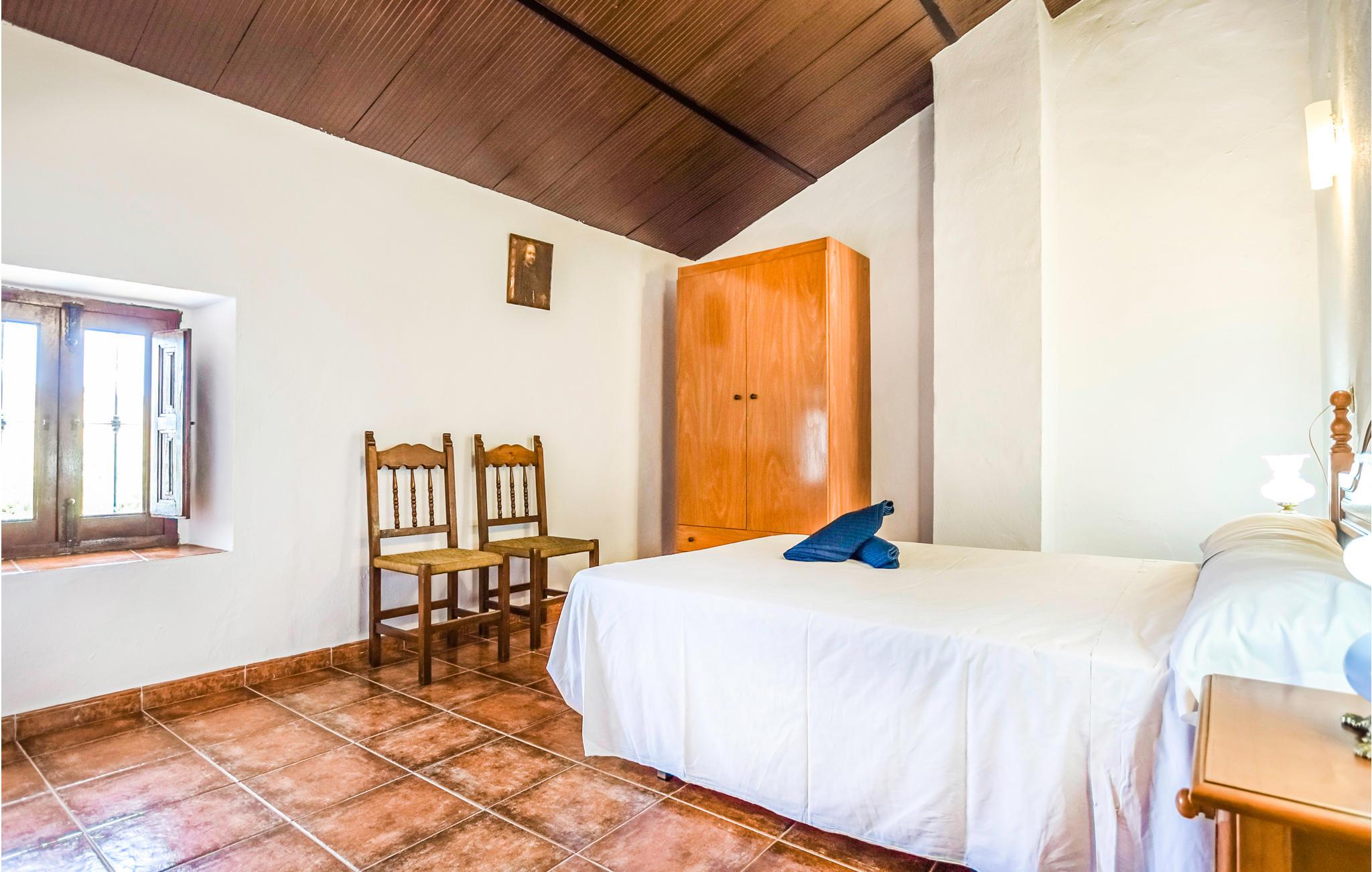 Føl jer hjemme i dette feriehus med fliser, som er prydet med runde buer, der fungerer som passager i opholdsrummene. I stuen er der komfortable sofaer og et tv, hvor I kan tilbringe afslappende timer med jeres selskab. Den rummelige spiseplads byder på et stort spisebord med rustikke træstole og en pejs, der kan skabe en hyggelig varme. De rustikke værelser byder på god plads, højt til loftet og enkle møbler. Udenfor kan I læne jer tilbage på verandaen, grille sammen eller slikke sol på liggestolene, mens den udendørs pool inviterer til forfriskende dukkerter i sommervarmen.