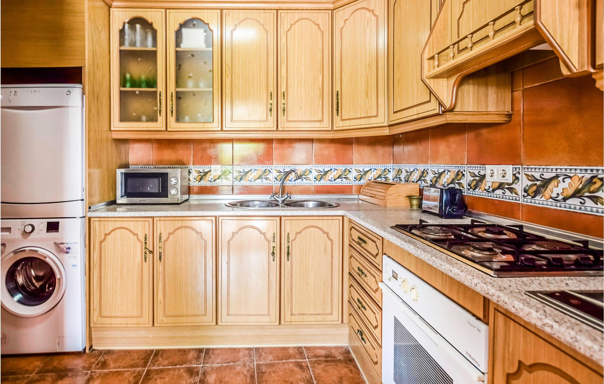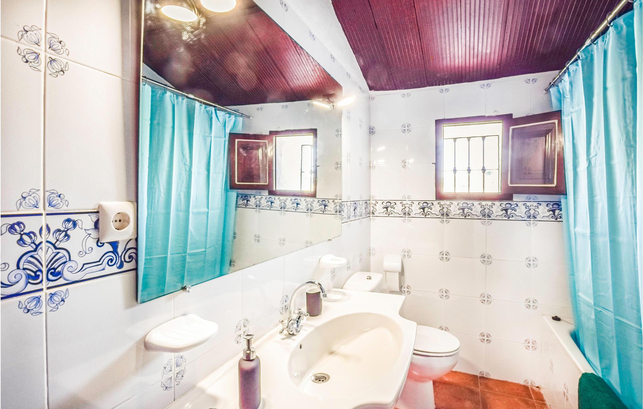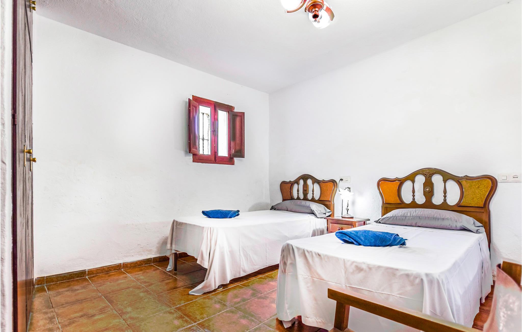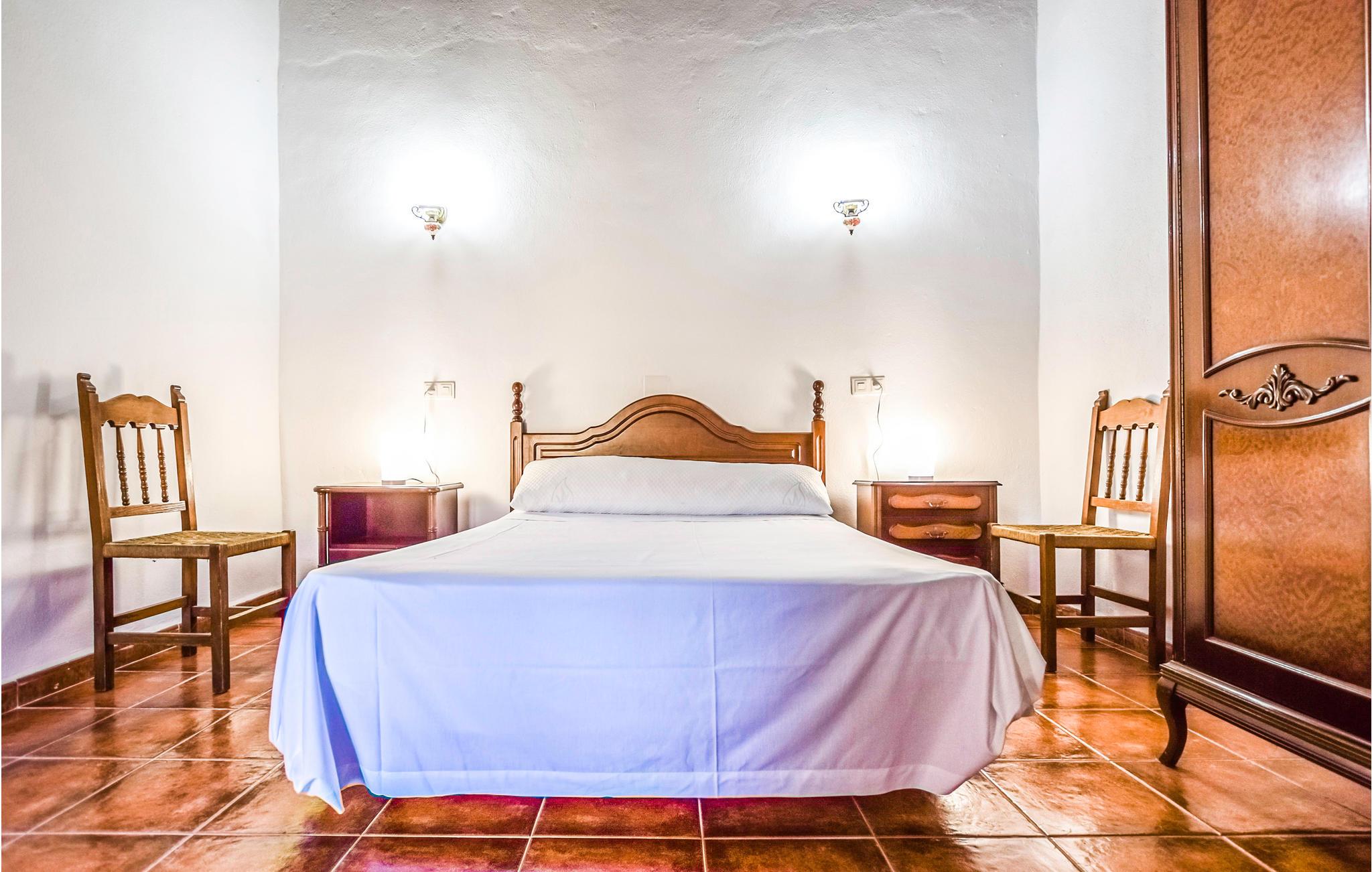 Føl jer hjemme i dette feriehus med fliser, som er prydet med runde buer, der fungerer som passager i opholdsrummene. I stuen er der komfortable sofaer og et tv, hvor I kan tilbringe afslappende timer med jeres selskab. Den rummelige spiseplads byder på et stort spisebord med rustikke træstole og en pejs, der kan skabe en hyggelig varme. De rustikke værelser byder på god plads, højt til loftet og enkle møbler. Udenfor kan I læne jer tilbage på verandaen, grille sammen eller slikke sol på liggestolene, mens den udendørs pool inviterer til forfriskende dukkerter i sommervarmen.