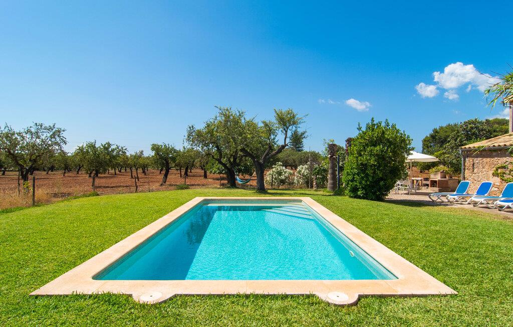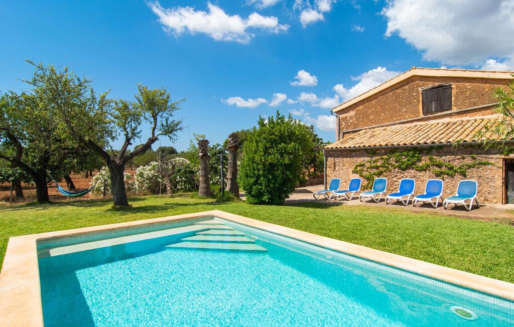 Med det rustikt udseende sommerhus “Son Ametller” finder I et mallorcansk bondehus, der er særligt attraktivt på grund af spændingen mellem land og by samt gammelt og nyt. Den enorme ejendom alene med sin egen frugthave (deraf det smukke navn, som oversættes som "mandel") virker drømmende og stille. Ikke desto mindre ligger Mallorcas hovedstad Palma kun 8 km væk. jeres naboer er bare jeres dyrekammerater: Fire høns og en kanin, der bor ved siden af hinanden på ejendommen. Slap af på de otte liggestole eller i hængekøjen og forkæl jer selv med en behagelig afkøling nu og da i den rummelige saltvandspool med komfortabel hjørneindgang. Ferieoplevelsen kan foregå udenfor (og det tillader de ofte milde vinterdage udmærket), fordi det rustikke, overdækkede udendørsområde er skyggefuldt og beskyttet. Lige ved siden af er der et torv med en muret grill og et ekstra caféensemble. Opholds- og spiseområdet, i skyggen af en tello, inviterer jer til at slappe af. Maden kan nemt transporteres udenfor fra det fuldt udstyrede køkken, da det hyggelige spisekøkken med komfortable sofaer foran pejsen har direkte udgang til terrassen. Samspillet mellem antikke møbler og hygge er også typisk mallorcansk her, hvilket ikke mindst skabes af den ekstra pejsestue. Høje rum med synlige trælofter og andre naturmaterialer sikrer den følelse af velvære par excellence, som man kunne håbe på i et sommerhus af denne kvalitet. Familier er velkomne i denne indbydende bondegård, som er behageligt klimatiseret om sommeren og desuden opvarmet med centralvarme om vinteren. Der er to soveværelser på hver etage. De er hver især suppleret med moderne badeværelser med bruseniche, hvor det rummelige badeværelse med fritlagte stenbrud på øverste etage perfekt afspejler stuehusets atmosfære. "Son Ametller" står for en kort køretur fra lufthavnen til feriehuset, altså en afslappet ferie på landet nær Palma - hvilken kombination kunne være bedre? Det rustikke bondehus "Son Ametller" imponerer med sin panoramiske beliggenhed mellem mandeltræer og den landlige middelhavsatmosfære på den vestlige del af øen. Samtidig kan I nyde jeres ferie uden larm fra landevejene, der fører til øens hovedstad og hurtigt når Palma, kun 8 km væk. Strandelskere vil få noget for pengene og kan nå de smukke strande på vestkysten på cirka 20 minutter.