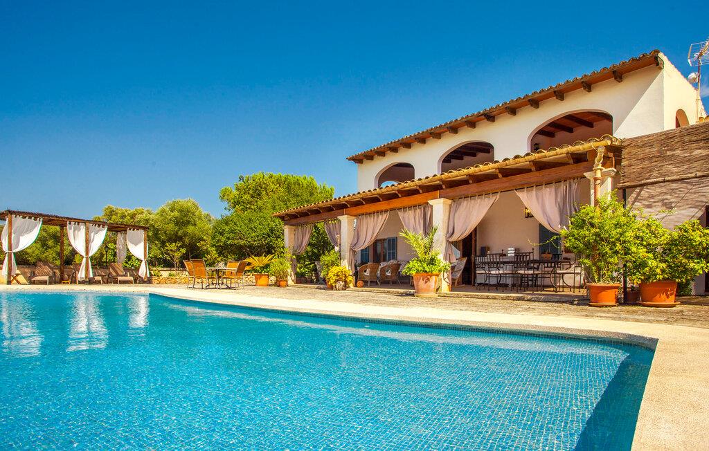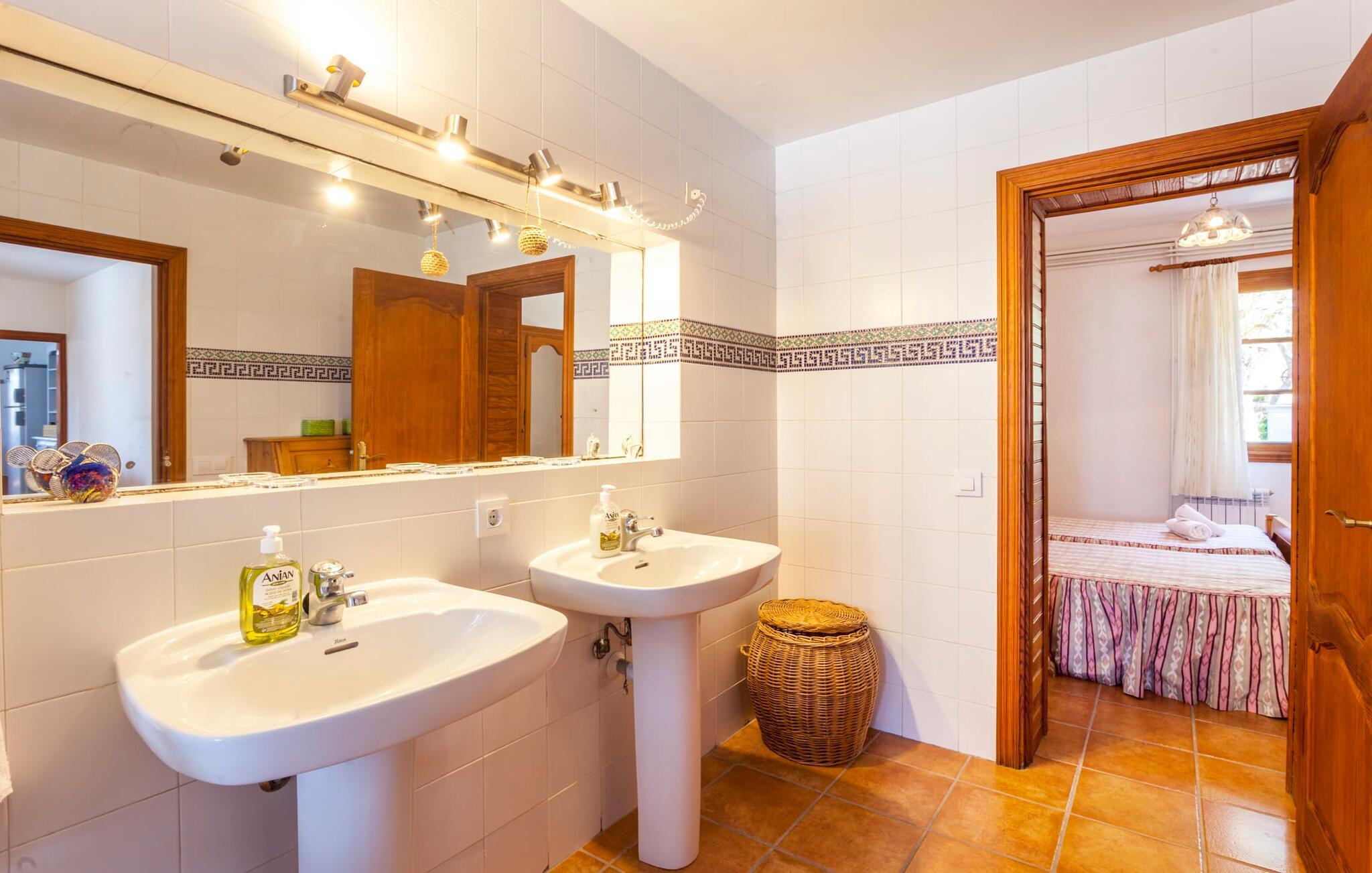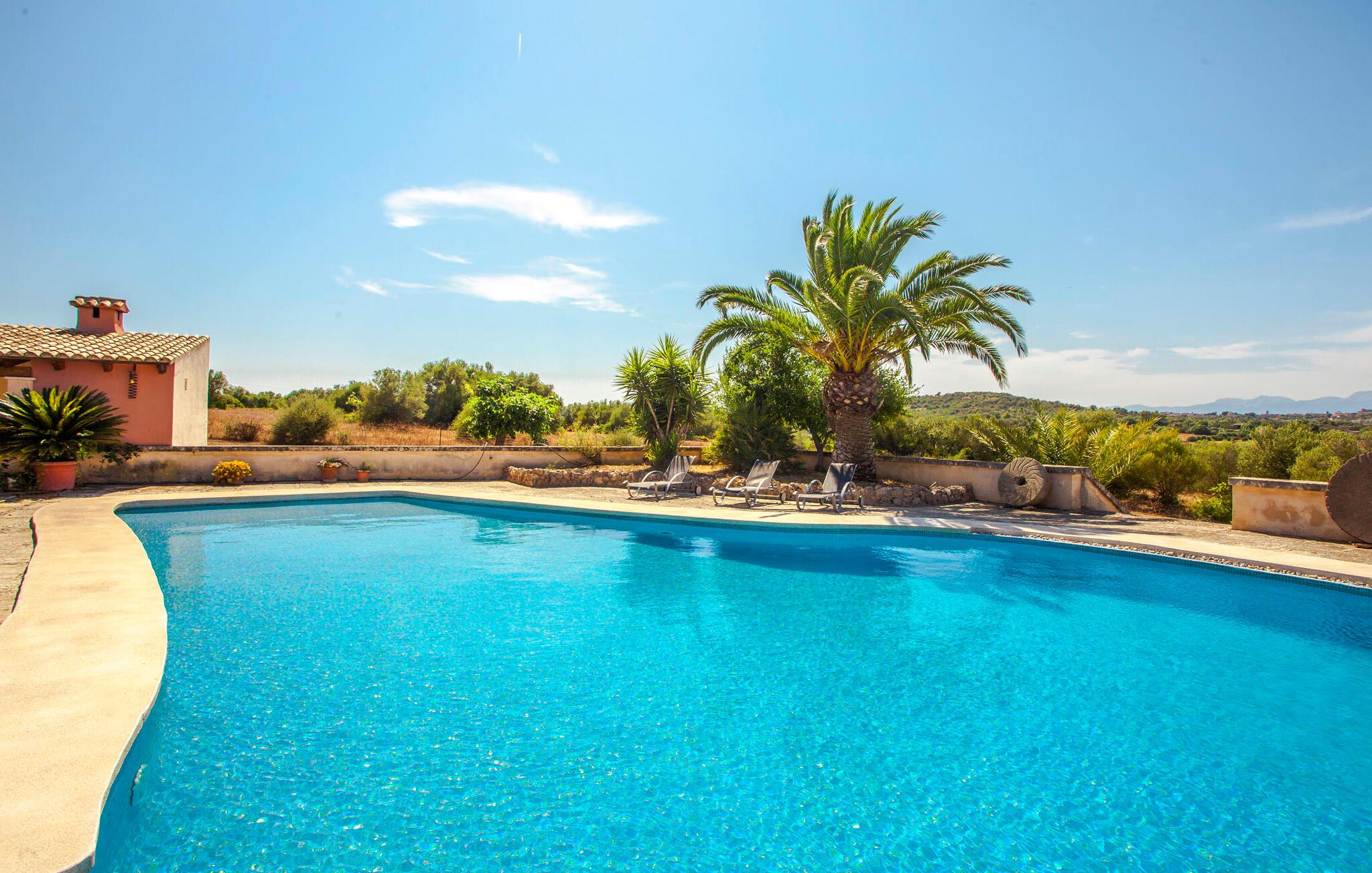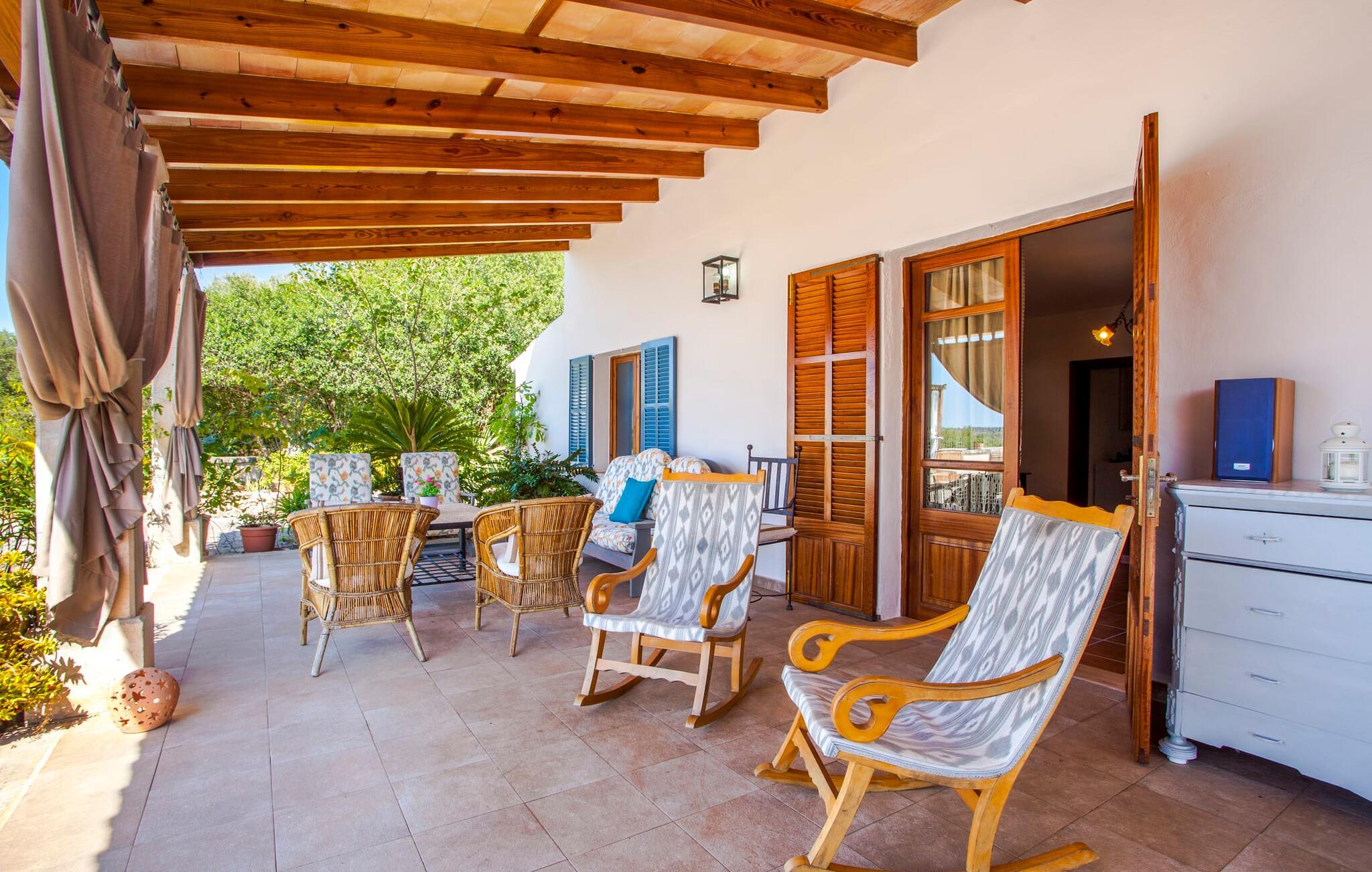 En villaferie byder på den perfekte pause fra byens stress og jag - især når beliggenheden er så tæt på naturen, som det er tilfældet med denne smukke ejendom: Ejendommen til villaen "Son Bachs" er omgivet af den landlige middelhavssletten "Pla de Mallorca" , som I kan lade blikket vandre over. Den smukt buede pool er stor nok til at tilbyde selv ambitiøse svømmere en vidunderlig forfriskning på en solskinsdag. Bagefter kan I tage en pause på en af liggestolene - enten i ly af en palme, der emmer af tropisk stemning, eller under den skyggefulde pergola. Haven kombinerer forskellige kvaliteter, blandt andet et vildt romantisk præg, mens sidde- og loungeområdet minder om en velholdt park. Takket være bungalowen, som har et komfortabelt udekøkken med indbygget grill, kan drømmen om en afslappet grillfest realiseres på ingen tid. Der er et spisebord lige ved poolen, et andet på den overdækkede veranda, som også har et behageligt opholdsområde og en gyngestol. Den overdækkede terrasse, som er tilgængelig fra øverste etage, inviterer jer til at slappe af i komfort. Takket være de store vinduespartier er huset i sig selv oversvømmet af lys, og den muntre atmosfære afspejles også i møblernes farver: lyse trætoner er de fremherskende farver her, hvilket gør stuen til en hyggelig atmosfære, for eksempel til afslappende timer med at se på. TV om aftenen ved den knitrende pejs. Udover en spisestue med et stort spisebord, byder et værelse ved siden af det veludstyrede køkken med en luge også et godt sted at spise. Det ene af husets to badeværelser kan tilgås fra både spisestue og soveværelse i stueetagen. De to andre soveværelser - det ene med dobbeltseng, det andet med to enkeltsenge - er placeret på øverste etage. På vejen dertil fører trappen forbi et walk-in-closet, hvor I kan gemme indkøbene af jeres indkøbsture. Et delvist åbent område foran den overdækkede terrasse giver ekstra plads, hvis I vil starte jeres dag med for eksempel en yoga-session. Den attraktive indretning – som et badekar i et af badeværelserne – sikrer, at I hurtigt vil føle jer hjemme. Denne del af øen er præget af oliven- og mandeltræer. I kan tage på skønne ture ud i naturen til fods eller på cykel. I Ariany, kun halvanden kilometer væk, venter en uberørt landsbyidyl på jer. Her finder I også et supermarked, en bank og et apotek, så I ikke behøver at gå glip af komforten ved byinfrastruktur. Cirka 10 km væk kan I nå den historiske by Sineu via en landevej, som kan høres på ejendommen afhængigt af vindretningen. Snoede gader inviterer jer til at gå en tur gennem de imponerende palæer og derefter nyde indtrykkene over en kop kaffe på Fossar Plaza. Ved Can Picafort, 16 km væk, kan I slå jer ned og nyde en afslappende dag på stranden. Hvis I er interesseret i autentisk ø-liv, vil I føle jer hjemme i villaen "Son Bachs": omgivet af grønne farver, er I langt væk fra turistcentrene. Og I har den perfekte beliggenhed lige ved siden af de omkringliggende bølgende bakker til at udforske den nordlige og østlige del af øen, for eksempel Alcúdia-bugten med dens lange sandstrand. For shopping eller gastronomiske udflugter ligger byen Sineu kun 10 km væk.