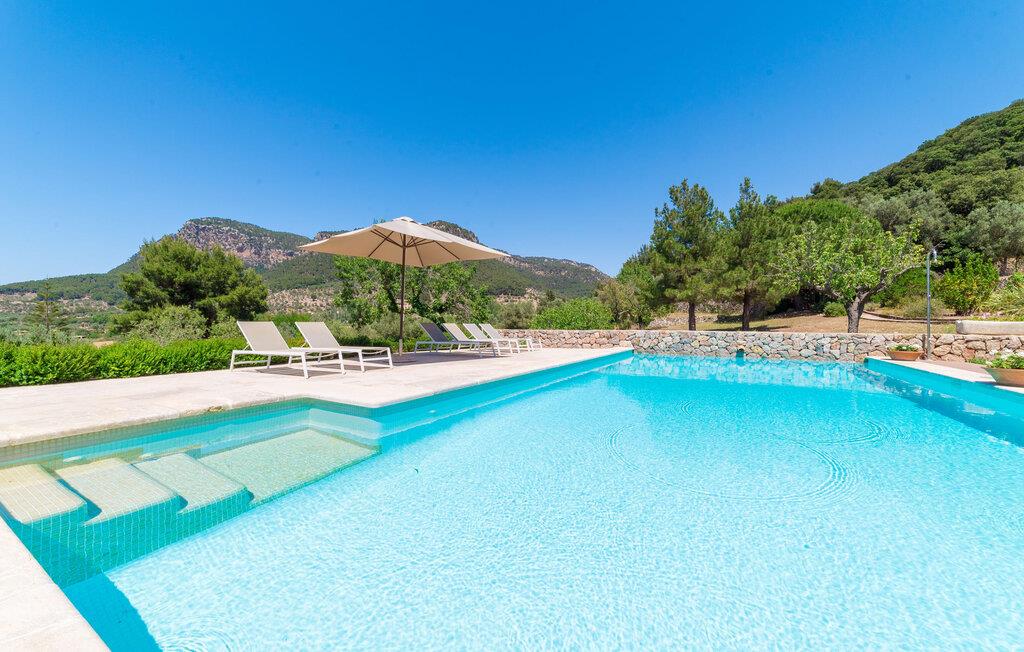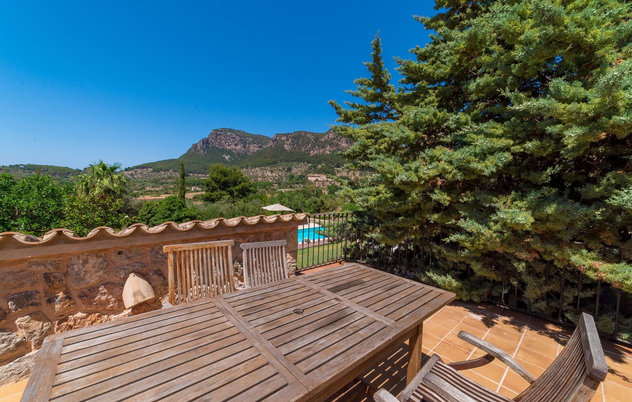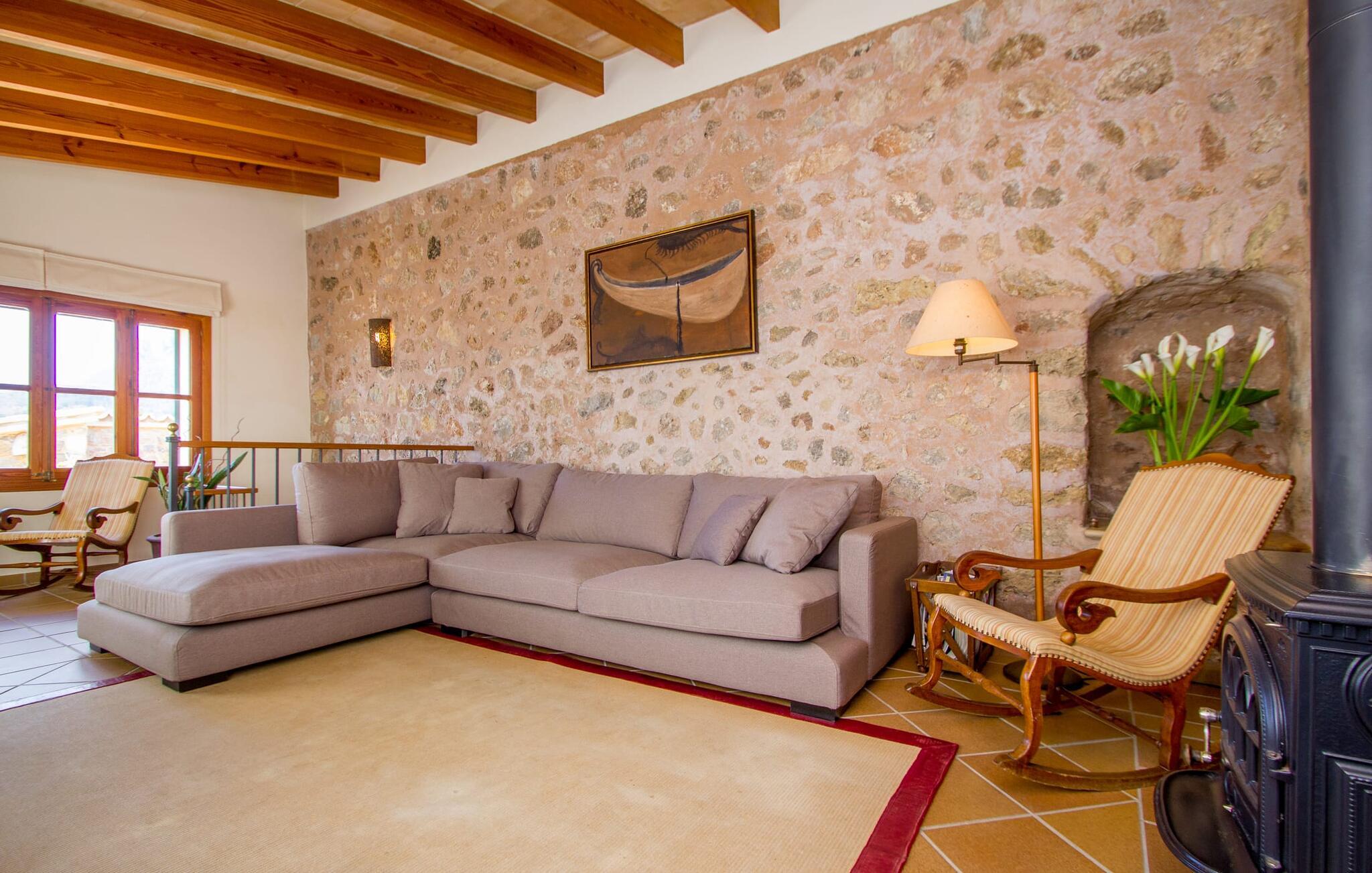 Denne ejendom er et must for alle, der værdsætter en rolig og eksklusiv atmosfære på ferien. Villaen “Son Beltran” opfylder begge krav på en særdeles tilfredsstillende måde. Den enorme ejendom på ikke mindre end 15.000 m² inviterer gæster til at blive hængende og slappe af, som de ønsker. Den parklignende atmosfære på denne ejendom forstærkes af store græsplæner, luftige pladser med naturlig skygge under storslåede træer, blomsterbede, stier og små vægge. I vil straks føle jer hjemme her. Havens højdepunkt er naturligvis den smukke pool, hvor I kan svømme længder over en længde på 11 m. Poolen er meget let tilgængelig via trapper. Den udendørs bruser, der er installeret lige ved siden af poolen, giver jer mulighed for at tage et hurtigt, forfriskende brusebad, hvorefter I kan finde jer tilpas på en af de komfortable liggestole under middelhavssolen og måske slappe af for en stund. Har I brug for beskyttelse mod de stærke UV-stråler, er der to parasoller til rådighed. Der blev også taget højde for de små gæsters behov, da haven blev designet. Der er også en gynge på den store græsplæne, hvor man kan boltre sig og slappe af. Udearealet byder på særligt attraktive terrassearealer, dygtigt designet og fordelt på forskellige niveauer af denne bolig med en unik grundplan. De flisebelagte overdækkede terrasser er i stueetagen, og stenterrassen er lidt højere og byder på en fortryllende udsigt. Dette område kan tilgås udefra via en rustik trappe, der fører til tagterrassen, som måske er den mest luksuriøse udendørs siddeplads denne ejendom har at tilbyde. Smagfulde udendørsmøbler inviterer jer til at slappe af på en af terrasserne eller spise en hyggelig middag ved spisebordet. I kan tilberede og nyde friske, regionale delikatesser på den udendørs grill, mens I nyder den fantastiske udsigt over den fortryllende haveidyl. Når man træder ind i huset, står det med det samme klart, at den dygtige udformning af udearealet i hvert fald matcher interiøret. Her finder vi en meget vellykket kombination af æstetiske materialer og møbler samt dygtigt brugte dekorative elementer, især i form af inspirerende kunstværker på væggene. Stuen imponerer med sin rummelige naturstensvæg og den matchende brede sofa, som er yderst behagelig og inviterer jer til at slappe af på ethvert tidspunkt af dagen. På kølige dage kan I endda bruge pejsen til at holde jer varm og dermed sikre en uforlignelig komfort. Det bidrager de klassiske træbjælkelofter og de smukke gulvfliser bestemt til. Køkkenområdet er præget af et meget originalt design. Her finder I ikke kun et elegant designet og fuldt udstyret køkken med elkedel og Nespresso kaffemaskine. Køkkenet har også et meget karakteristisk opholdsområde med stenvægge, lidt adskilt fra resten af rummet, perfekt til at sidde og nyde et måltid. De runde buer, der understøtter de enkelte siddepladser, samt det usædvanlige loftdesign gør dette til et helt specielt sted. En anden mulighed for spisning finder I udenfor køkkenet ved det smukke, massive træbord, som kan rumme op til seks personer. Alle soveværelser (et med eget badeværelse) er indrettet til en høj standard og har smukke og unikke designs. Alle vil finde den rigtige rasteplads, der passer til deres smag. Følgende senge er tilgængelige for gæster: tre senge på 1,80 x 2,20 m og to senge på 0,90 x 1,90 m. Badeværelserne er også smagfuldt indrettede. De er generøst store og indrettede i en komfortabel og moderne stil. I behøver ikke at medbringe en hårtørrer. Valldemossa blev engang kåret som den smukkeste landsby i Spanien og er bestemt et besøg værd. Der er forskellige smukke strande i nærheden af denne maleriske landsby. For eksempel: Cala Deìa (13 km væk) med sit krystalklare vand eller den lille stenstrand i Port de Valldemosse (6 km). Den nærmeste sandstrand ligger omkring 20 km væk i Puerto de Sóller. Den livlige ø-metropol og dens smukke gamle bydel kan nås på omkring 35 minutter. Villaen “Son Beltran” med havudsigt er et særdeles smagfuldt renoveret feriehus med en fantastisk beliggenhed på den vestlige del af øen. De maleriske landsbyer Deìa og Valldemossa med utallige barer, restauranter og indkøbsmuligheder ligger hver kun få minutter væk i bil. Den smukke badebugt "Cala de Deìa" er også let at nå. Palma de Mallorca lufthavn ligger omkring 27 kilometer væk.