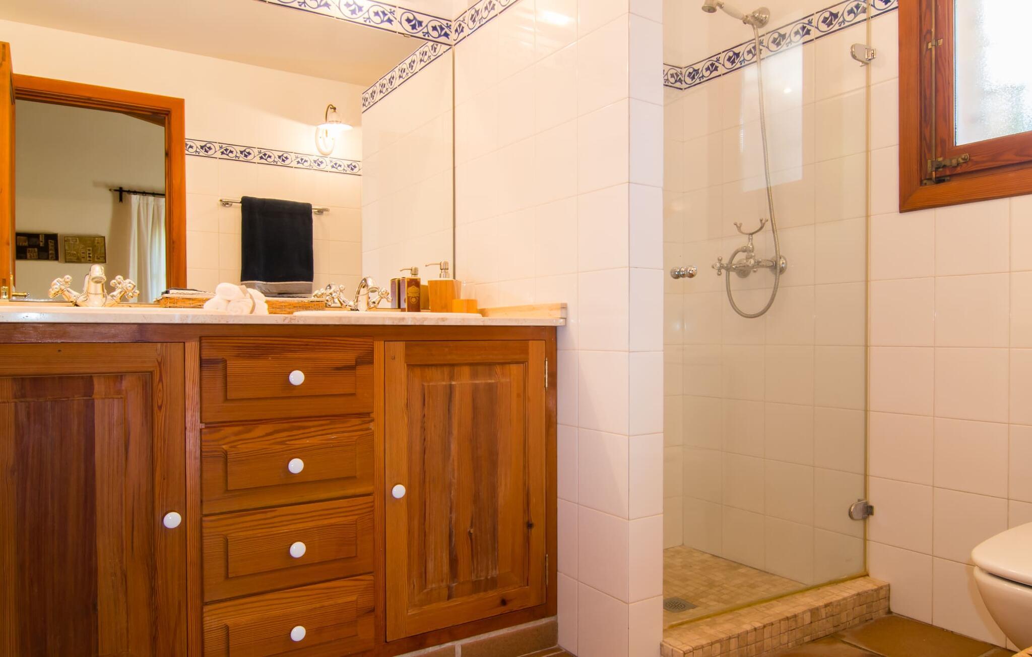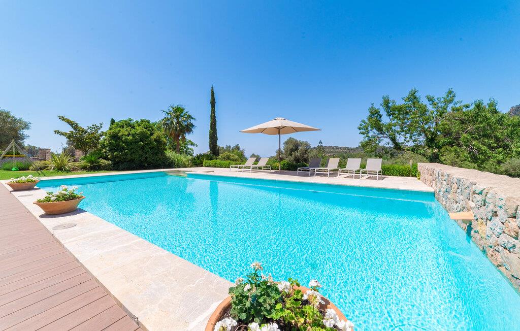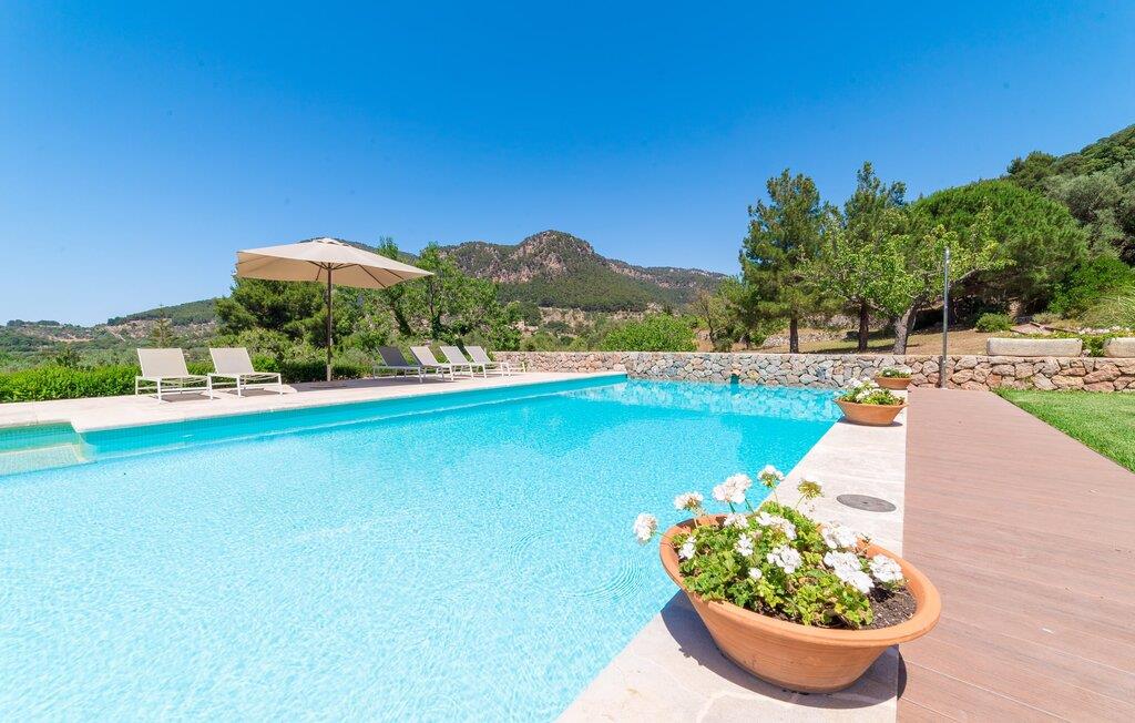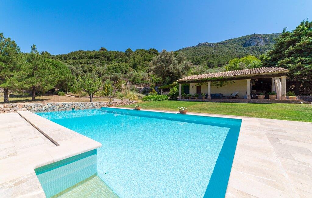 Denne ejendom er et must for alle, der værdsætter en rolig og eksklusiv atmosfære på ferien. Villaen “Son Beltran” opfylder begge krav på en særdeles tilfredsstillende måde. Den enorme ejendom på ikke mindre end 15.000 m² inviterer gæster til at blive hængende og slappe af, som de ønsker. Den parklignende atmosfære på denne ejendom forstærkes af store græsplæner, luftige pladser med naturlig skygge under storslåede træer, blomsterbede, stier og små vægge. I vil straks føle jer hjemme her. Havens højdepunkt er naturligvis den smukke pool, hvor I kan svømme længder over en længde på 11 m. Poolen er meget let tilgængelig via trapper. Den udendørs bruser, der er installeret lige ved siden af poolen, giver jer mulighed for at tage et hurtigt, forfriskende brusebad, hvorefter I kan finde jer tilpas på en af de komfortable liggestole under middelhavssolen og måske slappe af for en stund. Har I brug for beskyttelse mod de stærke UV-stråler, er der to parasoller til rådighed. Der blev også taget højde for de små gæsters behov, da haven blev designet. Der er også en gynge på den store græsplæne, hvor man kan boltre sig og slappe af. Udearealet byder på særligt attraktive terrassearealer, dygtigt designet og fordelt på forskellige niveauer af denne bolig med en unik grundplan. De flisebelagte overdækkede terrasser er i stueetagen, og stenterrassen er lidt højere og byder på en fortryllende udsigt. Dette område kan tilgås udefra via en rustik trappe, der fører til tagterrassen, som måske er den mest luksuriøse udendørs siddeplads denne ejendom har at tilbyde. Smagfulde udendørsmøbler inviterer jer til at slappe af på en af terrasserne eller spise en hyggelig middag ved spisebordet. I kan tilberede og nyde friske, regionale delikatesser på den udendørs grill, mens I nyder den fantastiske udsigt over den fortryllende haveidyl. Når man træder ind i huset, står det med det samme klart, at den dygtige udformning af udearealet i hvert fald matcher interiøret. Her finder vi en meget vellykket kombination af æstetiske materialer og møbler samt dygtigt brugte dekorative elementer, især i form af inspirerende kunstværker på væggene. Stuen imponerer med sin rummelige naturstensvæg og den matchende brede sofa, som er yderst behagelig og inviterer jer til at slappe af på ethvert tidspunkt af dagen. På kølige dage kan I endda bruge pejsen til at holde jer varm og dermed sikre en uforlignelig komfort. Det bidrager de klassiske træbjælkelofter og de smukke gulvfliser bestemt til. Køkkenområdet er præget af et meget originalt design. Her finder I ikke kun et elegant designet og fuldt udstyret køkken med elkedel og Nespresso kaffemaskine. Køkkenet har også et meget karakteristisk opholdsområde med stenvægge, lidt adskilt fra resten af rummet, perfekt til at sidde og nyde et måltid. De runde buer, der understøtter de enkelte siddepladser, samt det usædvanlige loftdesign gør dette til et helt specielt sted. En anden mulighed for spisning finder I udenfor køkkenet ved det smukke, massive træbord, som kan rumme op til seks personer. Alle soveværelser (et med eget badeværelse) er indrettet til en høj standard og har smukke og unikke designs. Alle vil finde den rigtige rasteplads, der passer til deres smag. Følgende senge er tilgængelige for gæster: tre senge på 1,80 x 2,20 m og to senge på 0,90 x 1,90 m. Badeværelserne er også smagfuldt indrettede. De er generøst store og indrettede i en komfortabel og moderne stil. I behøver ikke at medbringe en hårtørrer. Valldemossa blev engang kåret som den smukkeste landsby i Spanien og er bestemt et besøg værd. Der er forskellige smukke strande i nærheden af denne maleriske landsby. For eksempel: Cala Deìa (13 km væk) med sit krystalklare vand eller den lille stenstrand i Port de Valldemosse (6 km). Den nærmeste sandstrand ligger omkring 20 km væk i Puerto de Sóller. Den livlige ø-metropol og dens smukke gamle bydel kan nås på omkring 35 minutter. Villaen “Son Beltran” med havudsigt er et særdeles smagfuldt renoveret feriehus med en fantastisk beliggenhed på den vestlige del af øen. De maleriske landsbyer Deìa og Valldemossa med utallige barer, restauranter og indkøbsmuligheder ligger hver kun få minutter væk i bil. Den smukke badebugt "Cala de Deìa" er også let at nå. Palma de Mallorca lufthavn ligger omkring 27 kilometer væk.