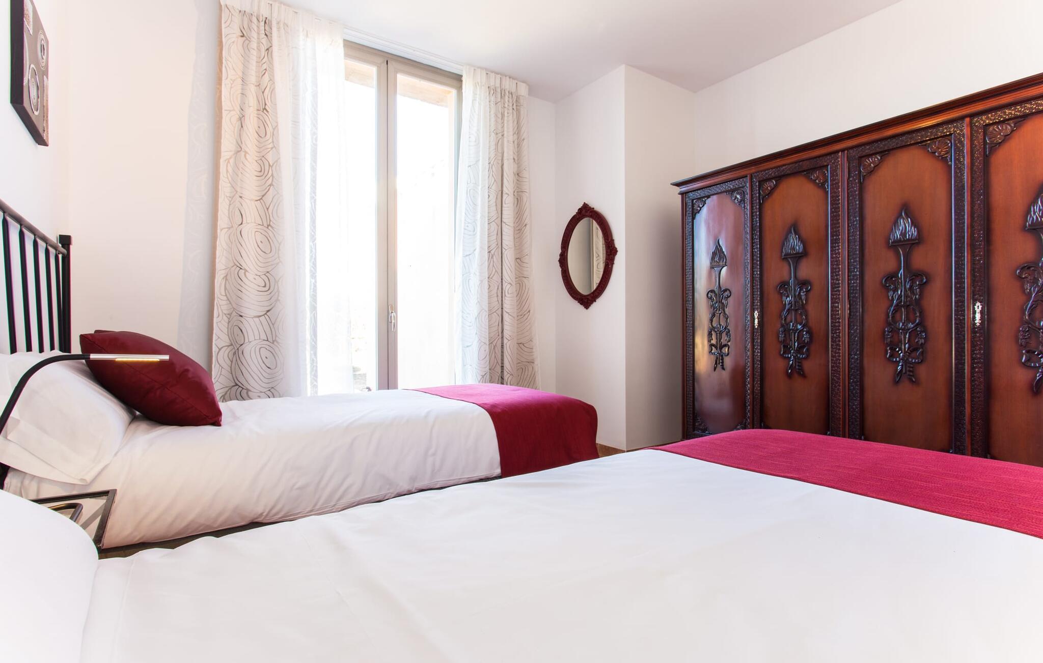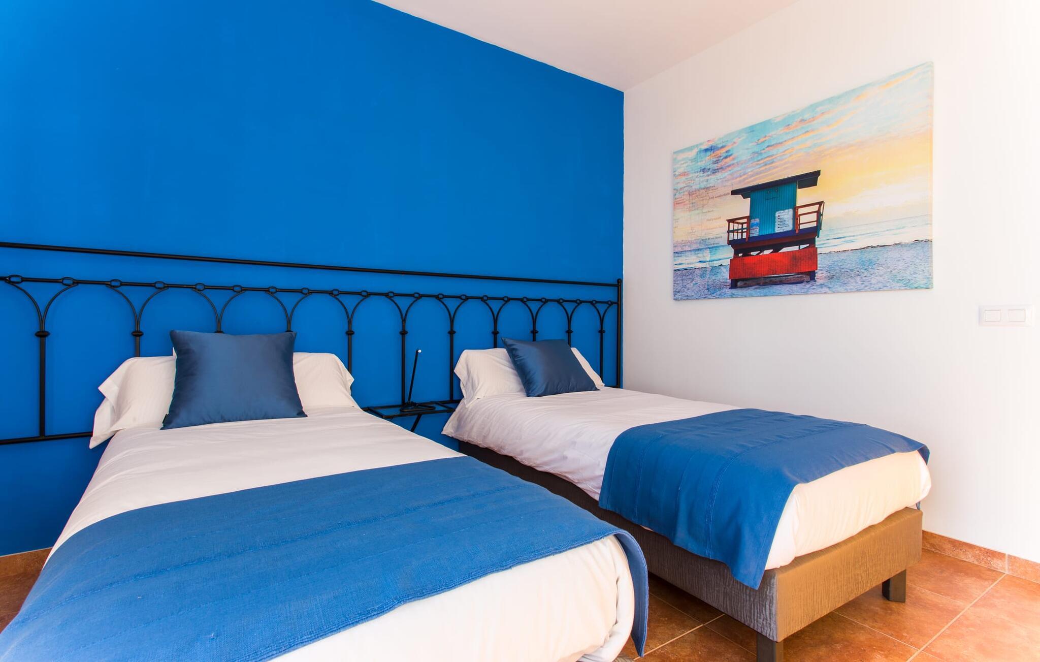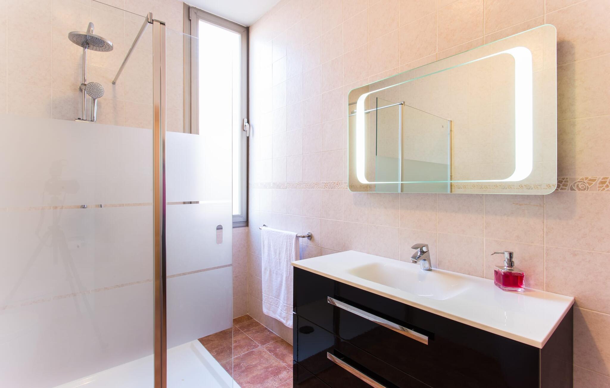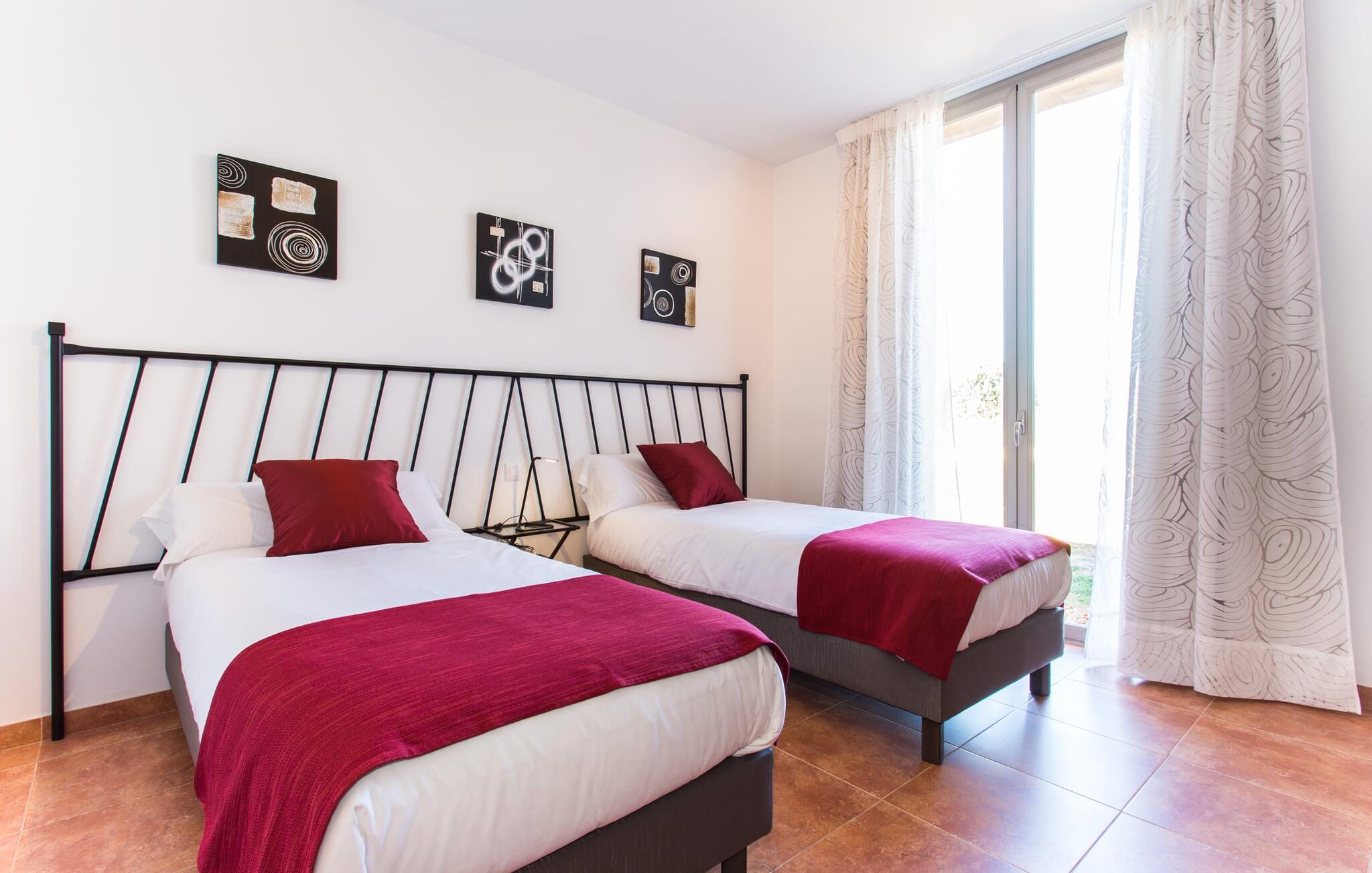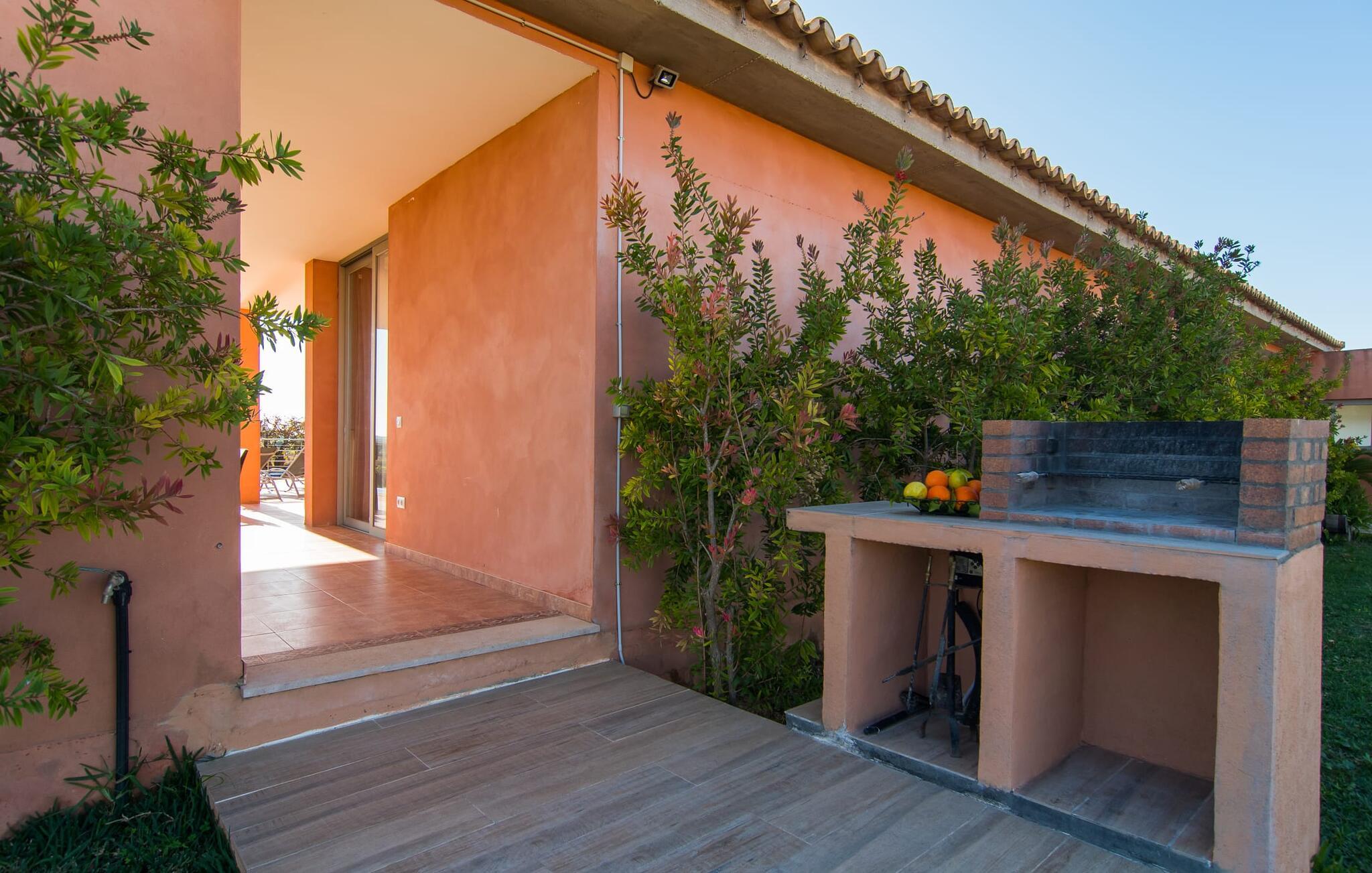 "Son Bordils Petit" har karakter af en ung, frugtig Prosecco frem for en langsomt modnet sen høst, som den dyrkes og sælges i den nærliggende "Ses Bordils"-vingård. Begge vil dog lige byde feinschmeckere, der værdsætter fordelene ved begge dele. Og denne villa har så meget at byde på, som vil fortrylle dig: dens smukke L-form med overdækkede terrasser, der fanger så meget lys - I kan se alt og alle her og bevæge jer med solen; infinity-poolen med dens komfortable trin og udsigt over mandeltræerne - I vil føle, at I blomstrer med dem, mens I svømmer runder; det lille grønne område med gynger - børn nyder deres egen legeplads; I er velkommen til at plukke frugt fra villaens figen-, blomme-, mispel- og abrikostræer, og friske æg er gratis - I vil ikke have for noget. Selvom ejendommen har "petit" i sit navn, er det eneste, der får det til at virke lille, de fjerne bjerge, der får det til at virke endnu mere betydningsfuldt. Et panorama at skåle for, med Coll-familiens prisvindende vin ved siden af... Der er også noget sprudlende over interiøret - hvis I ser rød, pink, blå og lilla, er det ikke fordi, I har haft lidt for meget til drikke. Den dristige brug af farve på individuelle vægge i stuen og soveværelset gør hvert værelse særpræget og suppleres smagfuldt af matchende billeder og møbler. Sådan ser livsstilen ud kombineret med livsglæde og fortjener bestemt navnet "Gran Reserva". Uanset hvilket soveværelse I vælger, kan I hoppe direkte ud af sengen ud i det fri og poolen - selvom der kan være skænderier om det ensuite badeværelse og walk-in closet! Det moderne, kompakte køkken med gulv-til-loft glasdøre udstråler kvalitet og lader intet tilbage at ønske; Med blot et par enkle trin kan I forvandle jeres indendørs og udendørs rum til jeres egen vinbar og bistro, der holder åbent til langt ud på natten. Og når det bliver varmt – hvad med et forfriskende brusebad? Eller, hvis I foretrækker det, et langt, afslappende bad i et badekar med levende lys? Da der er tre badeværelser, kan I sagtens tillade jer at indtage det ene i en periode. Mallorcas centrum inviterer jer til at finde jeres naturlige balance! By og land, centralt beliggende, men stadig lidt væk fra alfarvej - den tætte nærhed til Ma-3240 til Sineu (hørbar uden for villaen) betyder, at I kan være på farten næsten med det samme. Derfra er det kun 7 minutters kørsel nordpå til Inca, en af øens livlige hovedbyer. Traditionelle kældertaverner som Celler Can Amer på Carrer de la Pau byder på et udpluk af regionens specialiteter, og I kan ofte finde et kup i de mange læderværksteder. Eller se over skuldrene på skomagerne i det nærliggende Lloseta, og forkæl jer selv med et par Bestard-bjergstøvler til en vandretur i Serra de Tramuntana-bjergene. Når I rejser gennem en region fuld af vindmøller mod Sineu og Costitx, vil I finde andre traditionelle attraktioner som det populære ugentlige marked (med middelalderlige omgivelser), det eneste observatorium på Mallorca og mange kulinariske overraskelser. Og selvfølgelig god vin lagret under den spanske sol... Med sin bjergrige kulisse, der passer til et filmsæt, sine vinstokke og frugttræer, bekvemt placeret mellem byen Inca - berømt for sit læder - og landlige Costitx i hjertet. -etagers, moderne villa "Son Bordils Petit" med en vidunderlig pool og stor grund venter jer på øen. På den ene side er der endeløse timers shopping, på den anden side venter vindmøller, et observatorium og øens historie på at forføre jer. Havet er heller ikke langt væk: I finder smukke strande inden for en radius af 30 km.