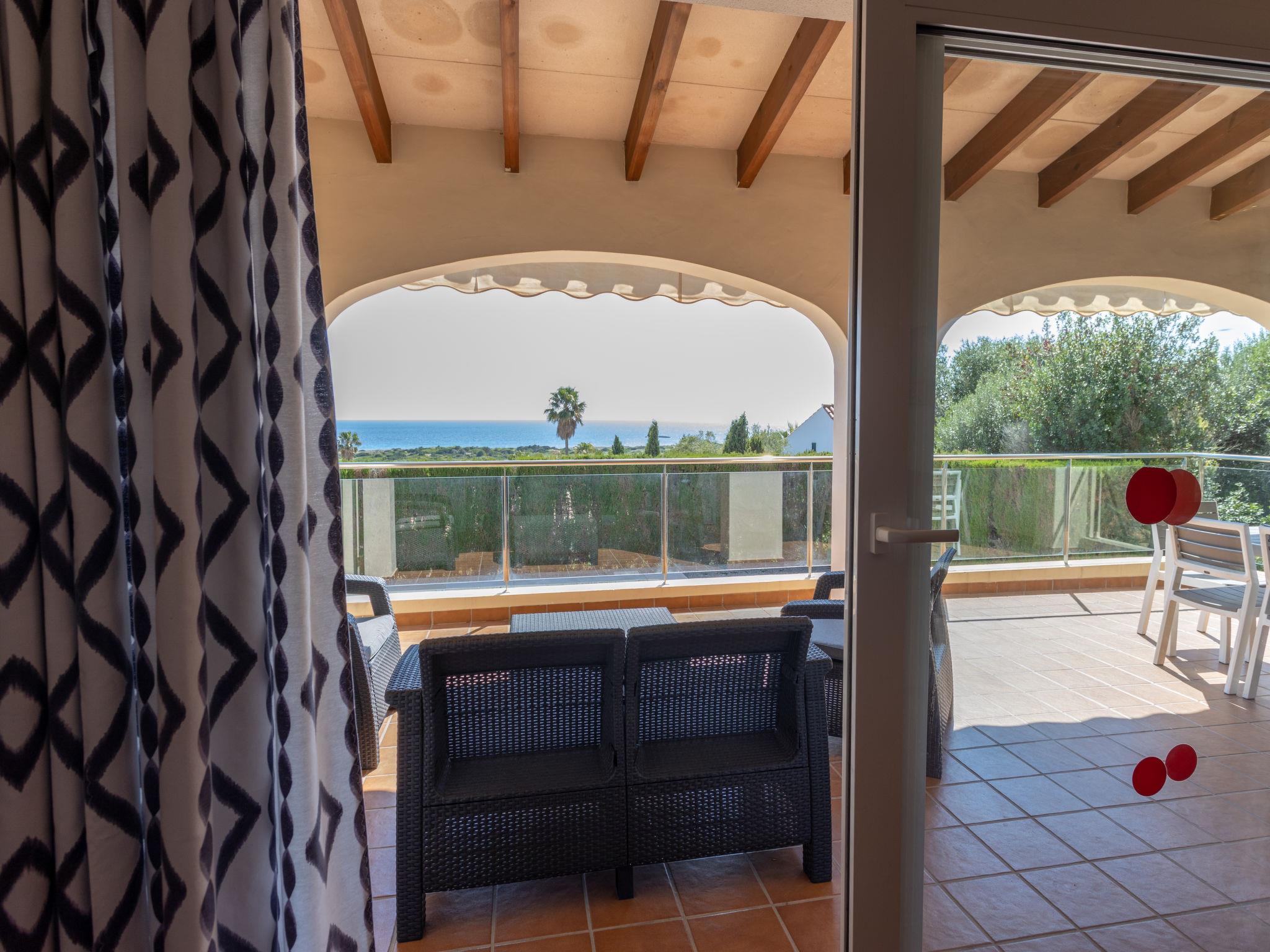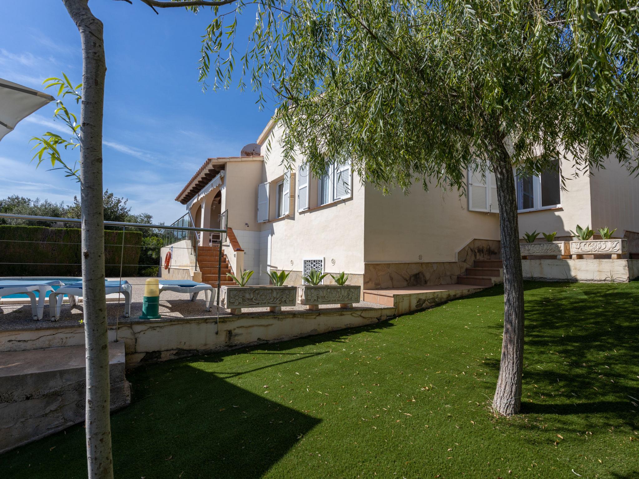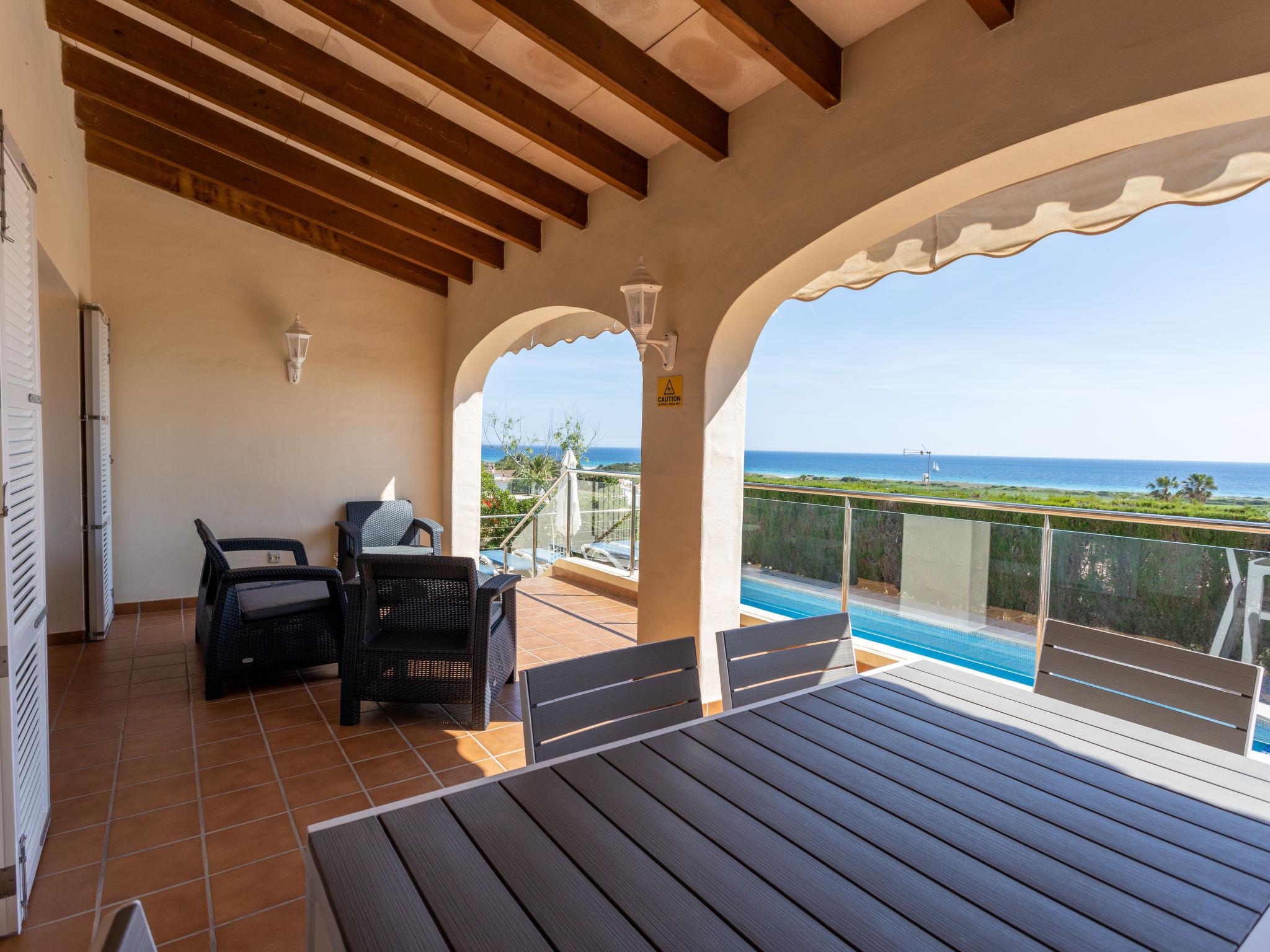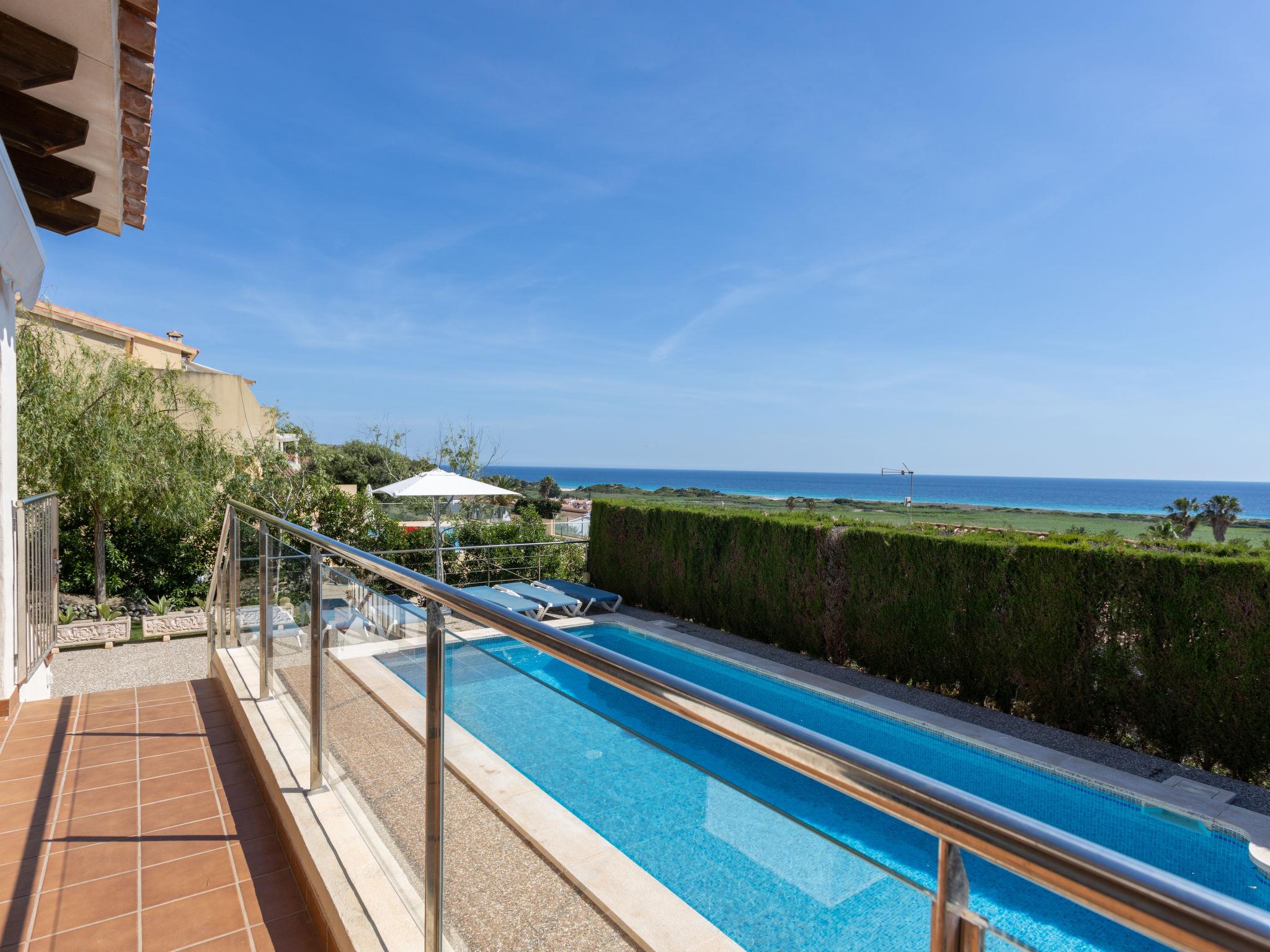 Son Bou: Beautiful, cosy, comfortable single-family house "Primavera". In the resort Alaior, in a quiet position residential area (villas), 400 m from the sea, 400 m from the beach. Private: beautiful, well-kept terraced garden with lawn and wildlife garden, swimming pool angular (8 x 4 m, depth 100 - 200 cm, seasonal availability: 01.Apr. - 30.Oct.). Outdoor shower, patio, pergola, garden furniture, barbecue. In the house: internet access, WiFi, air conditioning, washing machine. Parking on the premises. Shop 300 m, grocery, supermarket, bar 200 m, pedestrian zone 150 m, bus stop "Son bou" 800 m, sandy beach "Playa Son Bou" 400 m. Nearby attractions: Platja de Son Bou 300 m. Hiking paths: Cami de Cavalls 400 m. Please note: car recommended. Suitable for families, suitable for seniors baby equipment on request (included). Object suitable for 6 adults. The owner does not accept any youth groups. Loading and unloading of baggage is possible at the holiday house. Airfield 20 km from the property.
