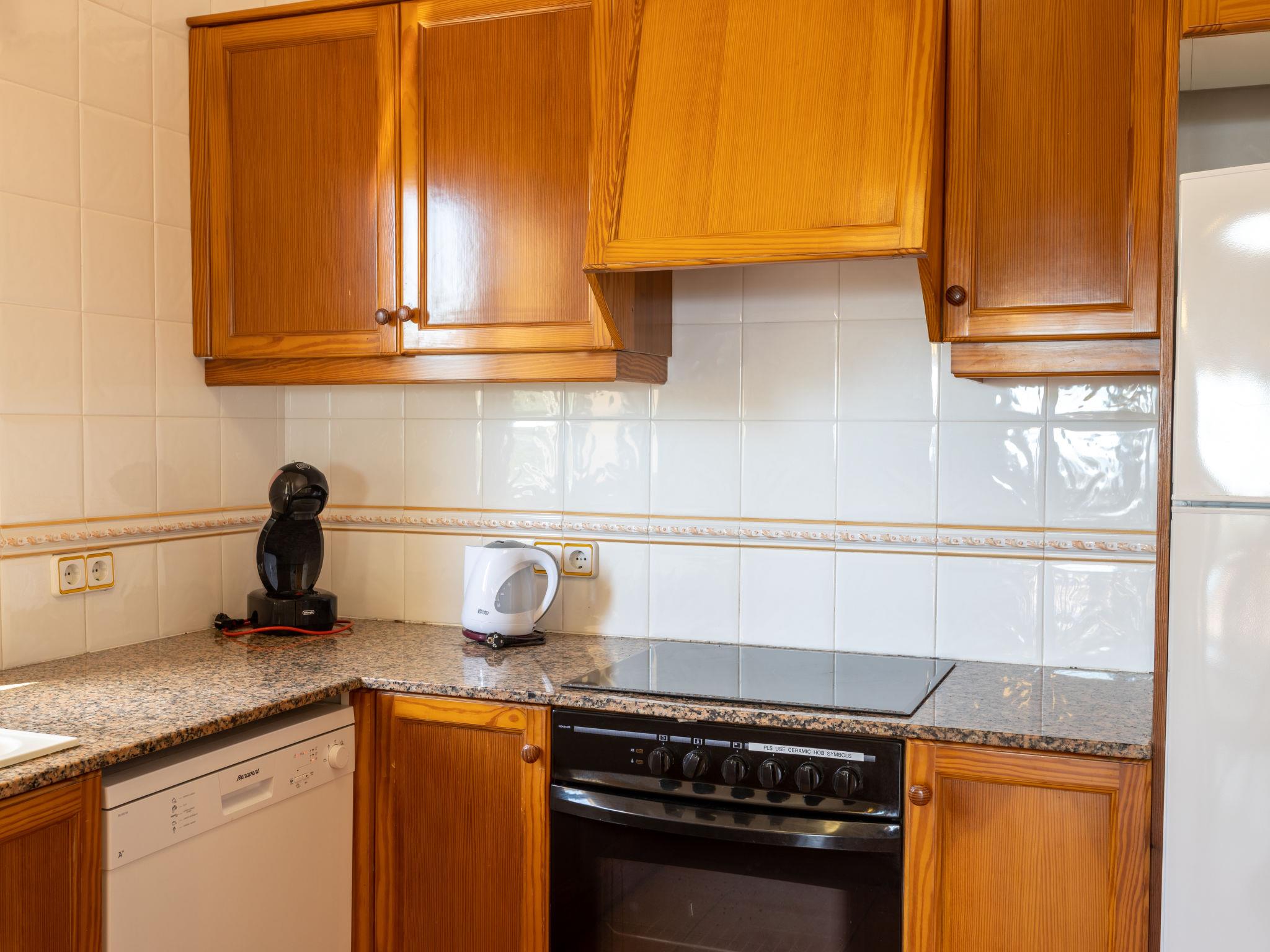 "Primavera", 5-room house 140 m2. Object suitable for 6 adults. Spacious and bright, practical and comfortable furnishings: large living room with sliding door with satellite TV, flat screen and air conditioning. Exit to the patio, to the swimming pool. 3 large double bedrooms, each room with 2 beds (90 cm, length 200 cm), air conditioning and forced-air heating. Kitchen-/living room (oven, dishwasher, 3 induction hot plates, toaster, kettle, microwave, freezer, electric coffee machine, Capsules for coffee machine (Dolce Gusto)) with bar, dining table. Exit to the patio, to the swimming pool. 2 showers/bidet/WC. Large patio. Terrace furniture, barbecue, deck chairs (6). Beautiful view of the sea, the swimming pool and the countryside. Facilities: washing machine, iron, children's high chair, baby cot for up to 2 year olds, hair dryer. Internet (WiFi, free). Please note: suitable for families. Private entrance, smoke alarm, fire extinguisher. The pool mentioned in the description is for private use. VT444ME // Reg. Nr.: ESFCTU000007013000322761000000000000000000000VT444MEO