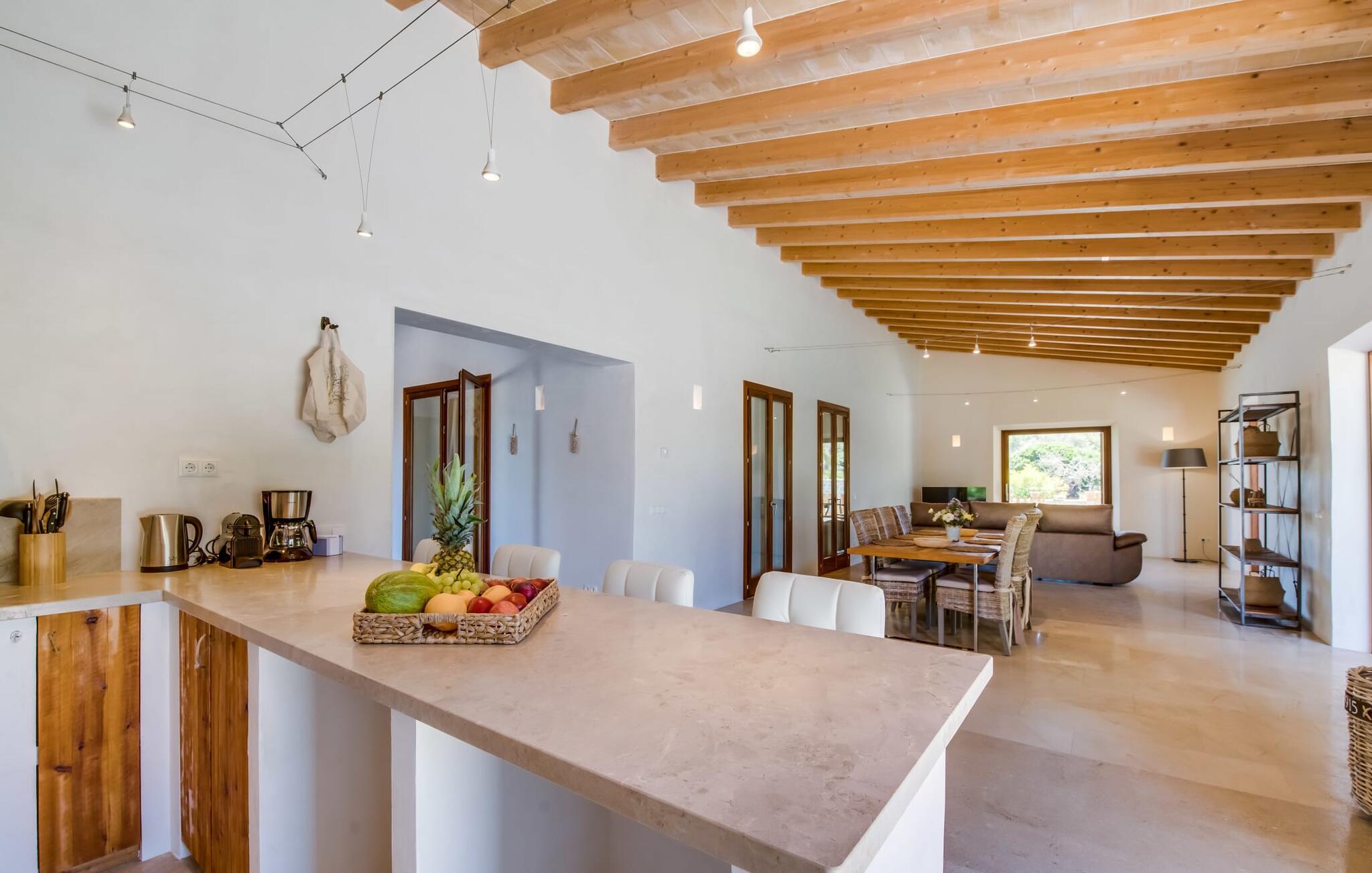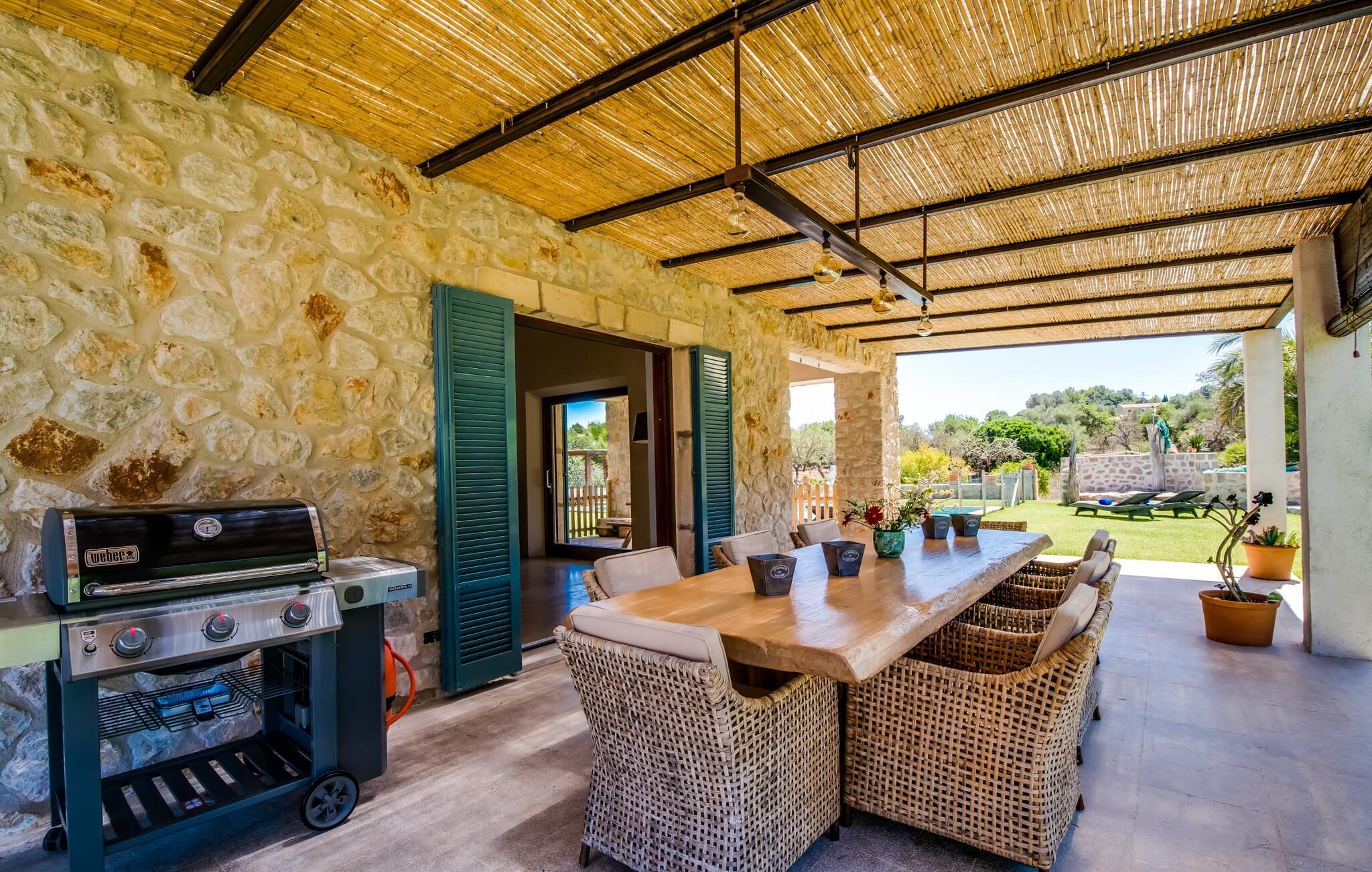 Her kan I nyde det maritime middelhavsliv til fulde uden sko og med al tænkelig komfort: Naturstensvillaen "Son Buc" med sine smukke lyseblå skodder og smukke strandobjekter i haven blev bygget for foden af en bakke i en fantastisk ugeneret beliggenhed på en kæmpe ejendom. Rundt om hele huset inviterer den kærligt anlagte have med mange hvidkalkede skibsplanker, tykke bådreb, strandbøjer og talrige høje palmer børn til leg og voksne til at blive hængende. De mange terrasser - dels solrige, dels overdækkede - ligger smukt spredt rundt i villaen og byder på en vidunderlig udsigt over den omkringliggende natur samt komfortable sidde- og liggeområder. Alle kan hurtigt finde deres yndlingssted her, hvad enten det er med en lækker cocktail på loungestolen på tagterrassen, ved det rustikke træbord til en lille snack eller med en god bog på den romantiske daybed ved poolen. Apropos poolen: Takket være et diskret hegn, der er børnesikkert, glitrer det let skrånende vand lokkende i solen og lover en forfriskning på varme dage. Takket være de mange, nogle gulv-til-loft vinduer, præsenterer "Son Buc" et vidunderligt lyst og venligt interiør. Træbjælker på lofterne og rustikke, fritlagte naturstensvægge står i kontrast til lyse hvide vægge og elegante klinkegulve - en perfekt kombination af tradition og modernitet. Indretningen er også stilfuld: En klassisk landlig stil står i kontrast til de næsten puristisk udseende møbler. Stuen med en ekstra dyb sofa, hvor I kan krølle jer sammen foran tv'et, spisepladsen med et langt træbord og kurvestole og det meget smarte, enkle og moderne køkken med hvid bord, perfekt til afslapning med en hurtig morgenmad eller et glas Vin flyder problemfrit ind i hinanden takket være det åbne design. To smagfuldt designede, rummelige og airconditionerede dobbeltværelser, et i stueetagen og et på øverste etage, der er adgang til via en stentrappe, lover søde drømme: værelserne undgår unødvendige dikkedarer og overdreven indretning, men lægger i stedet vægt på naturligt. toner og dygtig belysning. Det samme gør sig gældende for de to elegante en-suite badeværelser, det ene med bruseniche i gulvniveau og det andet med et vidunderligt bredt badekar. Selvom I ikke ønsker at forlade dette grønne paradis, så sørg for at planlægge en tur eller to til det omkringliggende område – det er det værd! Det typisk mallorcanske, bakkede landskab omkring villaen er simpelthen perfekt til lange gåture eller cykelture gennem naturen. For at shoppe, slentre gennem byen eller besøge en restaurant, skal I køre ca. 3,9 km ned ad vejen, der kan høres fra ejendommen til middelalderbyen Artà. Gå ikke glip af det farverige ugentlige marked om tirsdagen. Så tag en afslappet spadseretur gennem de smalle gader i denne smukke by med dens særlige atmosfære, som har motiveret mange kunstnere til at slå sig ned her gennem årene. Men selvom I foretrækker at tage til stranden, behøver I ikke at gå langt: Sa Marjal, en smuk sandstrand med klitter, bølger og god infrastruktur, ligger kun 10,3 km væk, mens Canyamel-stranden kun ligger 10,3 km væk. beliggende, omgivet af smuk natur, er kun 10,8 km væk. Et maritimt middelhavsparadis med hvidkalkede skibsplanker, tykke bådreb, strandbøjer og småsten omgiver den smukke naturstensvilla "Son Buc", der ligger mellem havnebyen Cala Ratjada og Artà, et kystsamfund på den østlige del af øen. Huset, med sine smukke lyseblå skodder og talrige strandfund i haven, ligger ved foden af en grøn bakke på en enorm 4 hektar stor ejendom. Den turkise pool er indlejret i et omfattende havelandskab og giver jer lyst til at gå til havet og gå barfodet. Nogle af de smukkeste sandbugter på Mallorca ligger i umiddelbar nærhed af villaen.