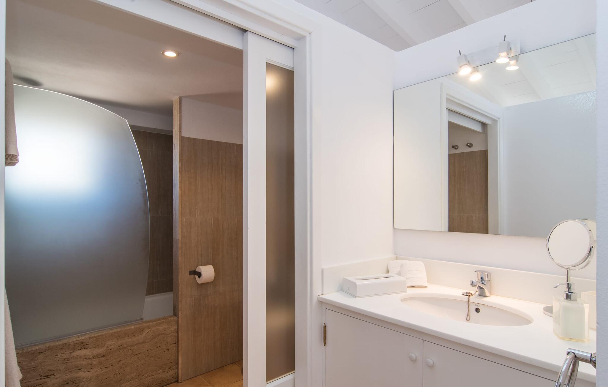 Så meget charme! Når bougainvilleaerne blomstrer, ser det over 200 år gamle hovedhus i "Son Cappelot" bogstaveligt talt ud til at gløde. Denne renoverede landejendom har mere end 200.000 m² jord og fem ferielejligheder, hver med et til to soveværelser - det er den perfekte feriedestination for landbrugsturisme for ren fred og afslapning! Når I går mellem de duftende æble-, citron-, oliven- og mandeltræer og ser fåreflokkene græsse i nærheden, har I naturligvis en tendens til at sætte farten ned og lade batterierne op. En vidunderlig 16 m lang pool - beskyttet af en børnebeskyttelseslåge - er som jeres eget lille hav lige foran hoveddøren, liggestole under parasoller er gratis til rådighed for alle gæster. Borde og stole på den delvist overdækkede fællesterrasse, nicher og hjørner dekoreret med blomster og den indendørs lounge med tilhørende morgenmadslokale (til kølige dage) giver rig mulighed for at sludre med andre gæster, slappe af osv. Krøll op med en god bog eller jeres yogamåtte tilbage i naturen. Og vil I efterlade jeres lejebil på ejendommen, er det kun 10 minutters cykeltur eller en halv times gåtur ind til byen, hvor I finder flere hyggelige caféer at besøge. Der er fem nyrenoverede, moderne ferielejligheder i forskellige størrelser at vælge imellem på pladsen: “Son Capellot Uno”, et feriehus til fire personer på øverste etage af det mindre hus, er tilgængeligt via sin egen lille terrasse, som byder på en vidunderlig udsigt over haven og poolen hele vejen til bjergene i Tramuntana-bjergene. Hvide vægge og hvide møbler skaber en lys, frisk og klar atmosfære på 80 m². Udover to soveværelser - et med 1,50 x 2 m dobbeltseng, et med to enkeltsenge - og en åben stue, er der separat minikøkken med komfur, køleskab, mikroovn og opvaskemaskine samt badeværelse med brus/bruser/ badekar kombination. I kan nemt tilberede mindre måltider selv eller bruge den fælles grill. De nærmeste restauranter er heller ikke langt væk. Lejligheden er naturligvis udstyret med aircondition og radiatorer, så I er forberedt på alt vejr i sæsonen fra april til oktober. Den lille by Felanitx har en af de ældste kirker på Mallorca og er et godt sted for en rolig ferie, men alligevel så centralt beliggende, at mange attraktive destinationer er inden for rækkevidde: fiskerbyen Portocolom og den børnevenlige sandstrand i Cala Marçal og stranden Platja de S'Arenal, det "Mallorcanske Toscana" omkring Santanyí og Cas Concos des Cavaller, Mondragó Naturpark, den smukke by Campos og Manacor, en by kendt for sine perler. Uanset om det er til fods, på cykel eller i bil - her er det utrolig nemt at komme rundt. Felanitx i sig selv er en by kendt for sine vine og vinmarker - efter en spadseretur gennem de smalle gader kan vi klart anbefale en vinsmagning i en af bodegaerne. To storslåede strukturer rejser sig mellem toppene af de omkringliggende bakker og tilbyder en spektakulær udsigt: det klippeudskårne Castell de Santueri og Santuari de Sant Salvador. Og strande som Es Trenc (25 km), Cala Sa Nau eller Cala Mitjana (begge 16 km) er bestemt et besøg værd! Idyllisk agriturisme oase af fred fra april til oktober: Lad jer fortrylle af fem separate ferielejligheder (med morgenmad) på den 200 år gamle "Son Capellot" ejendom. Frodige haver og frugtplantager, en lang, rektangulær fælles pool og den charmerende lille vinby Felanitx med butikker og et ugentligt marked - alt hvad I behøver for en helt afslappende ferie på landet. Her venter nogle af de smukkeste strande på øst- og sydkysten samt cykelture gennem vindmølleregionen.