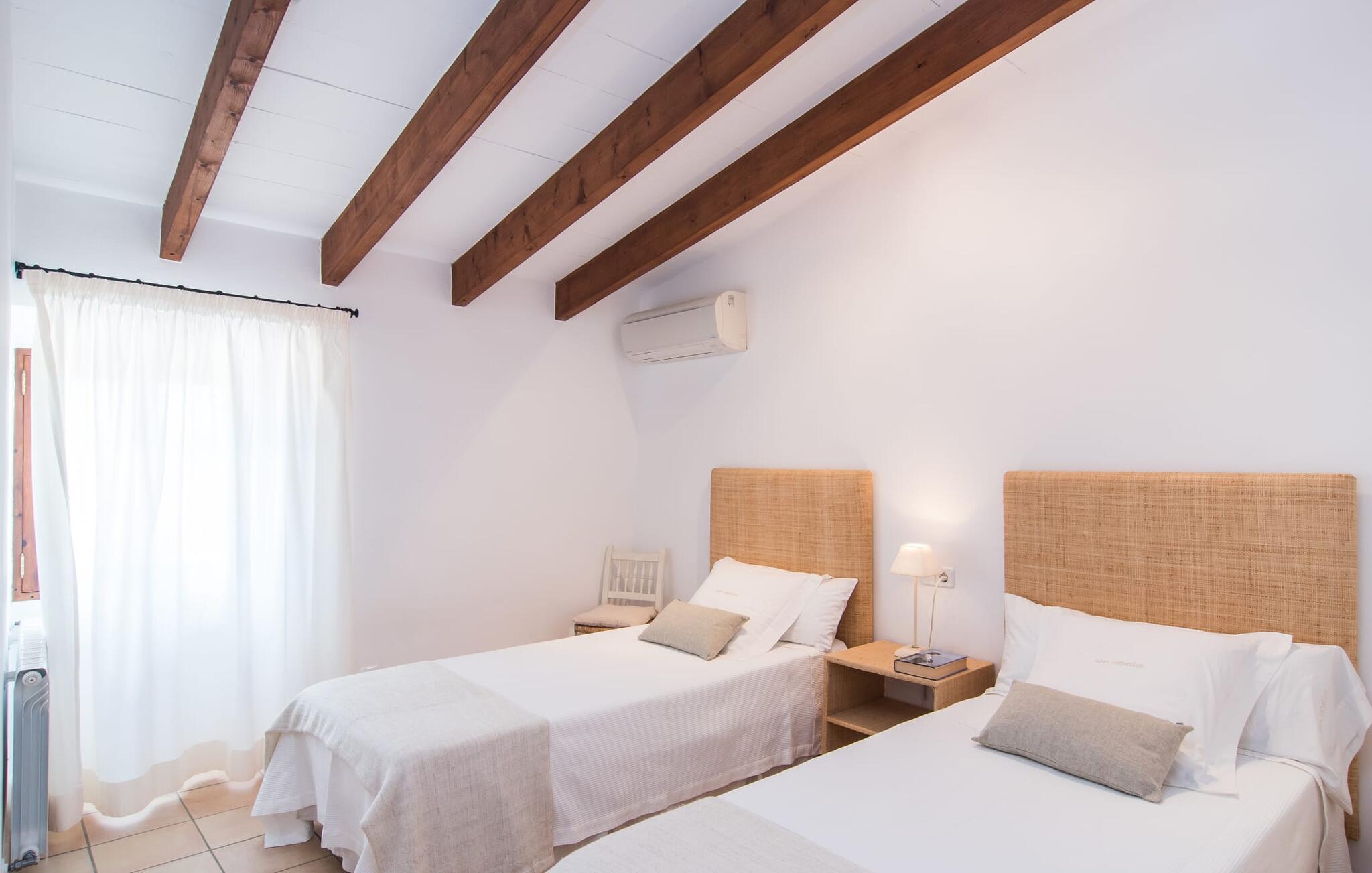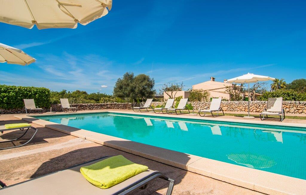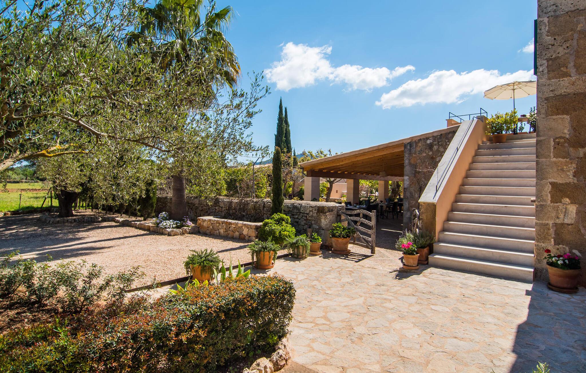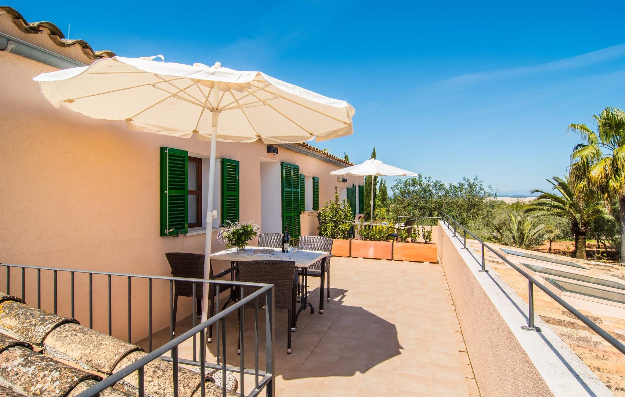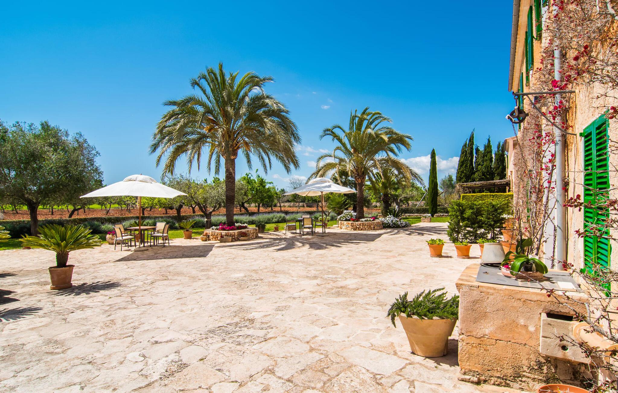 Så meget charme! Når bougainvilleaerne blomstrer, ser det over 200 år gamle hovedhus "Son Capellot" bogstaveligt talt ud til at gløde. Denne renoverede landejendom har mere end 200.000 m² jord og fem ferielejligheder, hver med et til to soveværelser - det er den perfekte feriedestination for landbrugsturisme for ren fred og afslapning! Når I går mellem de duftende æble-, citron-, oliven- og mandeltræer og ser fåreflokkene græsse i nærheden, har I naturligvis en tendens til at sætte farten ned og lade batterierne op. En vidunderlig 16 m lang pool - beskyttet af en børnebeskyttelseslåge - er som jeres eget lille hav lige foran hoveddøren, liggestole under parasoller er gratis til rådighed for alle gæster. Borde og stole på den delvist overdækkede fællesterrasse, nicher og hjørner dekoreret med blomster og den indendørs lounge med tilhørende morgenmadslokale (til kølige dage) giver rig mulighed for at sludre med andre gæster, slappe af osv. Krøll op med en god bog eller jeres yogamåtte tilbage i naturen. Og vil I efterlade jeres lejebil på ejendommen, er det kun 10 minutters cykeltur eller en halv times gåtur ind til byen, hvor I finder flere hyggelige caféer at besøge. Der er fem nyrenoverede, moderne ferielejligheder i forskellige størrelser at vælge imellem på pladsen: "Son Capellot Dos", et feriehus til to personer på øverste etage af det mindre hus, er tilgængeligt via en udvendig trappe og sin egen lille terrasse, som har en vidunderlig udsigt over haven og det omkringliggende landskab byder på. Hvide vægge og hvide møbler skaber en lys, frisk og klar atmosfære på 42 m². Foruden et hemslignende soveværelse - med dobbeltseng bestående af to madrasser på 0,90 x 2,00 m - og åben stue, er der også et indbygget køkken med komfur, køleskab og mikroovn samt badeværelse med bl.a. brus/bad kombination. I kan nemt tilberede mindre måltider selv eller bruge den fælles grill. De nærmeste restauranter er heller ikke langt væk. Lejligheden er naturligvis udstyret med aircondition og radiatorer, så I er forberedt på alt vejr i sæsonen fra april til oktober. Den lille by Felanitx har en af de ældste kirker på Mallorca og er et godt sted for en rolig ferie, men alligevel så centralt beliggende, at mange attraktive destinationer er inden for rækkevidde: fiskerbyen Portocolom og den børnevenlige sandstrand i Cala Marçal og stranden Platja de S'Arenal, det "Mallorcanske Toscana" omkring Santanyí og Cas Concos des Cavaller, Mondragó Naturpark, den smukke by Campos og Manacor, en by kendt for sine perler. Uanset om det er til fods, på cykel eller i bil - her er det utrolig nemt at komme rundt. Felanitx i sig selv er en by kendt for sine vine og vinmarker - efter en spadseretur gennem de smalle gader kan vi klart anbefale en vinsmagning i en af bodegaerne. To storslåede strukturer rejser sig mellem toppene af de omkringliggende bakker og tilbyder en spektakulær udsigt: det klippeudskårne Castell de Santueri og Santuari de Sant Salvador. Og strande som Es Trenc (25 km), Cala Sa Nau eller Cala Mitjana (begge 16 km) er bestemt et besøg værd! Idyllisk agriturisme oase af fred fra april til oktober: Lad jer fortrylle af fem separate ferielejligheder på den 200 år gamle "Son Capellot" ejendom. Frodige haver og frugtplantager, en lang, rektangulær fælles pool og den charmerende lille vinby Felanitx med butikker og et ugentligt marked - alt hvad I behøver for en helt afslappende ferie på landet. Her venter nogle af de smukkeste strande på øst- og sydkysten samt cykelture gennem vindmølleregionen.