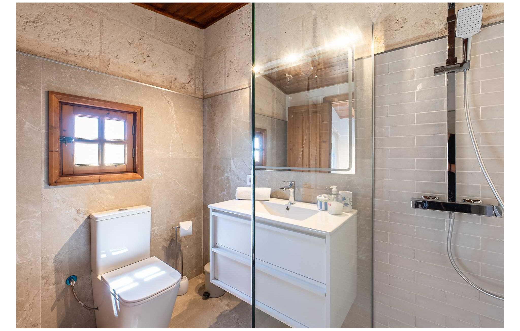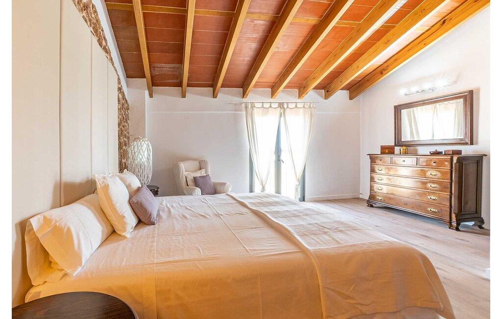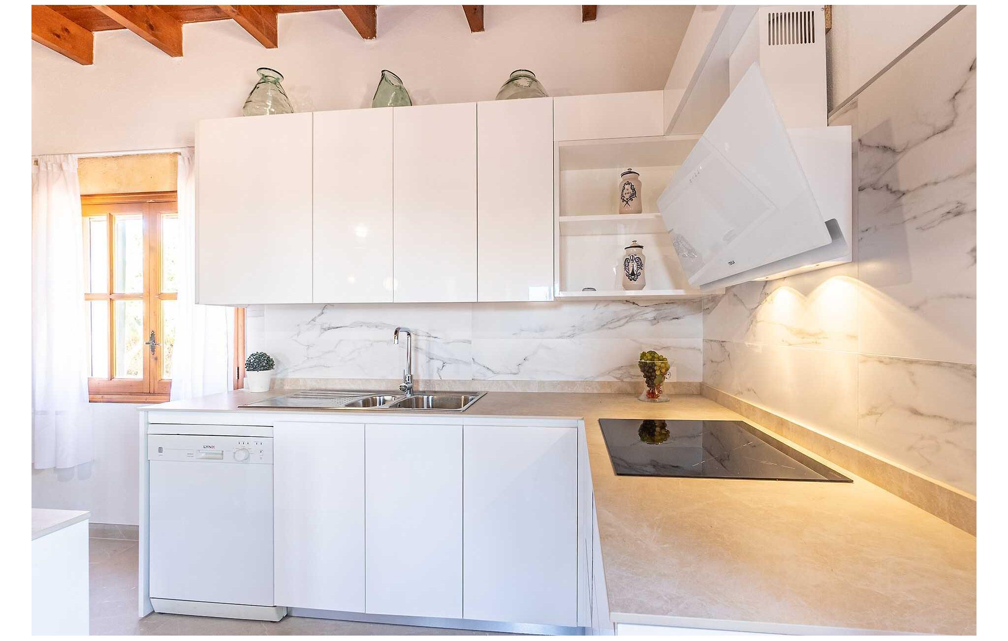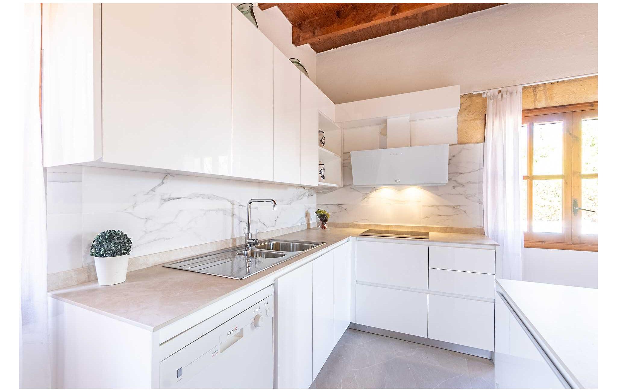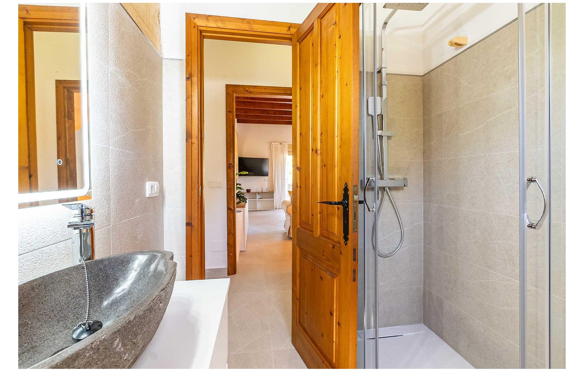 Feriehuset "Son Claret" er en grøn oase på fladt landbrugsområde nær Muro, kun 10 minutter fra sandstranden i Alcúdia-bugten. Ejendommen er helt privat og omgivet af hække og hegn. Poolterrassen har en let skrånende pool med trappeadgang, liggestole og en hyggelig dagseng med høje palmer, der giver skygge. I tilknytning til huset er en skyggefuld spiseplads under en overdækket terrasse med udsigt over poolen. Renoveret i 2024, interiøret omfatter lyse, smagfuldt indrettede værelser. Den åbne planløsning giver nem adgang til terrassen og poolen gennem en glasskydedør. Det rummelige køkken med integreret spiseplads er udstyret med moderne hårde hvidevarer og har egen udgang til det fri. Et badeværelse med bruser fuldender stueetagen. Der er tre komfortable dobbeltværelser på øverste etage; to har ensuite badeværelser og en har en privat balkon. Huset har aircondition og skodder til perfekt mørke. Beliggende omkring 3 km fra Muro og 8 km fra Can Picafort, er "Son Claret" ideel til fjernarbejde, med stabilt internet og god mobilmodtagelse. Den lange sandstrand i Alcúdia-bugten ligger mindre end 10 minutter væk i bil.