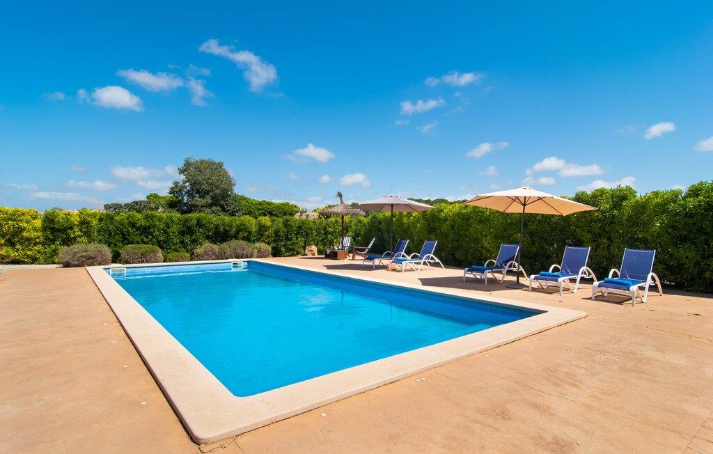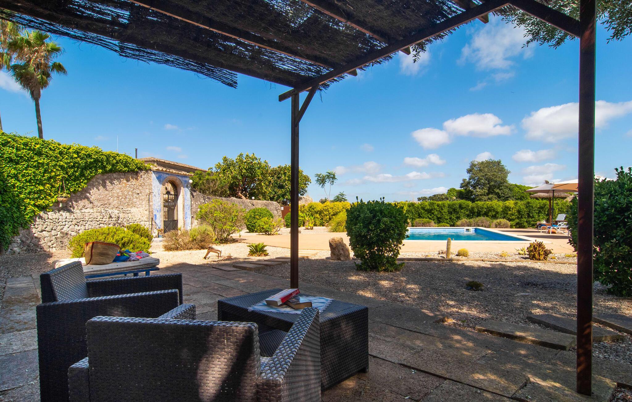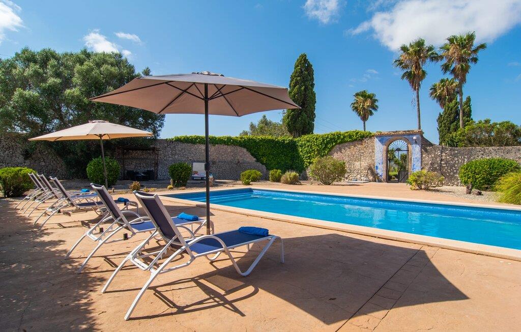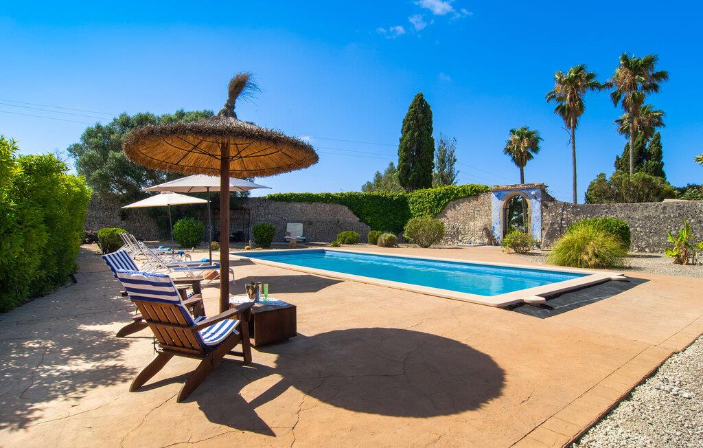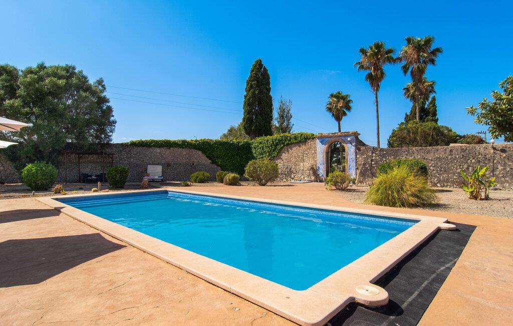 Oplev en uforglemmelig ferie på Mallorca på den historiske finca "Son Costa" med plads til op til ti gæster. Udstråler masser af autentisk charme, dette charmerende sandstenshus ligger på en enorm, smukt anlagt grund nær Montuiri, og tilbyder et fredeligt tilflugtssted i det landlige hjerte af øen. Nyd fuldstændig privatliv, mens I udforsker den store have, slapper af i den afsondrede gårdhave eller slapper af på den overdækkede terrasse og solrige tagterrasse. Det indbydende poolområde, omgivet af en solterrasse og frodige grønne områder, sikrer tryghed for yngre børn. En lejebil anbefales til udflugter i området, I kan nemt parkere på grusparkeringen foran huset. Indvendigt har fincaen et klassisk mallorcansk design med ru pudsede og naturstensvægge, mørke træaccenter og rustikke antikke møbler, som alle harmonerer harmonisk med moderne komfort. Den rummelige indretning omfatter indbydende opholdsarealer i tre plan, individuelt indrettede soveværelser og store badeværelser - et med badekar og andre med bruser, ligeledes i tre plan. Et veludstyret køkken med spisebord giver de perfekte rammer for et hyggeligt samvær. Nyd "Son Costas" autentiske charme og komfort for en uforglemmelig ferieoplevelse. Den historiske finca "Son Costa" er beliggende i det landlige centrum af Mallorca. Landsbyen Montuiri med sine restauranter og butikker ligger kun ca. 2 km væk og kan nås via landevejen. Platja de Palma ligger ca. 30 km væk med udlejningsbil.