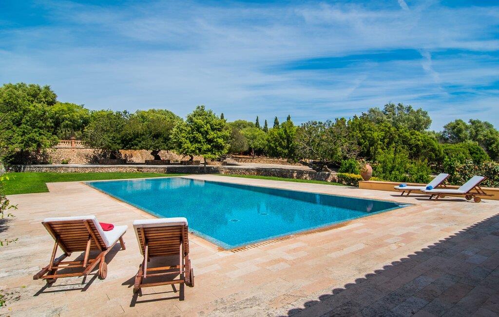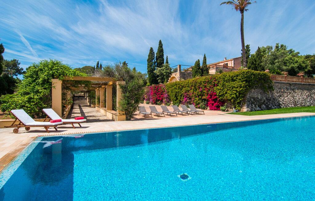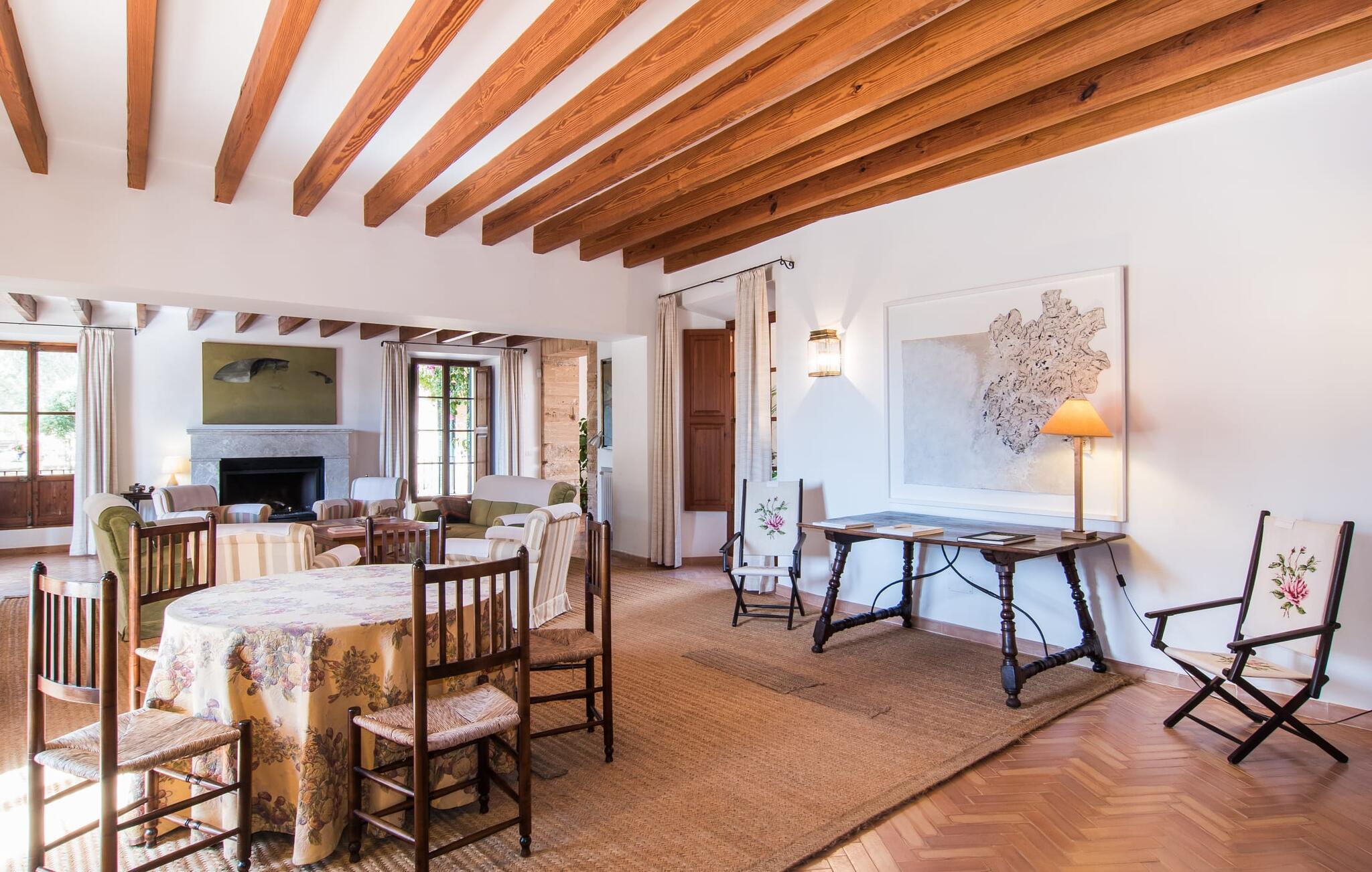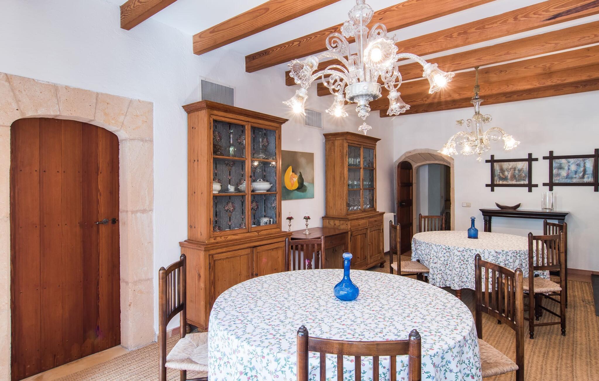 Villa "Son Doblons" er unik, imponerende, vidunderlig og spektakulær. Tilføj gerne flere attributter. I kan sikkert komme i tanke om et par stykker mere! I fuldstændig afsondrethed kan I nyde udsigten over de smukke bølgende bakker, der kendetegner Mallorcas kystlandskab. 1,3 millioner m² eller 130 hektar jord, denne skala er betagende. Designet af den tilstødende have er lige så spændende som disse dimensioner. Omkring de ærefrygtindgydende mure ligger syv forskellige haver, som tilsammen danner et nærmest magisk parklandskab. Stedet minder om et klosterkompleks eller en herregård. Tre små damme med delvise vandfald, brolagte stier, en unik variation af oliven-, johannesbrød- og citrontræer, stier og bede foret med frodige blomstrende planter, hængende slyngplanter, der smigrer det solide stenbrudsmurværk - dette er blot nogle få af de få detaljer, der .. formidle absolut privatliv og skønhed. Om natten skinner parken i et magisk lys, ligesom den enorme pool, der er omgivet af græsplæner og naturstensarealer og rundes af en overdækket lounge. Talrige siddepladser med et kunstfærdigt kaffehusensemble, men også masser af borde, der kan stilles op i haven til et arrangement med op til 400 personer, afspejler potentialet for en helt særlig lejlighed. I øvrigt vil de venlige ejere med glæde hjælpe jer med at organisere jeres meget private fest. Den familievenlige ejendom demonstrerer sin generøsitet med de 2.000 m² indvendige boligareal, som kan forventes givet udearealet. Den feudale ejendom byder på i alt tre spiseområder, to smukke lounges, et bibliotek og et musikrum med flygel på et åbent galleri i to etager. Indretningen er en attraktiv blanding af mallorcansk hygge med masser af træ og komfortable siddepladser på den ene side og moderne stilelementer på den anden. Kærlige detaljer i udsmykningen formidler charmen ved et privat boutiquehotel. Talrige pejse bidrager til hyggen, hvoraf nogle er dekorative, men også funktionelle til fest. Det er også prisværdigt, at der er et fuldt udstyret og helt igennem hyggeligt køkken, som minder lidt om et værelse i et gammelt stuehus, som er nostalgisk og charmerende. Gæsterne har adgang til otte dobbeltværelser, som indretningsmæssigt minder mere om suiter. Hvert fuldt airconditionerede værelse har ikke kun et privat badeværelse med badekar, men også et privat loungeområde, så gæsterne kan sove som en baby og slappe helt af i deres eget stille værelse. Apropos babyer: Der er selvfølgelig to babysenge til lidt større børn, op til to ekstra senge kan bestilles som tilvalg; På grund af centralvarmen kan denne flotte herregård også bookes til enhver begivenhed året rundt. Den landlige beliggenhed og den samtidige nærhed til havet er træk, der gør den all-round eksemplariske villa "Son Doblons" så attraktiv. Landevejen er den bedste måde at nå de omkringliggende byer på og er så tæt på, at man afhængig af vinden kan høre den fra ejendommen. I kan besøge den smukke Santa Margalida og den mallorcanske "storby" Manacor på ingen tid. Den smukke kystby Son Serra de Marina ligger kun 6 km væk. Denne by byder ikke kun på shopping, men også en smuk strand med gode restauranter og strandbarer. Men Son Serra de Maria er kun en del af den 16 km lange Alcúdia-bugt, som er foret med andre strande efter hinanden. Udbuddet er varieret, selvom I nyder at tilbringe tid på "Son Doblons" store grund, for her finder I tid til at slukke og tilbringe tid sammen med familie og venner. Simpelthen perfekt! Den pragtfulde villaejendom “Son Doblons” ligger på en 130 hektar stor grund og har en smuk park, der er ideel til at gå en tur. Denne spektakulære private ejendom ligger tæt på kysten og den berømte by Son Serra de Marina. I kan køre hertil eller til Santa Margalida for at shoppe eller besøge det ugentlige landmandsmarked. De smukke strande i Alcúdia-bugten er kun en kort køretur væk. De tilbyder gode svømmemuligheder.