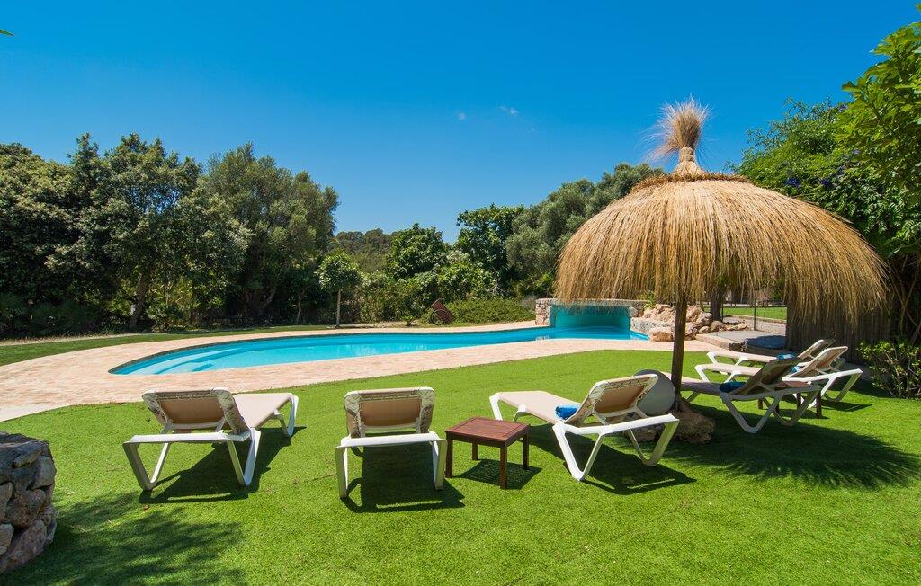 Stenbrudsmurene fra 1800 er et stykke levende historie. "Son Favar" repræsenterer en lang historie med mallorcansk identitet. En del af den ærværdige struktur, et tårn, er endda beskyttet som verdenskulturarv. Ejendommen har en rig landbrugshistorie, hvorfor den smukt restaurerede villa også er omgivet af flere andre bygninger. Nogle af disse bruges til pleje og vedligeholdelse af ejendommen, andre tilhører stille naboer, der har adgangsret på ejendommen til egne ejendomme. Det venlige nabopar ville dog på ingen måde forstyrre jeres velfortjente, rolige ferie. Især da selve huset er omgivet af en storslået have fuld af frodig middelhavsvegetation. Den organisk formede pool ligger i kort afstand fra huset, men er omgivet af duftende blomsterplanter, sarte små vægge, palmer, cypresser og oliventræer og er perfekt beskyttet mod indsyn. Liggestole i skyggen af bambusparasoller inviterer jer til at lægge jer ned og slappe af på de frodige grønne plæner. Takket være den udendørs bruser og det separate toilet kan I nyde solen udenfor hele dagen på varme dage og forfriske jer ind imellem. De er lige så praktiske efter en venskabelig omgang fodbold eller volleyball på den interne spilleplads. Vores mindste gæster vil elske gyngen. Flere vildt romantiske siddepladser er spredt ud over haven, så enhver gæst kan finde deres personlige yndlingssted i denne naturlige juvel. Og hvorfor ikke slutte dagen af med en BBQ sammen, sidde under forteltet i den smukke have, lytte til græshoppernes kvidren og nyde den varme aften og det gode selskab? Det skal dog ikke kun være mørkets fald, der lokker jer ind i det fantastiske hus. Selvom de autentiske vægge udstråler et strejf af ældgammel charme, er villaens indretning fuld af moderne detaljer, der dygtigt interagerer med rummenes rustikke atmosfære. Fritlagte murværk, hvidkalkede vægge, mørke tagbjælker, hvælvede lofter, opdelte niveauer, åbne gallerier med hyggelige siddepladser og små alkover venter bare på at blive opdaget. Alt i dette hjem er designet til komfort, mens det tilbyder moderne faciliteter i den smukke stue og spisestue. Køkkenet var tilpasset den arkitektoniske situation og indrettet i smukke små nicher. Det moderne, fuldt udstyrede, elegante køkken i trendy landhusstil imponerer, det samme gør det moderne opholdsområde, hvor taburetter inviterer jer til at slappe af, mens I nipper til morgenkaffen og lader dagen langsomt starte. Måske endda mens jeres medrejsende nyder en afslappende nat i et af de romantiske soveværelser, som tilbyder op til ti feriegæster masser af plads i hyggelige værelser, der er udstyret med enten en dobbeltseng eller to enkeltsenge (sengestørrelserne varierer mellem 1,80 og 1,50 og ...). 2 x 0,90 m hver). Da huset også har fem farverige brusebade og badeværelser, hvoraf tre er en-suite, samt to ekstra gæstetoiletter, er I garanteret absolut uafhængighed. I bestemmer alene, hvornår I starter jeres dag – om det er sammen eller på forskellige tidspunkter. De sent opstående vil finde lige så meget ro her som de tidligt opstående, der måske vil bruge formiddagen på at udforske omgivelserne i Capdepera. Den antikke villa "Son Favar" byder på historisk charme med sine grundmure fra 1800. Ejendommen med sin smukke have og store poolområde ligger syd for middelalderbyen Capdepera og kan nemt nås i bil på få minutter. Tag dertil for at købe dagligvarer og andre fornødenheder, eller besøg bondemarkedet, der finder sted hver onsdag i Placa del Orient. Strandene på østkysten, herunder den fantastiske sandbugt Font de Sa Cala, ligger kun 4 km væk. Bemærk venligst, at denne ejendom ikke accepterer ungdomsgrupper eller polterabender. En ungdomsgruppe på denne ejendom består af personer på 26 år eller derunder. Book ikke denne ejendom, hvis I er en ungdomsgruppe eller polterabend, da jeres reservation vil blive afvist, når den er booket, hvilket også kan være tilfældet ved ankomst til ejendommen eller under jeres ophold, og I vil ikke modtage en refusion