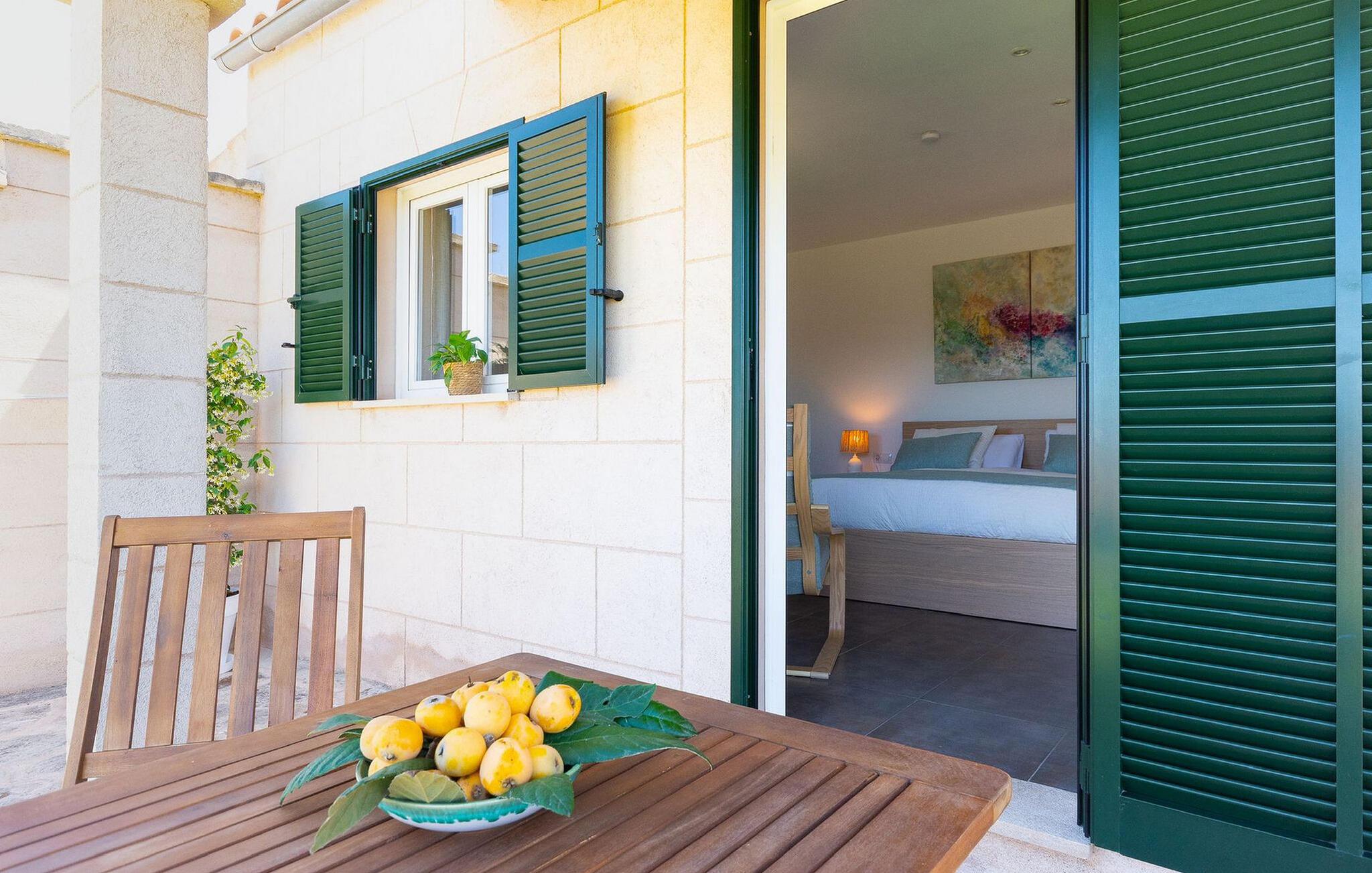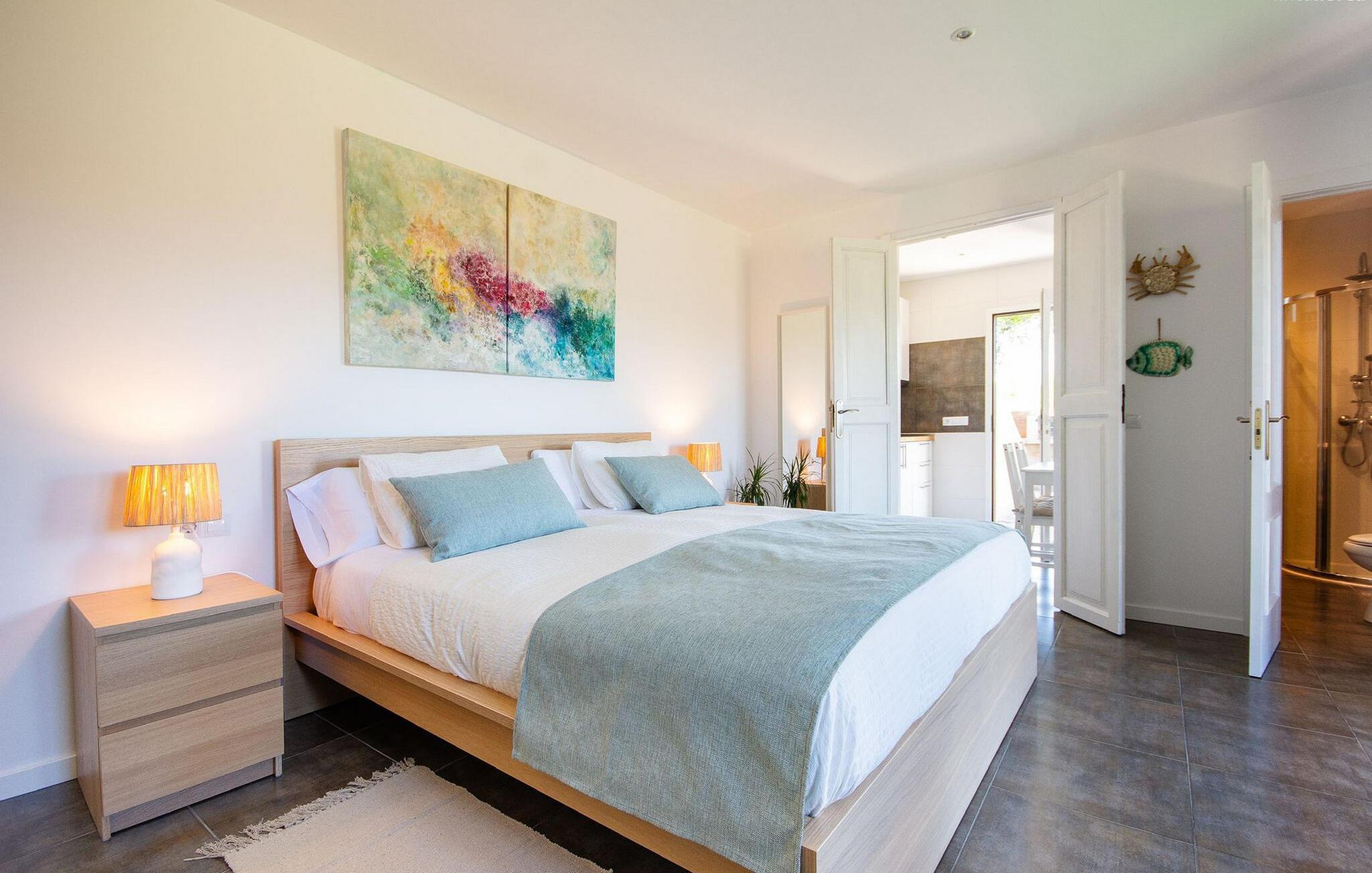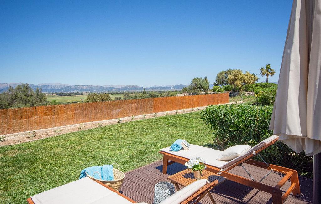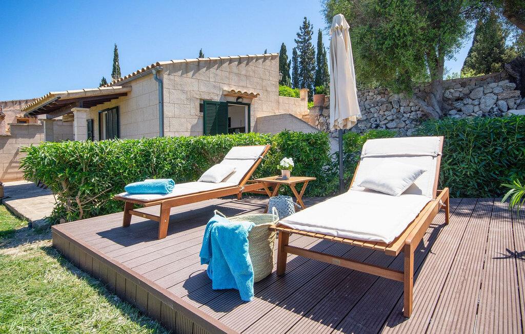 Lejligheden "Son Flo Bouganvilla" er en del af Agroturismo Son Flor, beliggende på en bakke i den østlige del af Mallorca. Det har en privat, vidunderligt skyggefuld terrasse med spiseplads og en smuk udsigt over sletten nær Santa Margalida. Denne rolige ejendom tilbyder adgang til to fælles pools med liggestole, en anlagt have, et fælles grillområde, et bordtennisbord, et lille bibliotek og en dartbane. I kan også leje biler og cykler efter anmodning. Der er åben parkering til rådighed foran agriturismekomplekset, og de smukke sandstrande på Mallorcas østkyst er kun en kort køretur væk. Denne 50 kvadratmeter store lejlighed kan komfortabelt rumme op til tre gæster. Det har et hyggeligt dobbeltværelse med aircondition og en komfortabel sovesofa til en tredje person. Det moderne køkken har også en spiseplads. Der er også et badeværelse med bruser. Lejligheden er udstyret med WiFi og tilbyder pålidelig mobiltelefonmodtagelse. Ferielejligheden ligger ca 3,5 km nordøst for Santa Margalida på den østlige del af Mallorca. Can Picafort og den lange strand i Alcúdia-bugten ligger kun 15 minutter væk i bil.